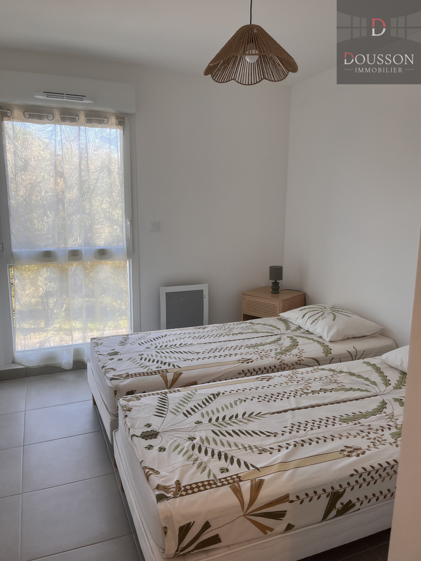 Climatisation réversible. Agréable terrasse de 17m2. 1 place de parking, 1 garage fermé. Contact Nathalie 04.66.37.76.03