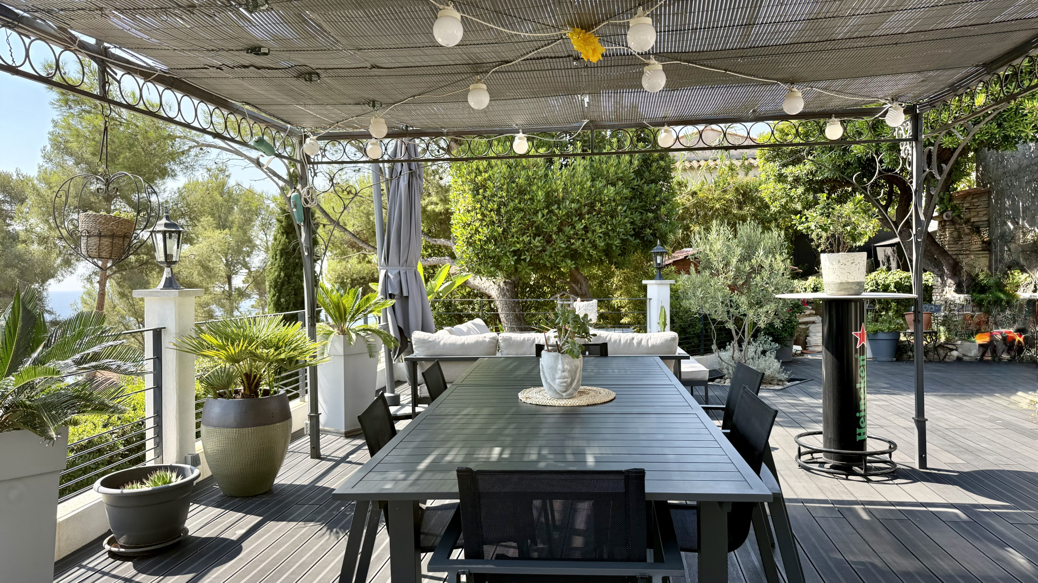 IG PRESTIGE vous propose cette superbe maison rénovée, idéalement située à Saint-Mandrier, à deux pas de la plage (accès mer en face de la maison). Un bien rare offrant une vue mer et des prestations haut de gamme. D'une superficie habitable de 156 m2 la maison se compose de deux appartements distincts, dont un premier logement spatieux ouvrant sur une terrasse de 100 m2 exposée plein Sud idéale pour recevoir et profiter de l'extérieur. À l'étage se trouve un second appartement (T3) disposant d'un accès à une cuisine d'été, à une piscine et à un rooftop avec une vue mer. Un studio indépendant complète l'ensemble et permet de bénéficier d'un espace supplémentaire pour accueillir famille et amis ou encore générer un revenu locatif. Points forts * Emplacement privilégié avec accès privilégié à la mer en face de la maison * Vue mer depuis plusieurs espaces de vie * Grande terrasse de 100 m2 * Piscine, rooftop et cuisine d'été * Terrain arboré de 580 m2 * Garage privatif Ce bien rare à la vente conjugue confort, prestations et emplacement idéal au bord de mer. Contactez-nous !
