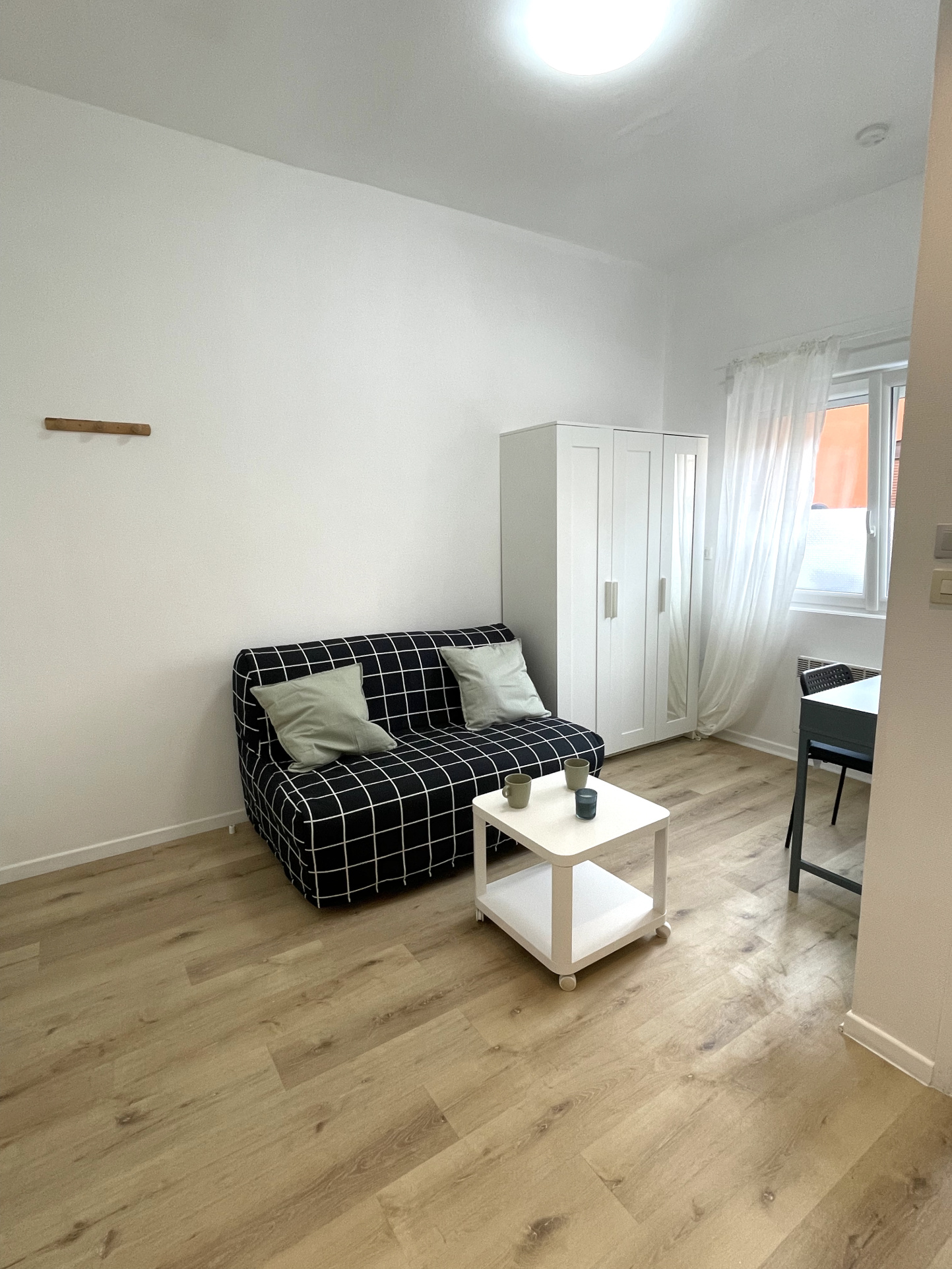 Appartement meublé en RDC il se compose : d'un séjour avec clic-clac, espace dressing et bureau, une cuisine équipée avec (plaques, réfrigérateur),