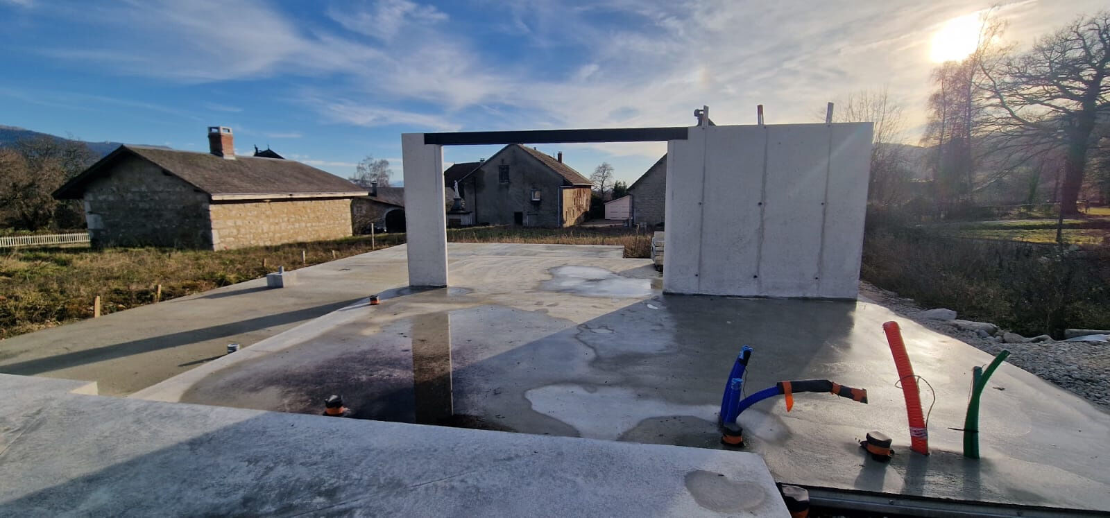 Saisissez l'opportunité d'enménager plus rapidement sur ce terrain constructible d'environ 1392 m² sous permis de construire délivré le 20 / 02 / 2023 pour une maison ossature bois. Situé dans un petit lotissement sur la commune de 'SUTRIEU' Valromey-Sur-Séran.Travaux débutés (terrassement, dalle coulée), vrd (eau, éléctrcité et assainissement tout à l'égout) déjà raccordées sur le terrain.Les caractéristiques du PC sont les suivantes : maison ossature bois d'une surface de plancher de 123,95 m² repartie sur deux niveaux comprenant au rez-de-chaussée : entrée, wc, buanderie, cuisine, séjour donnat accès sur terrasse d'environ 55 m². À l'étage, pallier desservant 3 chambres, dressing, salle de bains et un wc séparé. Un garage attenantMode de chauffage prévu par poêle à bois.PC purgé de tout recours, disponibilité immédiate : PC transférable, reprise du chantier possible sans attendre les délais d'instruction, possibilité d'accueillir l'élévation des murs dès demain!Plans et dossier technique (étude thermique RE 2020) disponibles.Plus d'informations auprès de votre agent immobilier Marine GIRET, agence EXCEPTIMMO, 6 Place des Terreaux, 01300 BELLEY : 06 25 23 63 73.Informations LOI ALUR : Honoraires charge vendeur. (gedeon_90740_32448286)