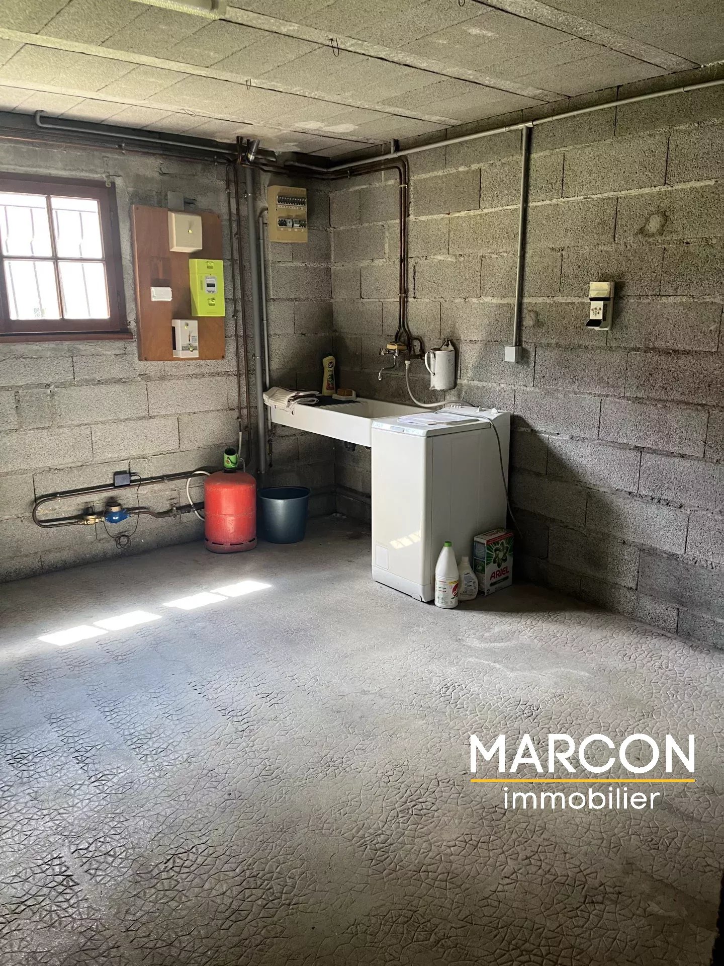 FELLETIN. Réf: 89037. Beau pavillon comprenant un rez-de-chaussée sur-sol de: entrée, cuisine équipée (éléments haut et bas, plaque, hotte, four), salon (poêle à granulés), couloir, 3 chambres, salle d'eau (douche italienne), wc. Grenier au-dessus. Sous-sol total: grand garage, atelier, buanderie, cave. Chauffage par poêle à granulés et Chauffage électrique par convecteurs . Sur un terrain de 640 m². Prix: 135 000 euros (honoraires agence inclus de 8 % à la charge de l'acquéreur). MARCON IMMOBILIER réseau de 3 agences AUBUSSON GUERET LA SOUTERRAINE.