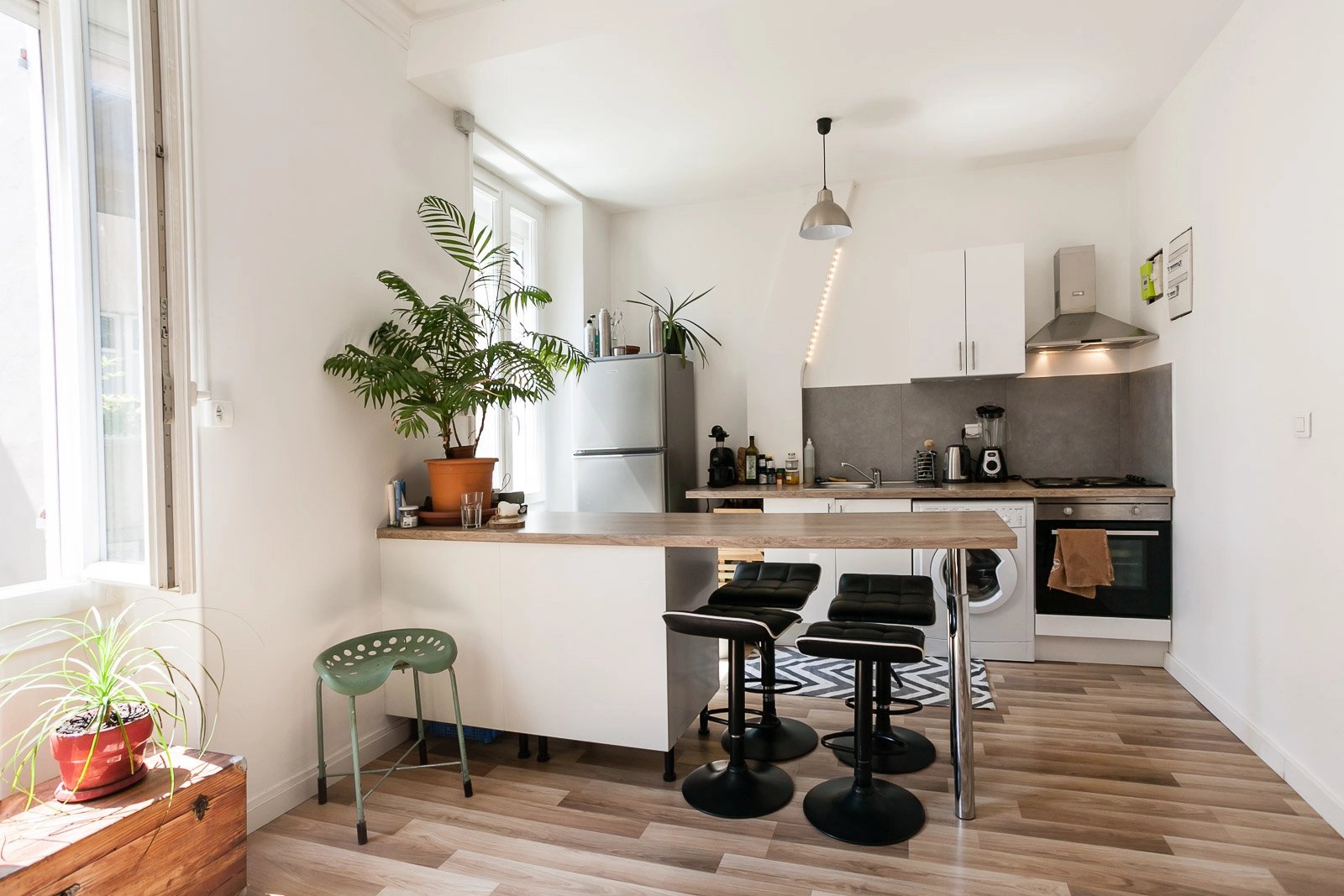 Nouveau à la location ce très bel appartement de type 2 de 38m2 en parfait état et entièrement meublé. L’appartement se trouve au premier étage d’un petit immeuble marseillais bien entretenu, dans une rue calme adjacente à la rue Paradis.