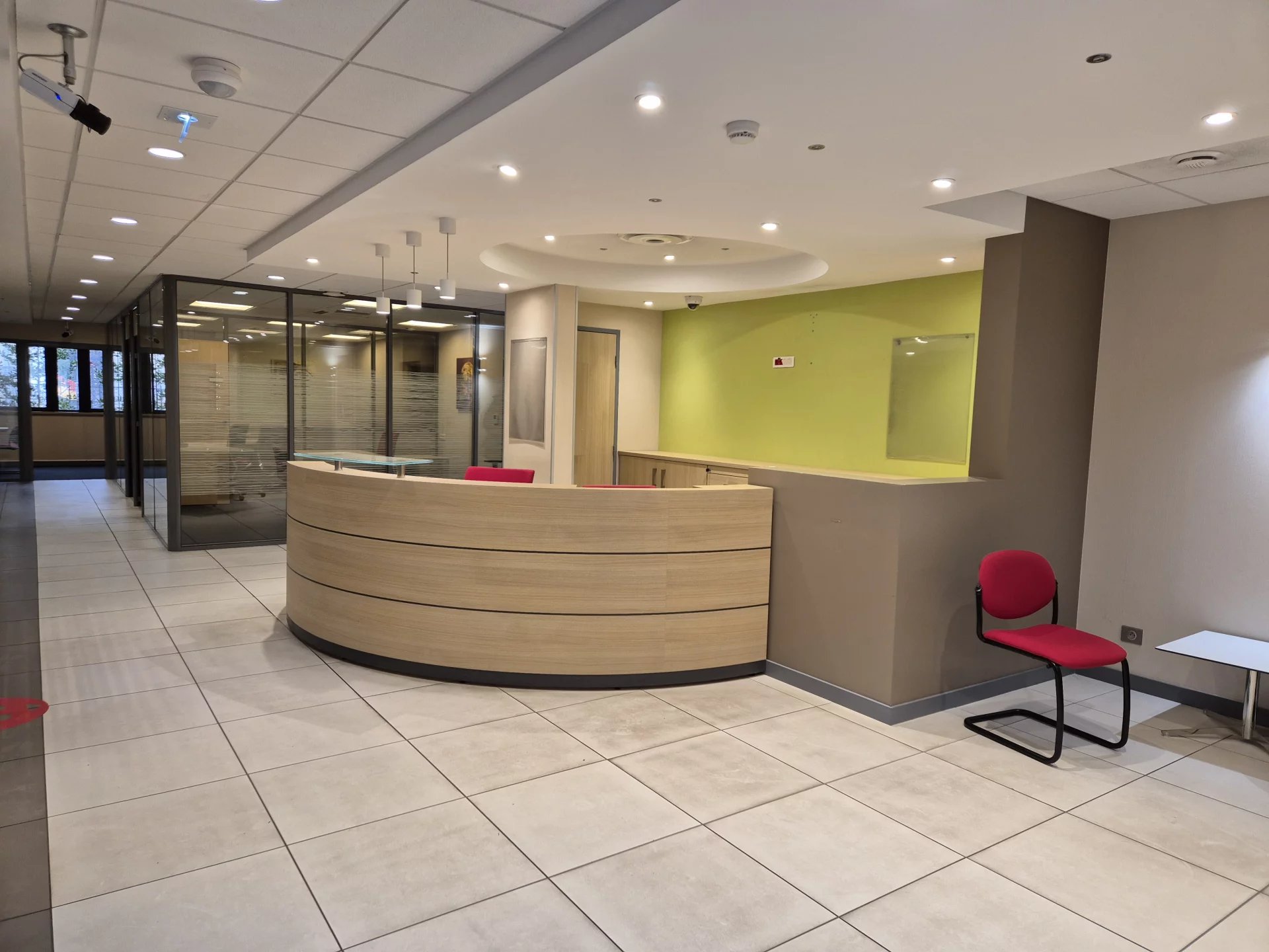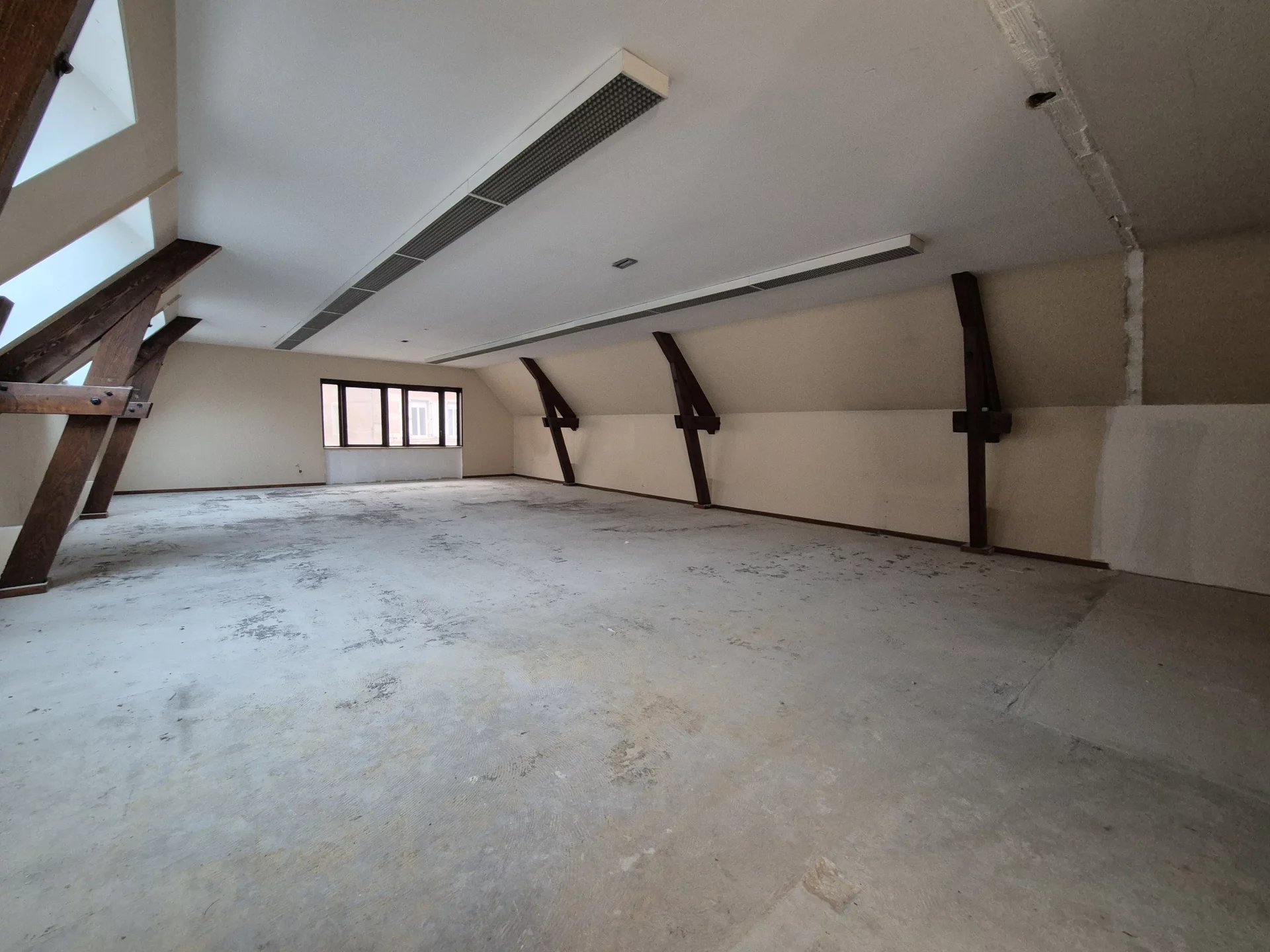 Implanté sur un terrain de 829 m², ce bâtiment fonctionnel avec un vaste garage de 90 m² est édifié sur trois niveaux. Il comprend des bureaux en parfait état au rez-de-chaussée avec un spacieux hall d'accueil qui dessert sept bureaux, une salle de réunion, un coin kitchenette, des sanitaires et un petit local attenant avec une porte sur l'extérieur. Le sous-sol abrite une salle sécurisée de 38 m². L'ensemble est en parfait état. À l'étage, on retrouve un grand espace aménageable non chauffé.