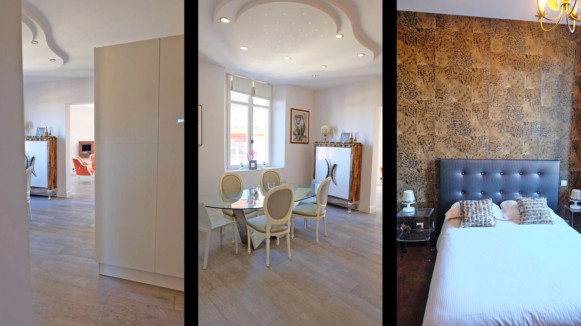 Il est composé d'une entrée avec dressing et rangements, une cuisine aménagée et équipée ouvrant sur un living, un beau séjour avec vue imprenable sur Chapelle Impériale et toits biarrots, deux chambres avec dressing et aperçu Ocean, une salle d'eau, un wc séparé.