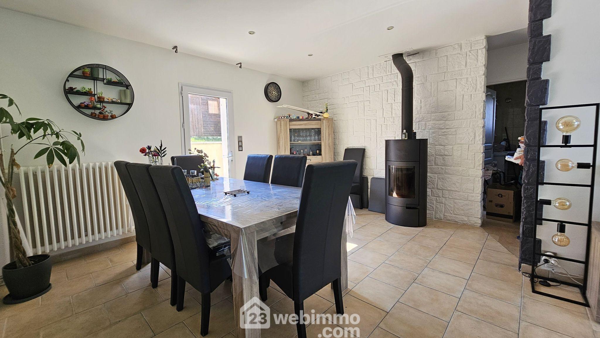 Au rez-de-chaussée, vous découvrirez une entrée avec placards, un séjour lumineux, une salle à manger conviviale agrémentée d'un poêle à bois pour vos soirées d'hiver, une cuisine équipée prête à accueillir vos repas en famille, ainsi qu'un WC séparé.