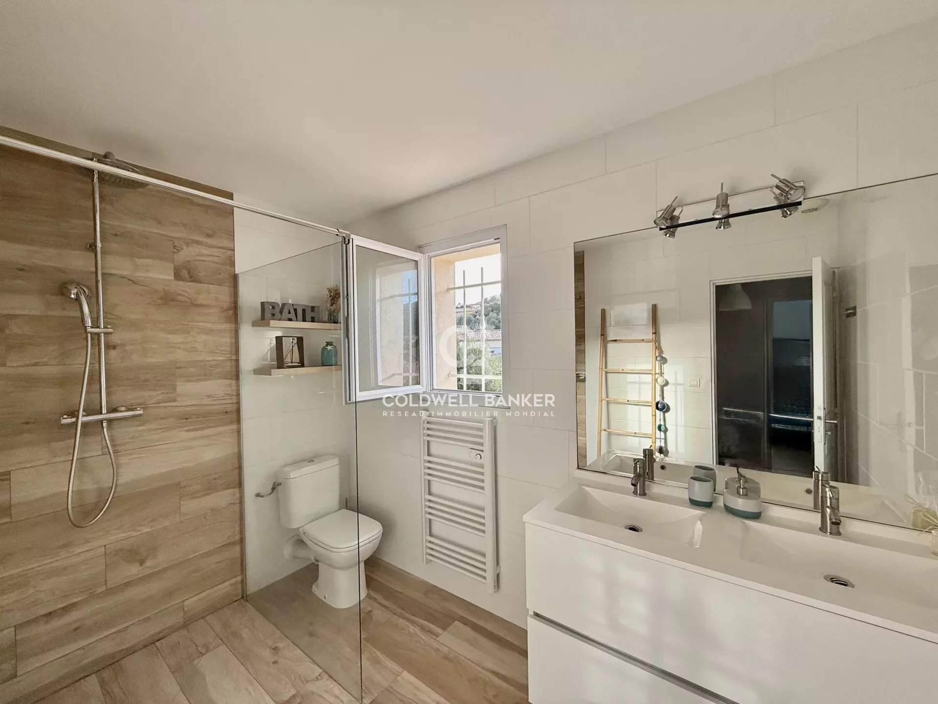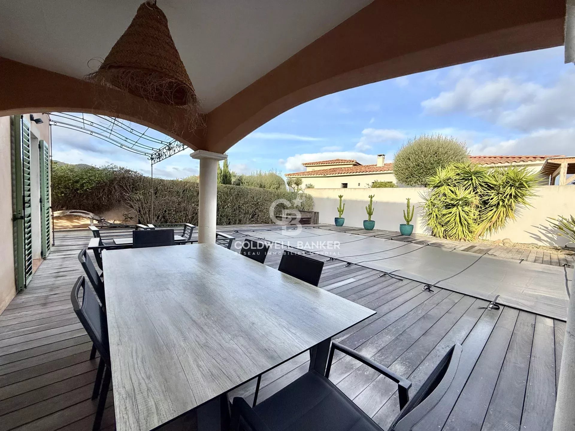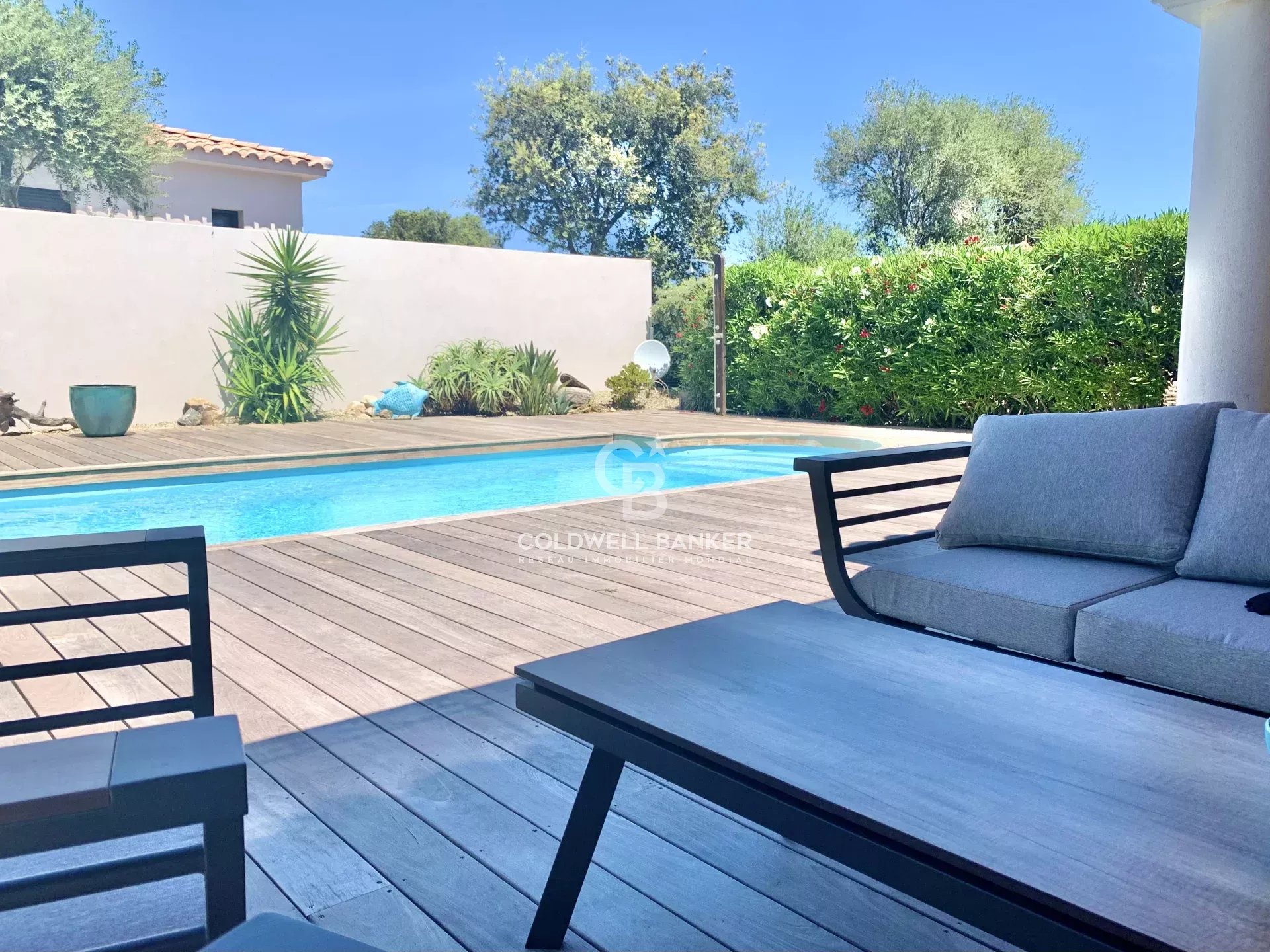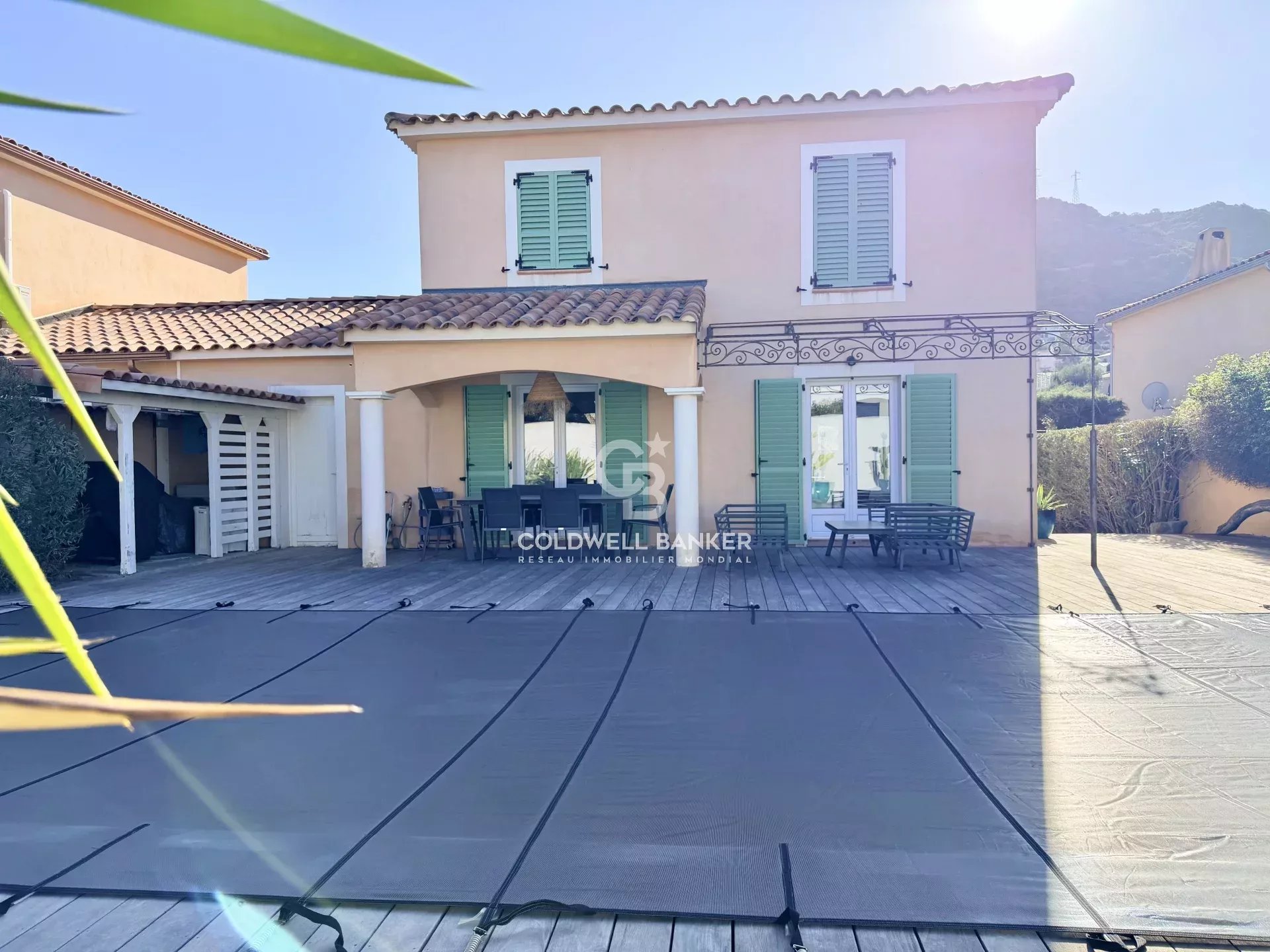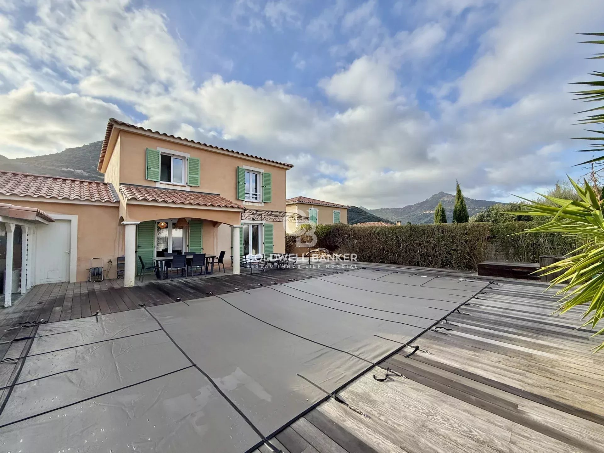 Villa avec piscine chauffée – Monticello Située dans un quartier résidentiel calme et prisé de Monticello, à mi-chemin entre le village et L’Île-Rousse, cette villa rénovée en 2016 offre un cadre de vie idéal pour une résidence principale ou secondaire. D’une surface de 106 m² habitables, cette villa mitoyenne est édifiée sur un terrain clos et paysager d’environ 460 m². Au rez-de-chaussée : – Entrée – WC indépendant – Petit dressing – Séjour lumineux – Cuisine ouverte entièrement équipée – Garage À l’étage : – Trois chambres avec placards intégrés – Salle de douche avec WC À l’extérieur : – Terrasse couverte – Très belle plage en bois exotique – Piscine chauffée - Une douche d'été - Cabanon bois / chambre d'appoint Villa entièrement climatisée, très bien entretenue, bénéficiant d’une belle exposition Sud-Nord-Ouest. À 5 minutes des commerces et 25 minutes de l’aéroport de Calvi. Très bon rapport qualité/prix – Rare sur le secteur. Coldwell Banker – Allegrini Realty Roxane Pellegrini 06 01 29 10 00