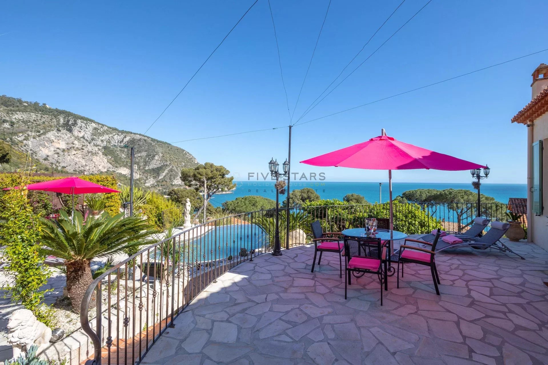 Cette charmante villa se trouve à seulement 80 mètres au-dessus de la mer, 5 minutes a pied de la plage, dans un quartier résidentiel, calme et privé au dessous du village médiéval d'Eze. Elle est entourée de montagnes, protégée des vents, un microclimat fort agréable, une végétation tropicale et parfumé d’orangers et de pins parasol, la villa est un environnement de vacances idéal, paisible et relaxant.