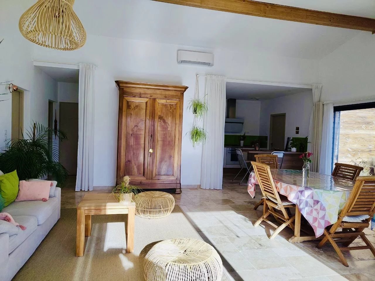 A proximité du centre-ville de Vaison-la-Romaine, ravissante villa de construction récente, ossature bois. Elle apporte une surface habitable de 105m² d'un excellent confort. Elle se compose d'une entrée, d'une vaste pièce de vie avec cuisine, deux chambres, une salle de bain, un toilette et un dressing. L'ensemble sur un terrain arboré de 5424m² avec une partie constructible, possibilité d'y construire une deuxième habitation ou un agrandissement de la construction actuelle.