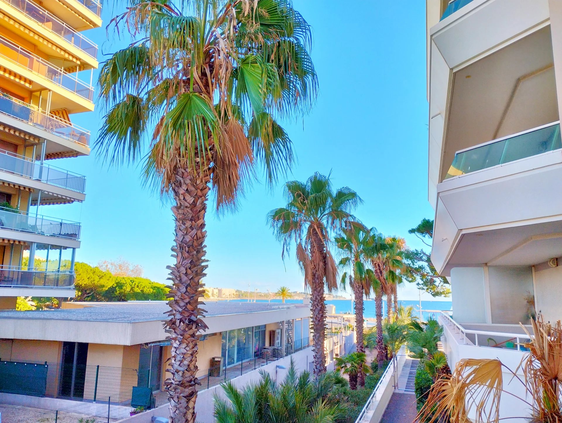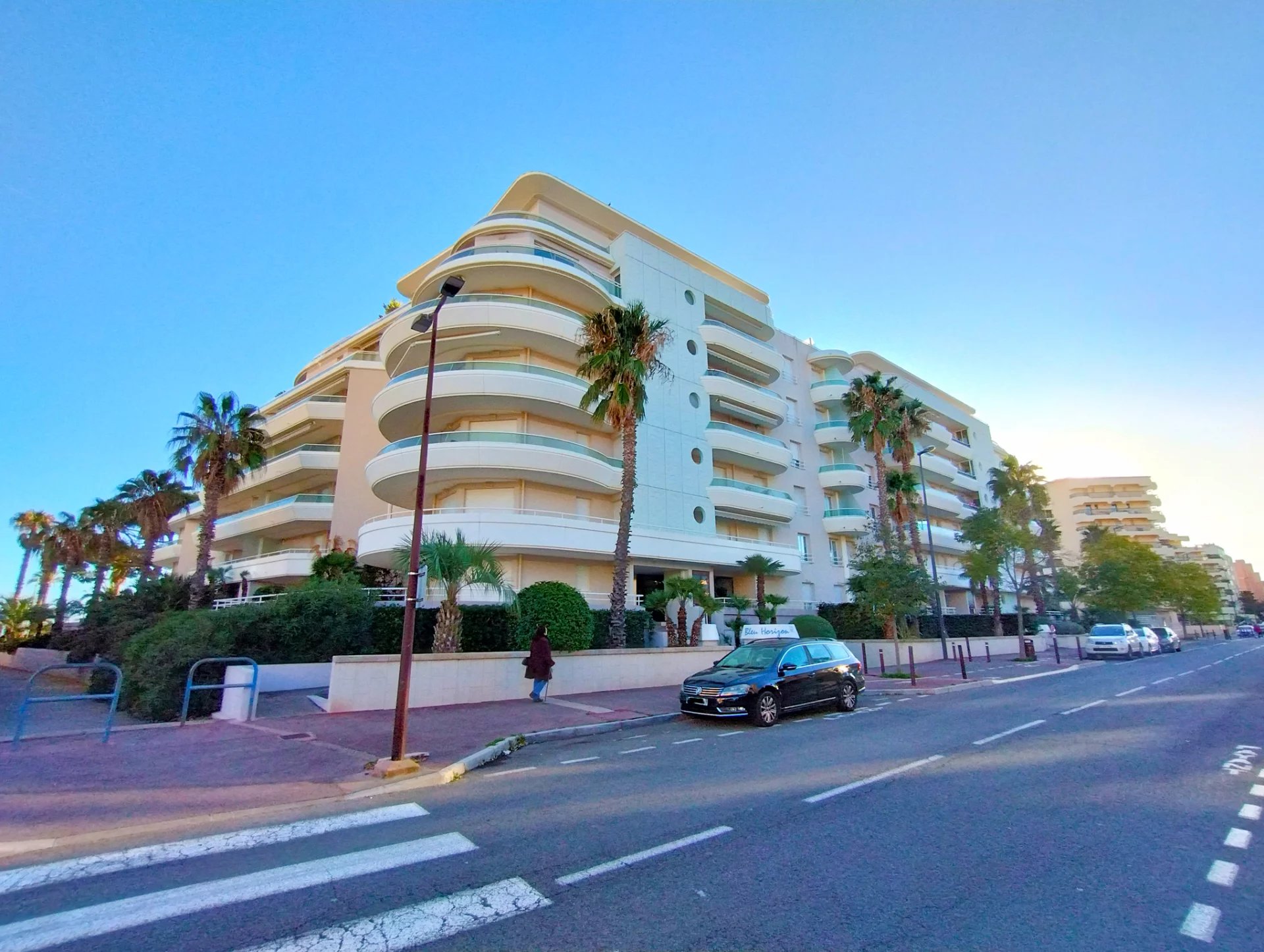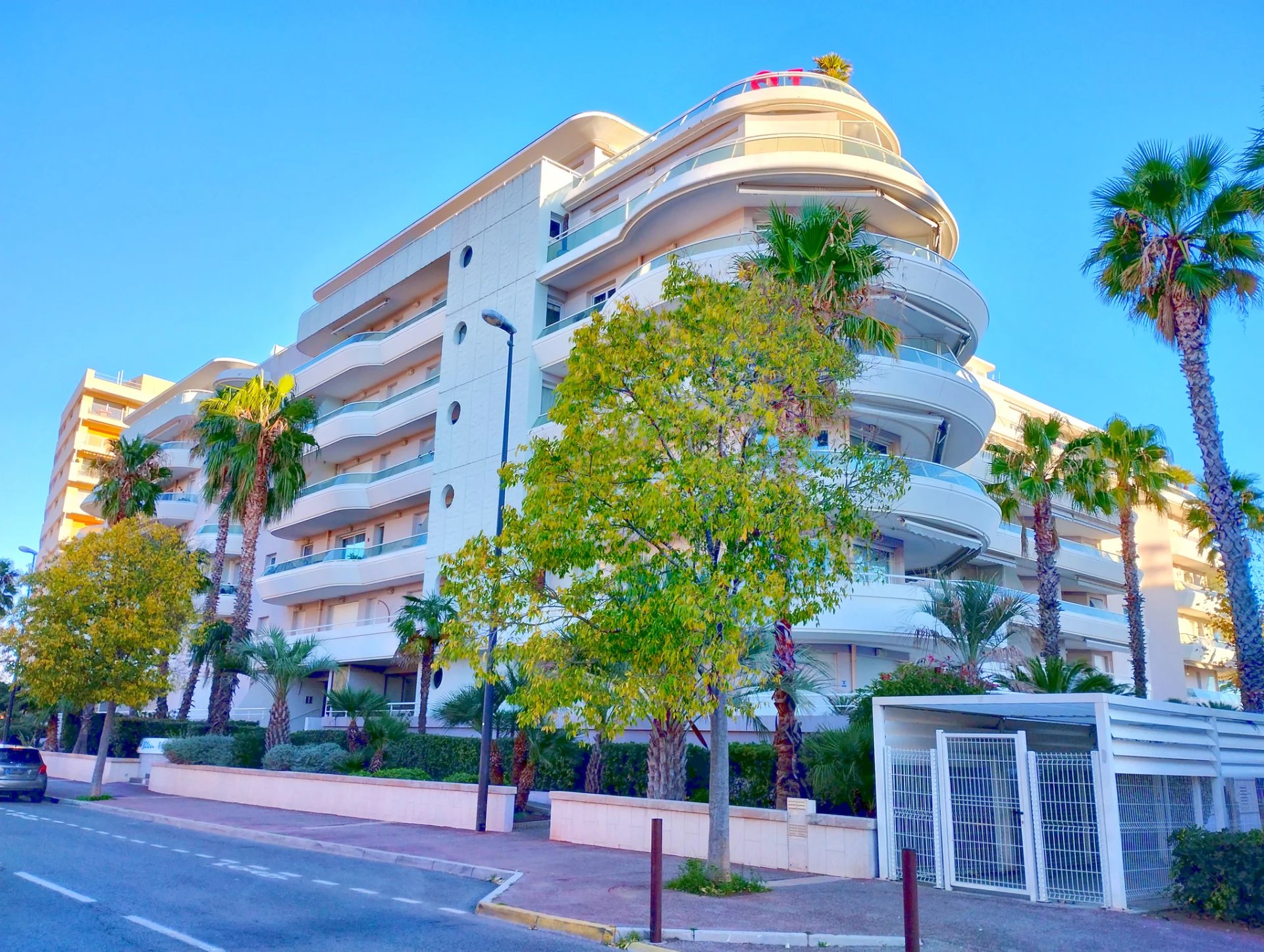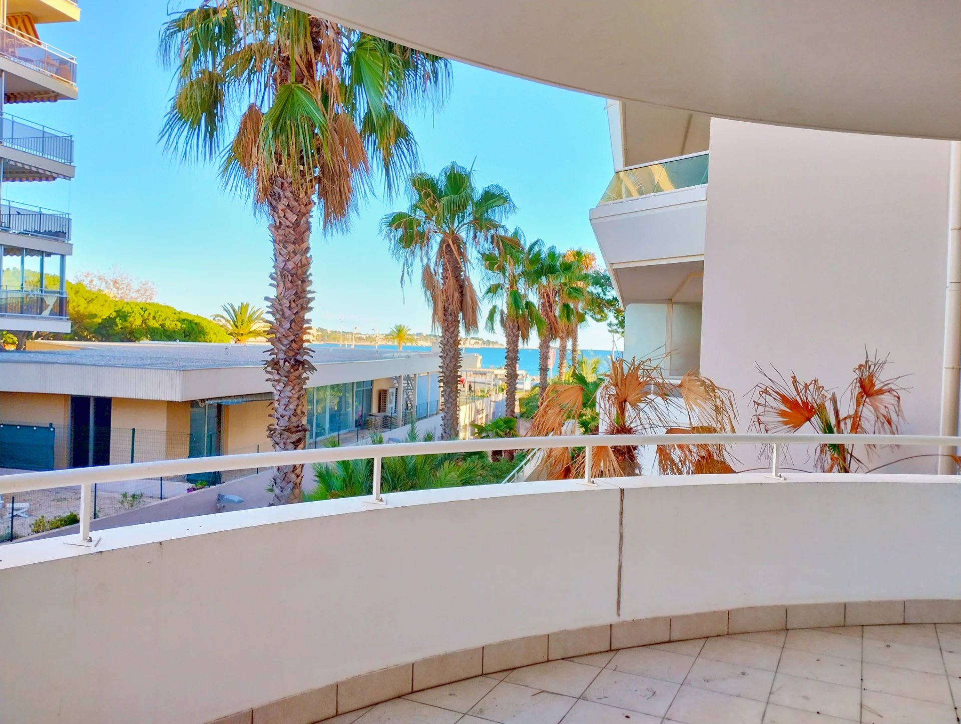 Dans résidence de qualité située en bord de mer du quartier de Fréjus Plage, superbe F3 de 80,85m² au 1er étage, entièrement climatisé, comprenant : dégagement avec placards, séjour vaste et lumineux, cuisine indépendante aménagée et semi équipée (four, plaques vitro, hotte), une chambre de maitre avec placard et salle de douche attenante, une chambre avec placard, une salle de bains, deux WC, une grande terrasse de 33m² en arrondi avec vue mer sur le côté.