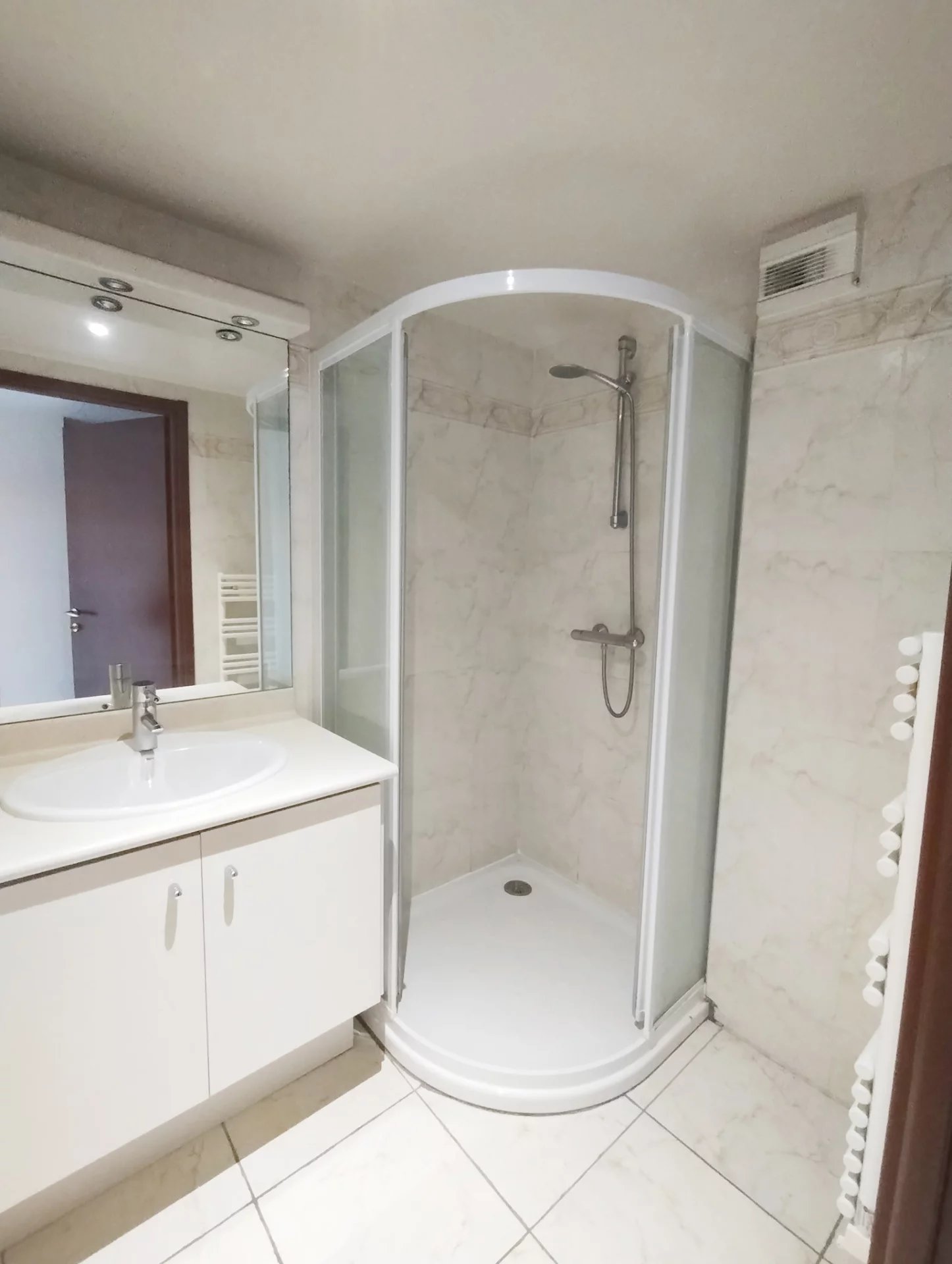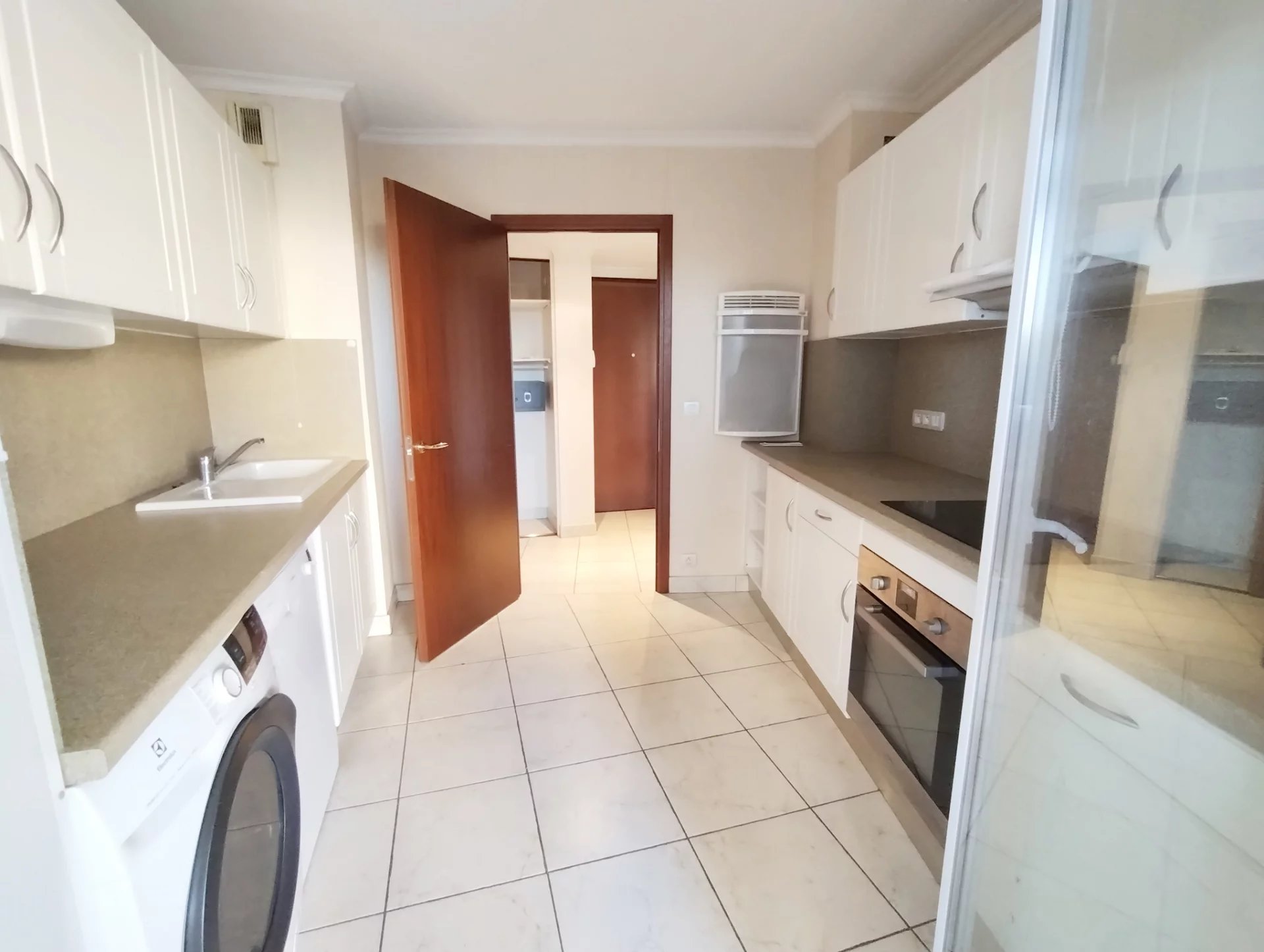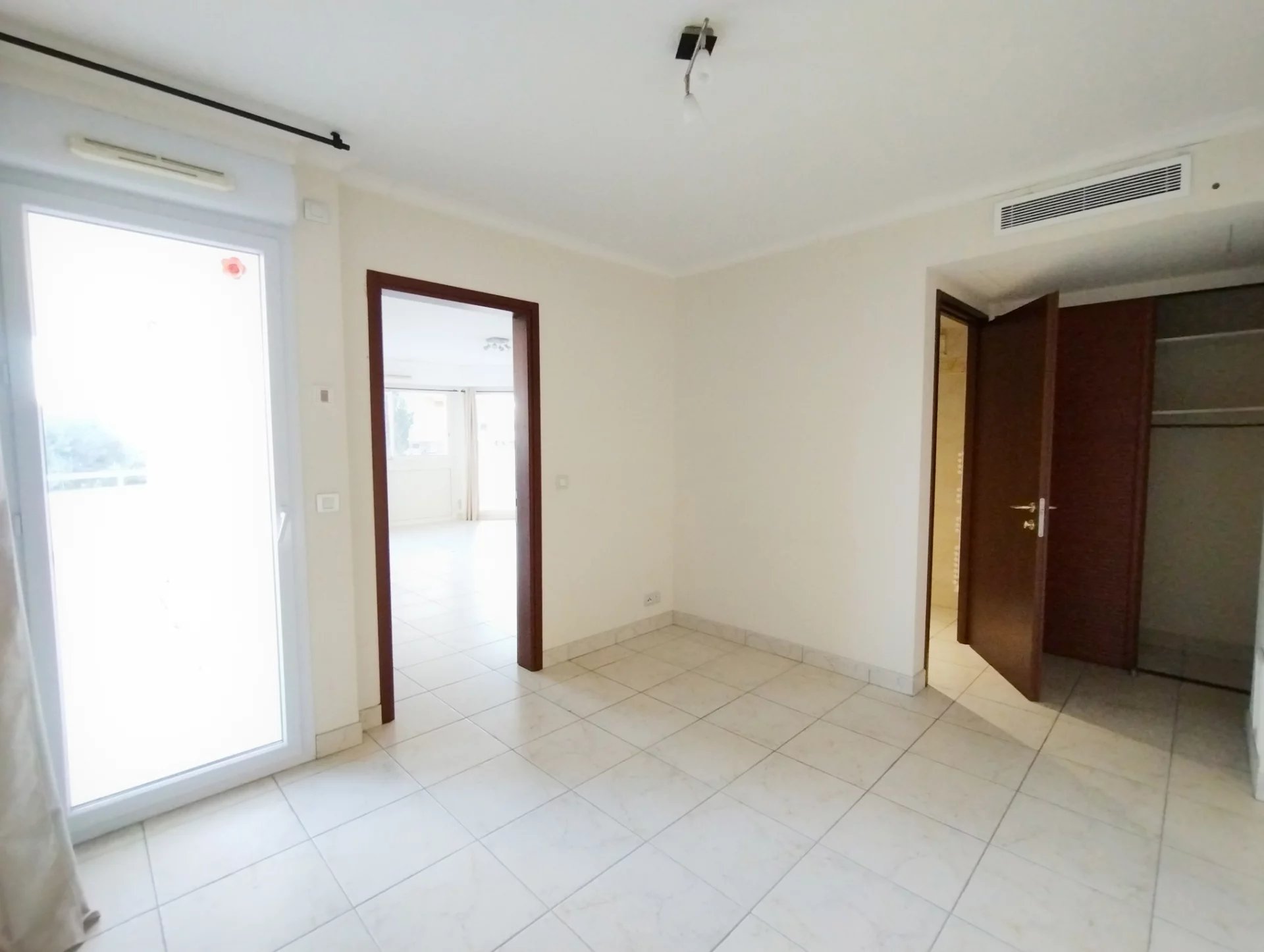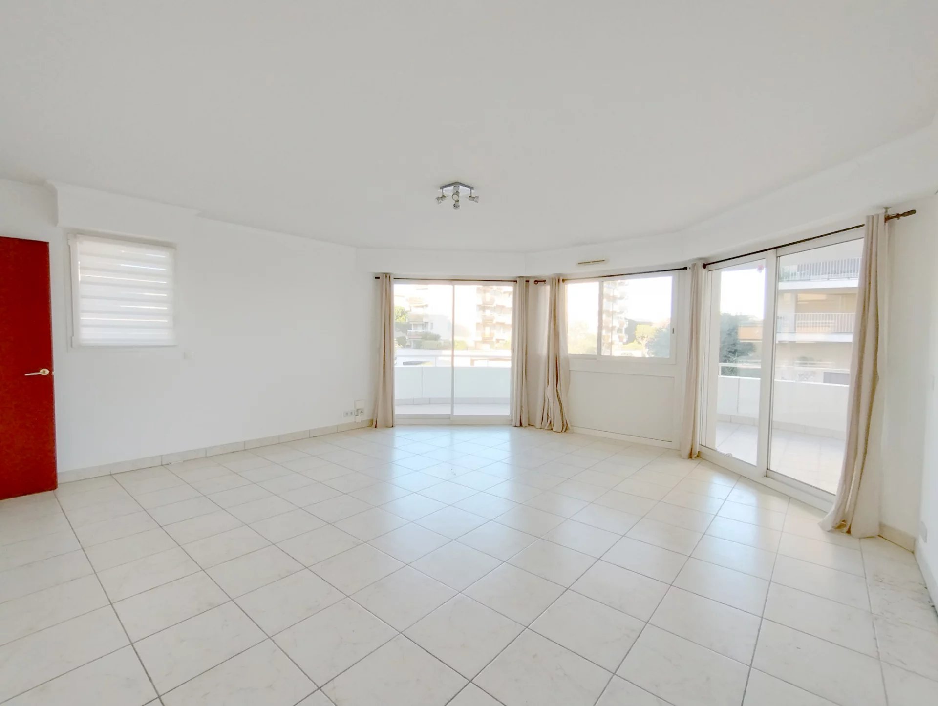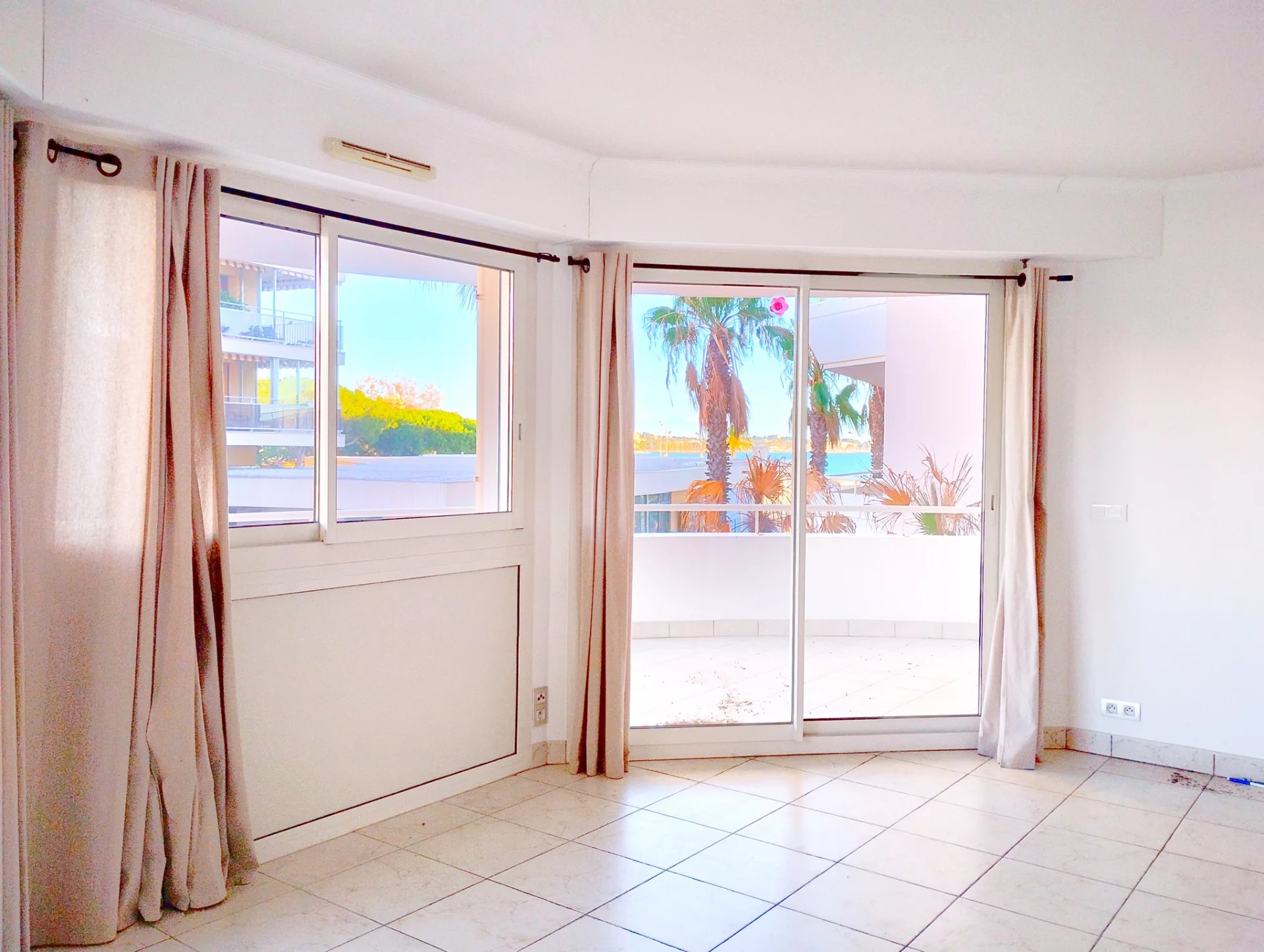 Dans résidence de qualité située en bord de mer du quartier de Fréjus Plage, superbe F3 de 80,85m² au 1er étage, entièrement climatisé, comprenant : dégagement avec placards, séjour vaste et lumineux, cuisine indépendante aménagée et semi équipée (four, plaques vitro, hotte), une chambre de maitre avec placard et salle de douche attenante, une chambre avec placard, une salle de bains, deux WC, une grande terrasse de 33m² en arrondi avec vue mer sur le côté.