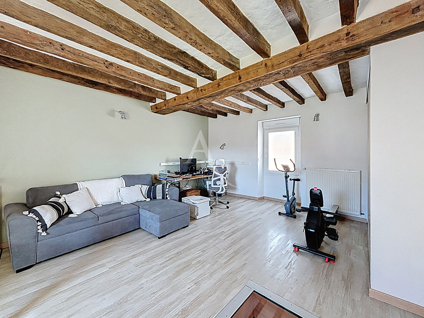 Votre agence L'Adresse vous propose en exclusivité cette maison de caractère écoénergétique à Ménil. Dès l'entrée, vous découvrez un bel espace avec tomettes et verrière. Grande pièce de vie lumineuse de 100 m² comprenant salon, séjour et cuisine aménagée et équipée, avec poêle à granulés. WC indépendant. A l'étage : mezzanine à usage de bureau et suite parentale avec chambre, dressing et salle d'eau avec WC. Au second : 2 chambres, salle d'eau, WC, buanderie et grenier. Confort assuré par pompe à chaleur et 14 panneaux solaires en autoconsommation avec revente. Garage avec greniers aménageables et 2 caves. Jardin clos avec 2 terrasses (dont une couverte), atelier et espace bien-être avec jacuzzi. Environnement agréable, à quelques centaines de mètres de la Mayenne et du chemin de halage. DPE : B (99) / GES : A (3) rèf : 36561-GL honoraires à la charge du vendeur