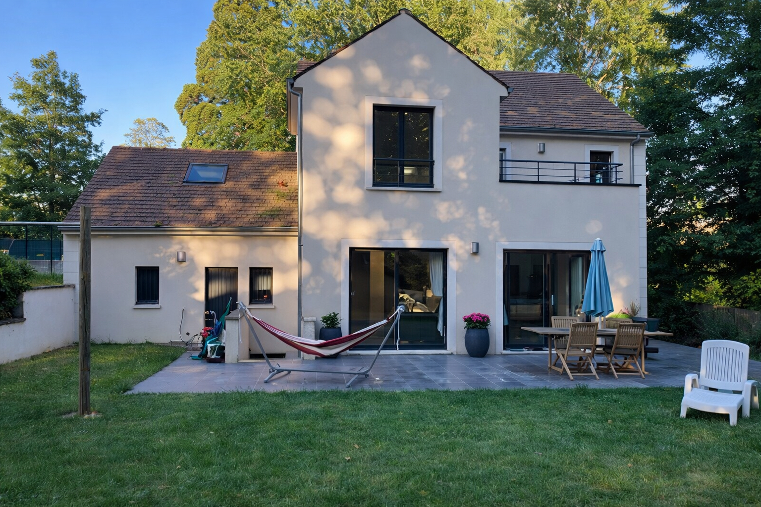 Select By Vielmon vous propose cette maison contemporaine construite en 2016 située dans un environnement résidentiel calme et recherché de Crespières. Développant environ 200 m² habitables, elle séduit dès l'entrée par ses volumes généreux et la qualité de sa distribution. Le rez-de-chaussée s'organise autour d'un vaste espace de vie de plus de 71 m², baigné de lumière grâce à son exposition ouest, intégrant un séjour agrémenté d'un poêle à bois et une cuisine ouverte,