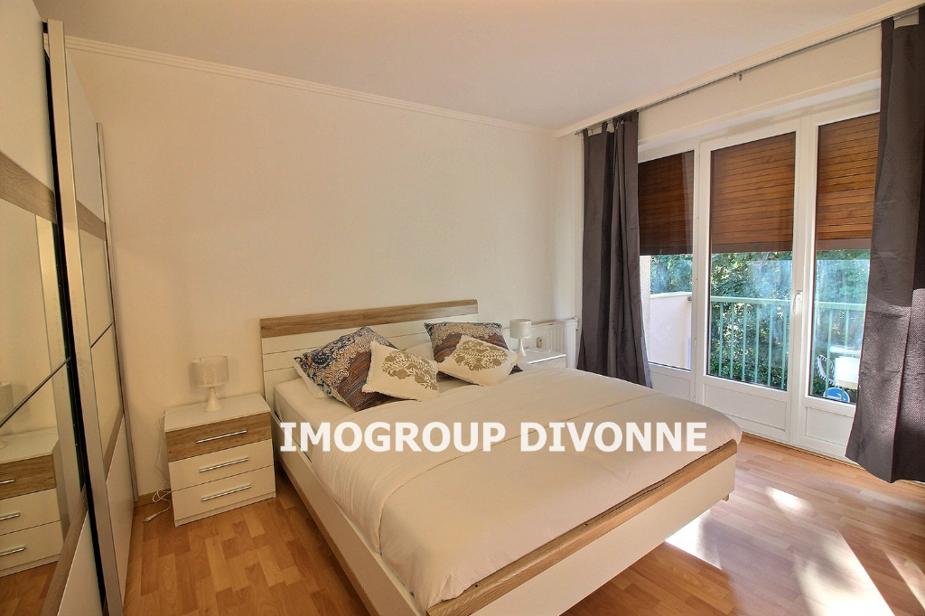 Appartement T4 meublé de 89.42m2, situé au 2ème étage en plein centre-ville de Divonne. Au calme, dans une résidence avec ascenseur, proche des commerces et du Casino. composé d'une entrée, une cuisine équipée, un salon avec balcon- 2 chambres avec 1 salle de douches / wc communicante , 1 salle de douches avec wc , 1 chambre avec balcon. En annexe : une cave en sous-sol. stationnement possible dans le parking sous sol gratuit inclus dans les charges: chauffage eau chaude et froide disponible de suite Copropriété de 20 lots - dont 20 lots habitation.(Pas de procédure en cours).
