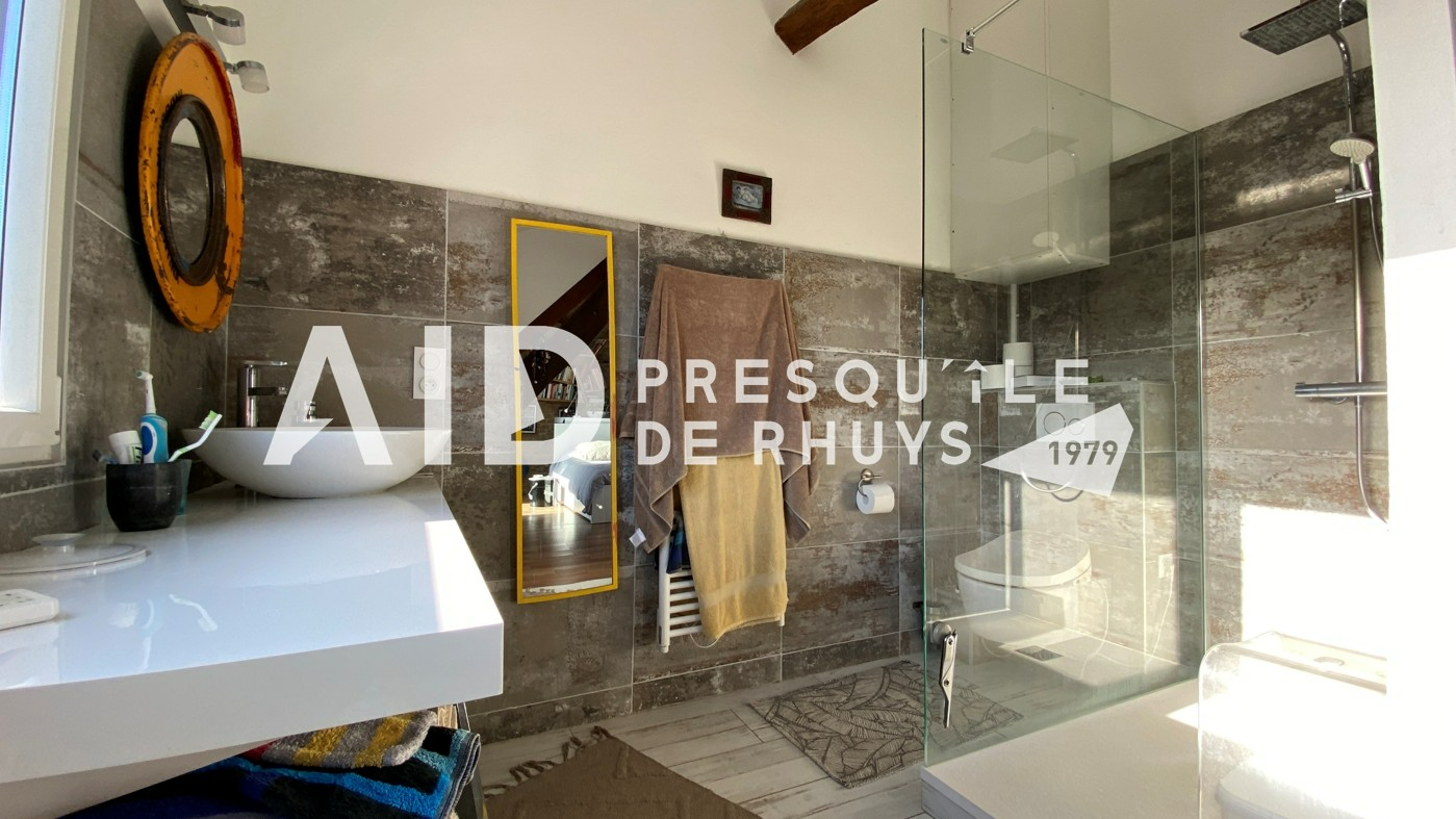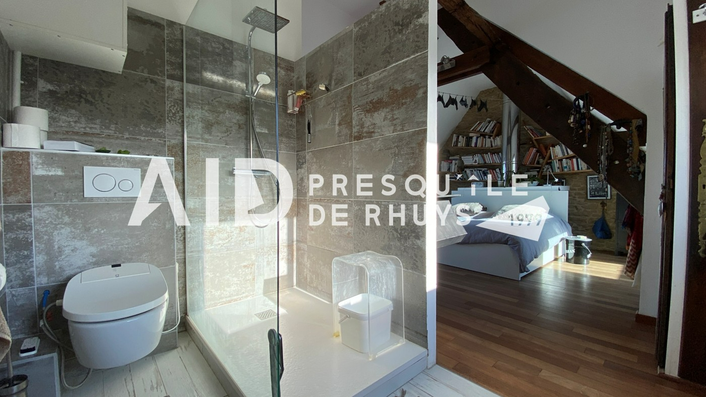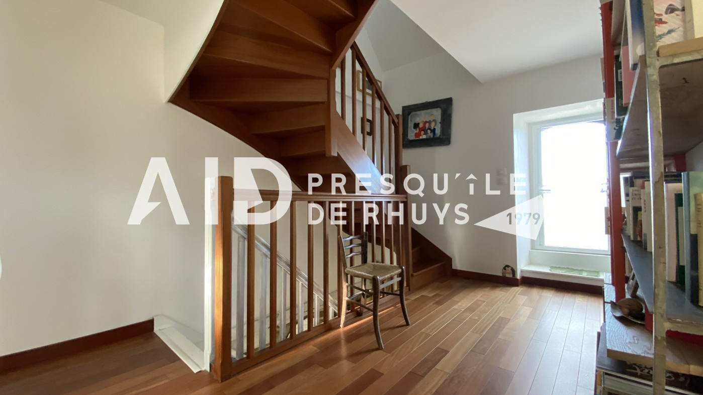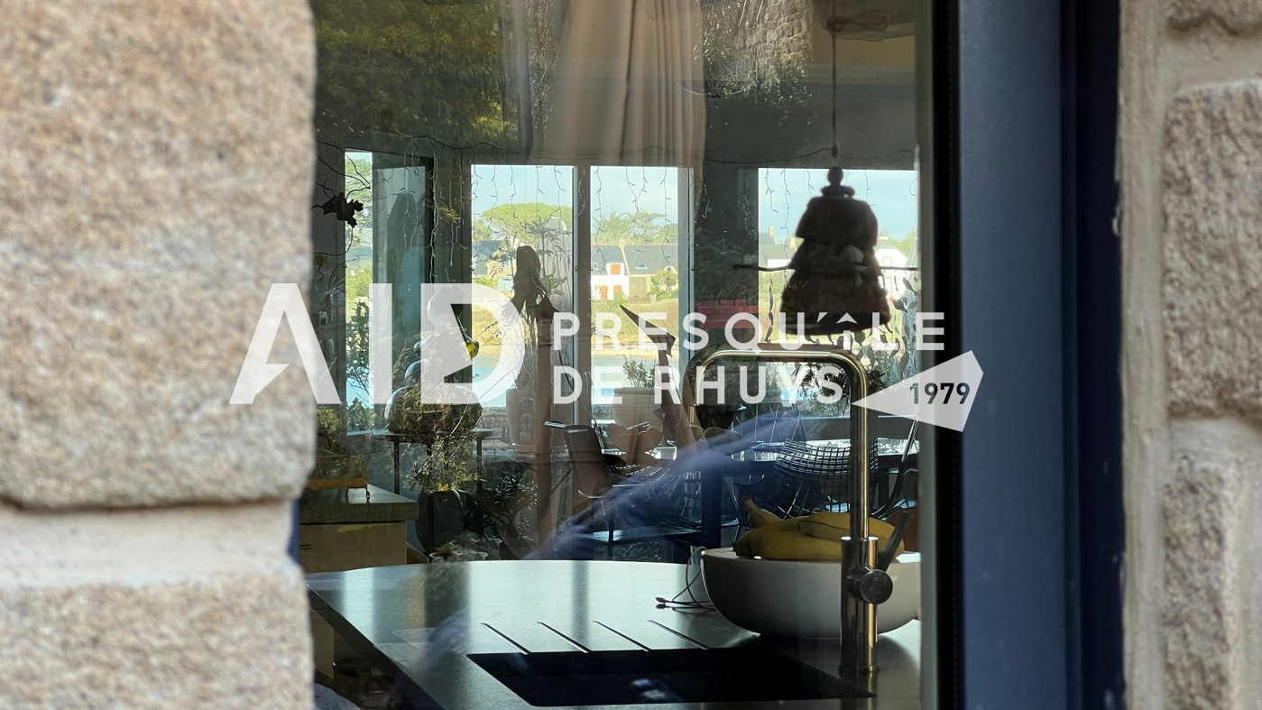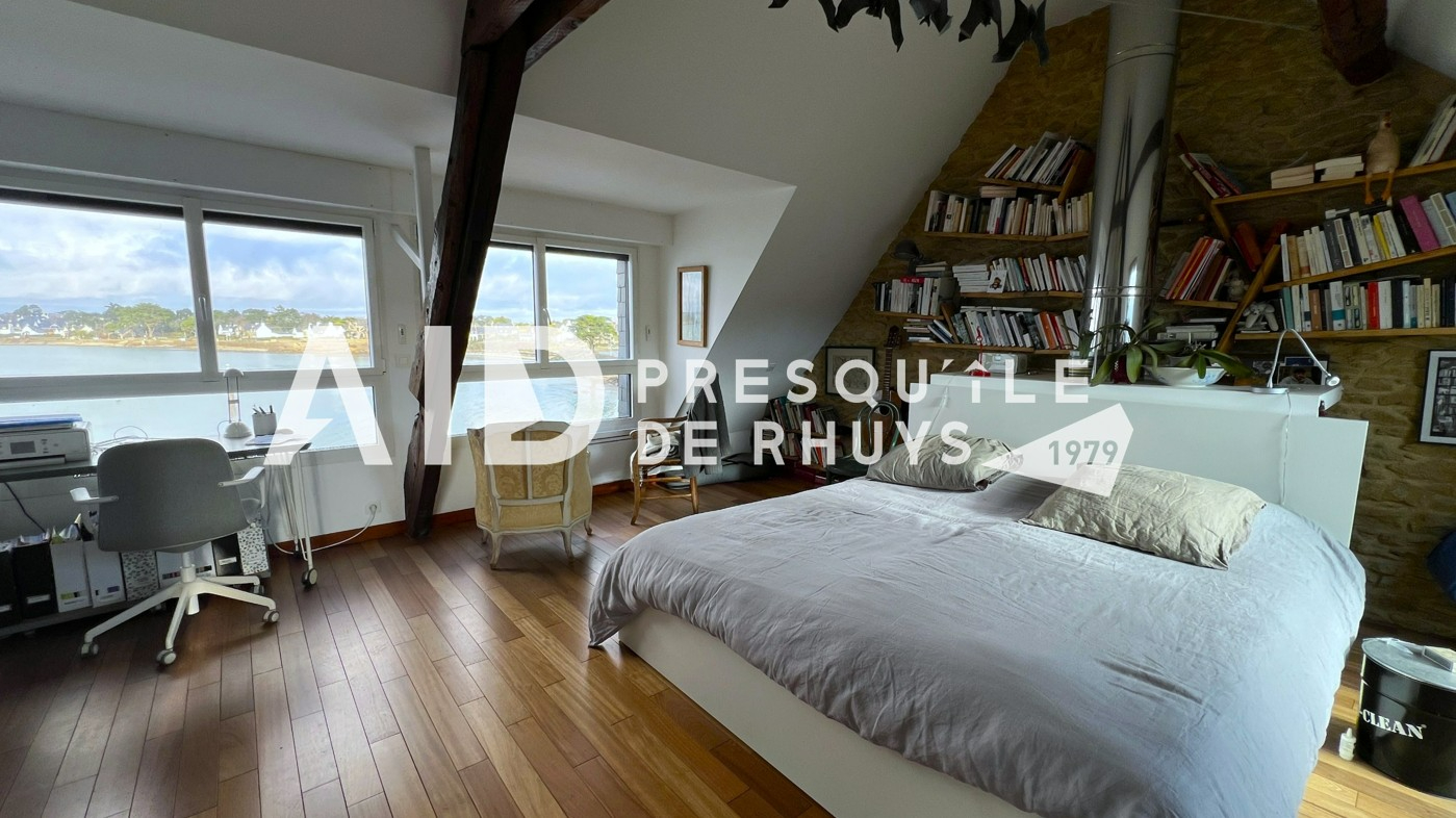 Sur la commune d'Arzon en première ligne face à la mer, l'agence AID vous fait découvrir cet ensemble immobilier composé d'une maison en pierres de 139,20m² habitables rénovée en 2009 et d'une dépendance de 18,72m² habitables à proximité immédiate des commerces et des plages. L'entrée dessert une vaste pièce de vie de 66m² à l'ambiance chaleureuse et conviviale avec sa cuisine ouverte et sa cheminée contemporaine. Les ouvertures au Nord et au Sud permettront d'apprécier la vue mer d'un côté et le joli jardin intimiste bordé de murs en pierres de l'autre. Vous monterez l'escalier pour rejoindre un espace nuit articulé sur deux niveaux comprenant une suite parentale vue mer de 31m² avec salle d'eau privative et WC, deux chambres et une seconde salle d'eau avec WC. Les larges baies vitrées et la terrasse du premier étage vous permettront de voir évoluer au fil de la journée ce paysage de carte postale animée et d'être aux premières loges pour contempler le balais majestueux des bateaux qui passent devant Locmariaquer. Le jardin calme et verdoyant avec sa terrasse ensoleillée sera propice à la détente en famille. Vous le traverserez pour rejoindre la dépendance actuellement aménagée en atelier avec douche et WC. Cet espace pourra facilement être transformé en garage, salle de sport ou en studio pour accueillir vos convives en leur garantissant indépendance et tranquillité. Vous serez charmés par l'atmosphère unique et le charme du lieu : une véritable havre de paix à partir duquel toutes les activités et commodités sont accessibles à pieds ! (3.00 % honoraires TTC à la charge de l'acquéreur.)