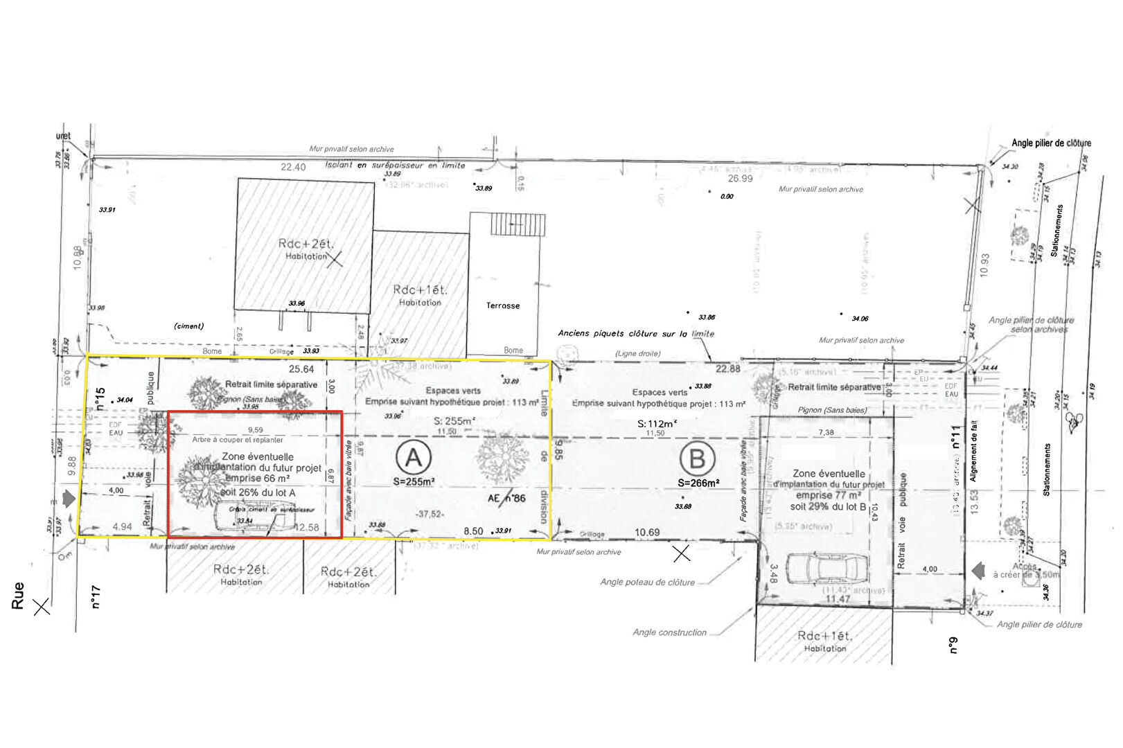 Terrain constructible de 255 m² situé dans le très recherché quartier des Musiciens, à environ 10 minutes à pied du RER A Nanterre Ville. Environnement calme et résidentiel, à proximité immédiate des établissements scolaires, crèches, bibliothèque, commerces, supermarchés et autres commodités. Projet : Possibilité de construction d'une maison avec une emprise au sol d'environ 66 m², sur deux niveaux plus combles. Caractéristiques du terrain : Largeur : 9,85 m Longueur : 25,64 m Prenez contact avec Adrien SAVVA au 06_81_82_62_54 pour toute information sur le terrain. Selon l'article L. 561-5 du Code monétaire et financier, la copie de votre pièce d'identité ou de votre passeport sera demandée pour chaque visite. Les informations sur les risques auxquels ce bien est exposé sont disponibles sur le site Géorisques http://www.georisques.gouv.fr