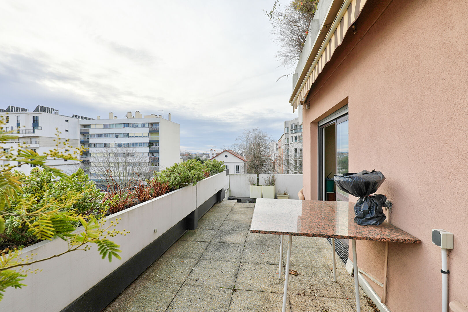 EXCLUSIVITE LES AGENTS DE L'IMMOBILIER - Dans une résidence recherchée de standing (MONTS CLAIRS), en plein coeur du centre-ville, à proximité immédiate de la gare du centre-ville, de la Rue Saint-Denis (zone piétonne et commerces), et au pied de l'école Lazare Carnot et du collège Lakanal, découvrez ce bel appartement F3/F4 de 73,11 m² habitables, situé au 4? étage avec ascenseur. Il bénéficie d'une superbe terrasse/balcon de 38 m² exposée SUD/OUEST, offrant une vue dégagée exceptionnelle sur La Défense et la Tour Eiffel. L'appartement se compose d'une entrée avec placard, d'un double séjour avec accès direct sur la terrasse, d'une cuisine indépendante (ouverture possible), 2 chambres (3? chambre possible), d'une salle de bains, d'un dressing et d'une salle d'eau. Une cave et une place de parking complètent ce bien. Appartement offrant un beau potentiel, produit très rare sur le secteur. FAIRE VITE ! (3.90 % honoraires TTC à la charge de l'acquéreur.) Copropriété de 188 lots - dont 112 lots habitation. (Pas de procédure en cours). Charges annuelles : 4168 euros.