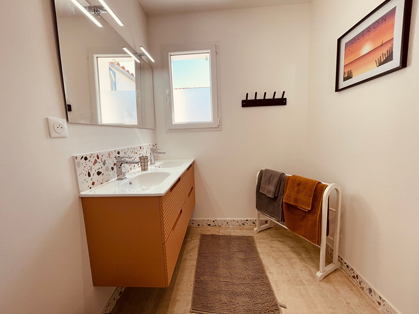 Dans un hameau au calme, à 2 km des commerces et 1,5 km de l'océan, sur une parcelle de 517 m². Maison récente de 2023, moderne et fonctionnelle, d'environ 111 m² habitables. Elle comprend une grande pièce de vie lumineuse de 48 m² avec cuisine ouverte, un cellier, trois chambres dont une suite parentale avec salle d'eau/WC, une seconde salle d'eau et un WC indépendant et un garage. Vous profiterez d'une terrasse en bois exotique de 60 m² exposée Sud, d'un chauffage au sol par PAC. Beaux volumes et agencement optimisé. Anne-Carole MEURER (EI) Agent Commercial - Numéro RSAC : 835 131 913 - LA ROCHELLE.