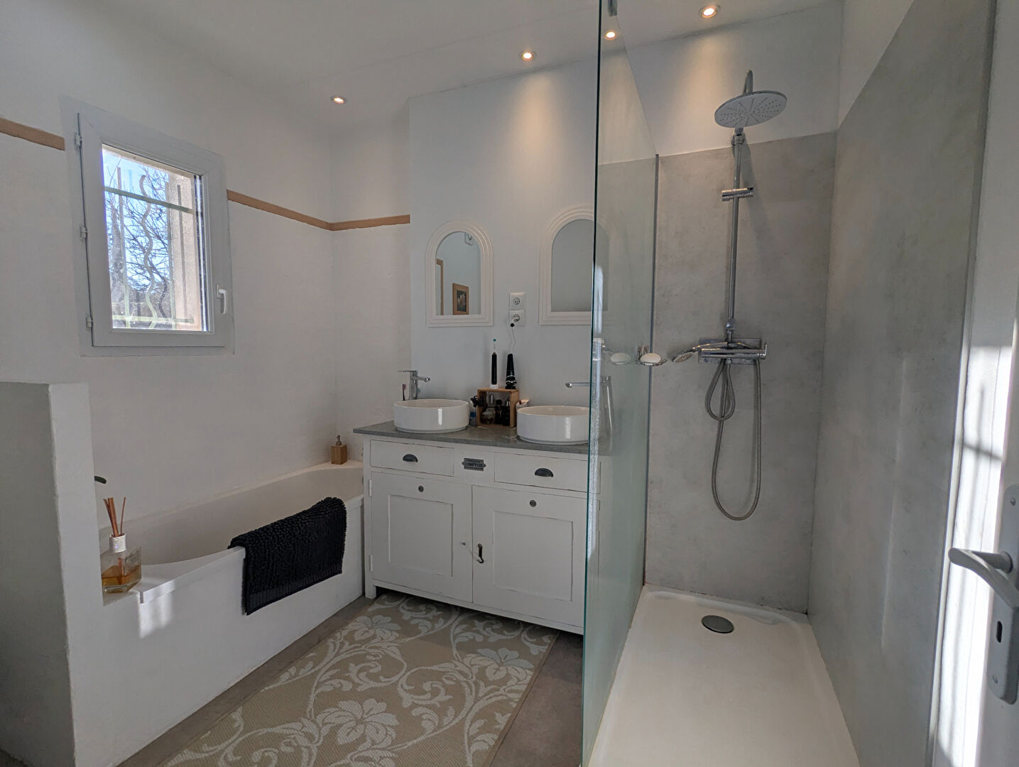 VILLECROZE, située dans un quartier calme et demandé, jolie maison de plain-pied de 127 m², 4 chambres, 3 salles de bains, garage sur 2.336 m² de terrain. Elle se compose comme suit : Une entrée, Une pièce de vie de 47 m² avec cuisine ouverte, Un cellier, Une suite parentale (douche et baignoire) 3 autres chambres dont 2 avec salle d'eau, Un WC invité, Une terrasse couverte. Double vitrage, climatisation réversible dans le salon, moustiquaires dans les chambres, poêle à bois. Un garage de 17 m² + mezzanine pour plus de rangement. Beau terrain plat entièrement clos de 2.336 m² comprenant des fruitiers ( 18 oliviers, figuier, mirabelle), un cabanon de jardin, possibilité de faire une piscine. Jolie maison avec un bel environnement. Lien vidéo : https://www.youtube.com/watch?v=agyRqS8BILs VILLECROZE est un joli village de caractère situé en Provence avec ses grottes troglodytiques et son parc arboré situé dans le parc régional du Verdon à 30 minutes du lac de Sainte-Croix. Pour en savoir plus sur ce bien ou pour organiser une visite, contactez-nous au 04 94 700 666 ou cyril.bernardet@agencegrossi.com en indiquant la référence de l'annonce : CB2893. Grossi, l'immobilier du Haut-Var depuis 1985.