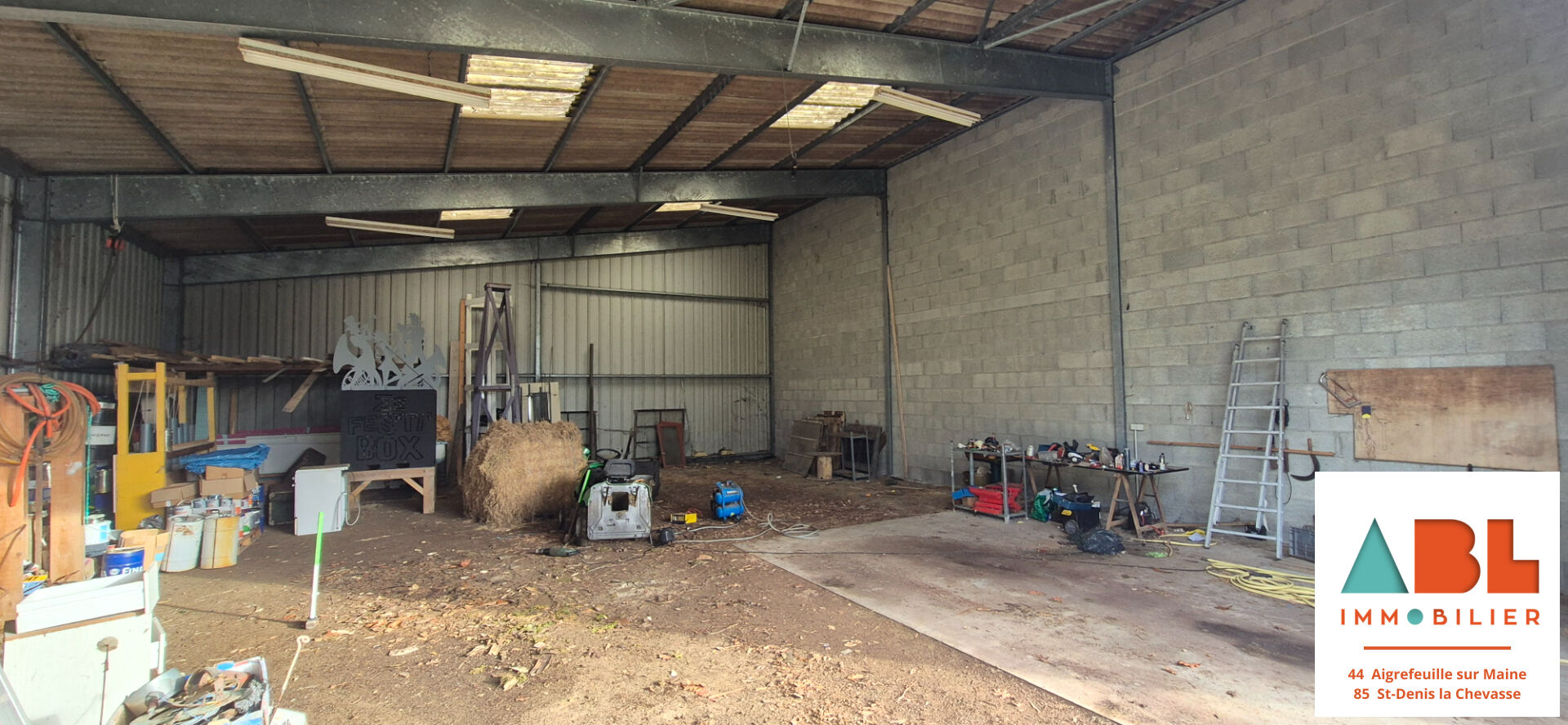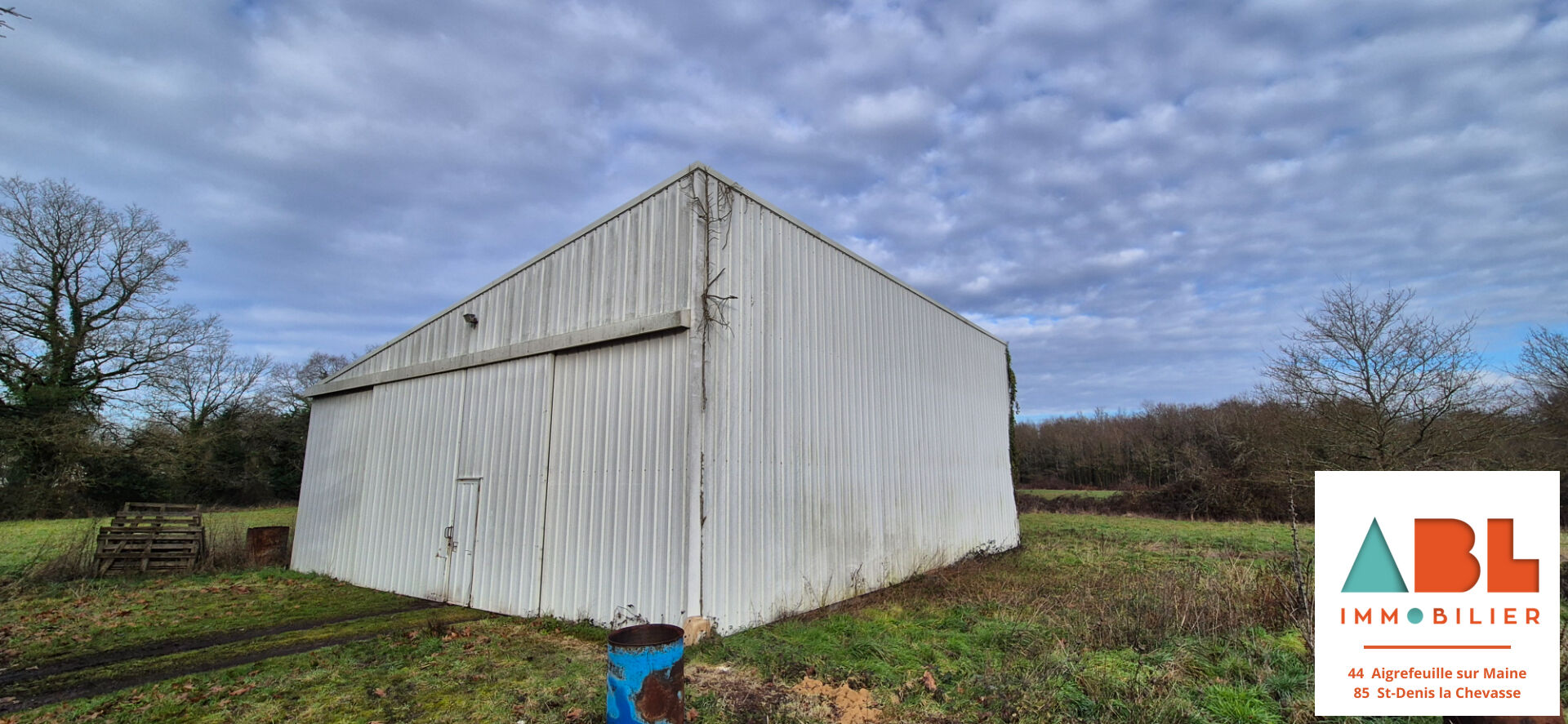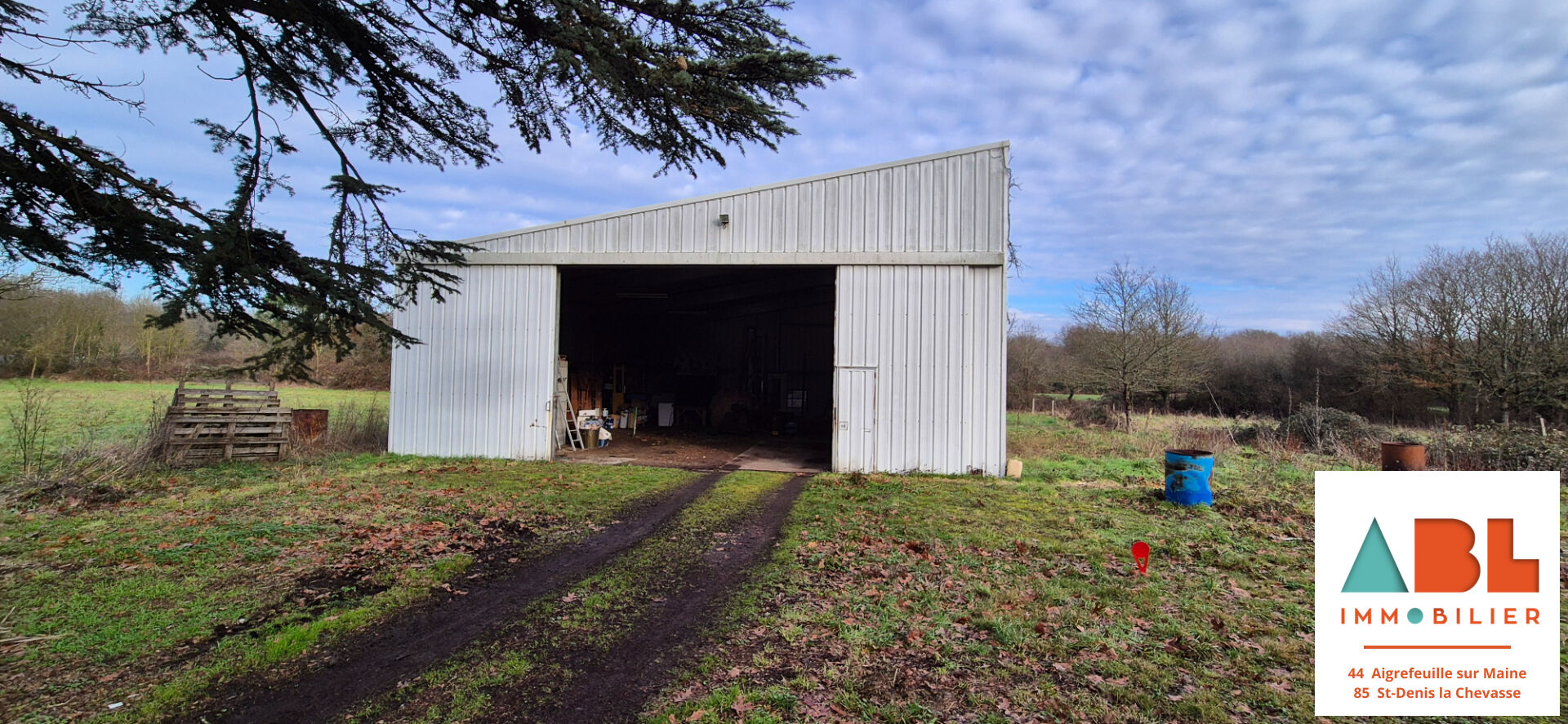 Nouveauté à Maisdon sur Sèvre, bâtiment d'une surface de 180 m² en ossature métallique, toiture en fibro-ciment, sol en terre battue en majorité avec une petite partie en béton, double portails métallique d'une largeur de 6m et d'une hauteur de 4m. Terrain autour d'une surface de 5000m² PARCELLE EN ZONE AGRICOLE et une petite partie en zone Humide. Terrain non constructible, branchement électrique mais pas de compteur d'eau. Une question? Contactez moi Anthony BLAIS