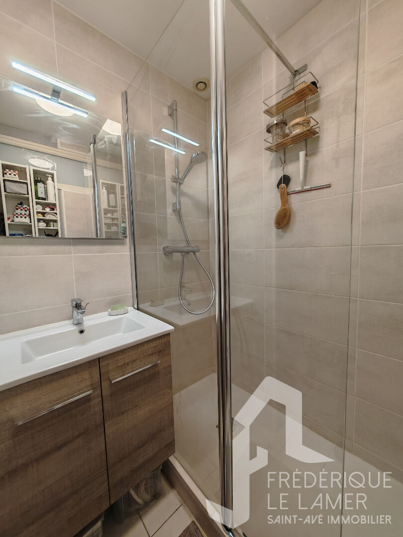 SENE - A VENDRE AGENCE FREDERIQUE LE LAMER - SAINT AVE IMMOBILIER Nous vous invitons à venir découvrir à l'entrée du bourg de Séné, à 10 mn à pied du Golfe, cette charmante maison, idéal pour une résidence principale, un pied-à terre ou un investissement locatif Au rez-de-chaussée : une entrée, WC séparé, une chambre, une cuisine aménagée et équipée ouverte sur le séjour-salon exposé plein Sud avec accès à la terrasse et jardin, parfaits pour les beaux jours. A l'étage : deux chambres et une salle d'eau récente. Grenier au-dessus Une cellier extérieur pratique pour le rangement Un emplacement de stationnement privatif. Locataire en place. CE QUE L'ON AIME - exposition Sud - à proximité des plages et commerces, tout en restant dans un environnement calme. LES PLUS : - cadre de vie agréable et pratique au quotidien - chambre en rez-de-chaussée (6.00 % honoraires TTC à la charge de l'acquéreur.) Copropriété de 9 lots - dont 9 lots habitation. (Pas de procédure en cours). Charges annuelles : 920 euros.
