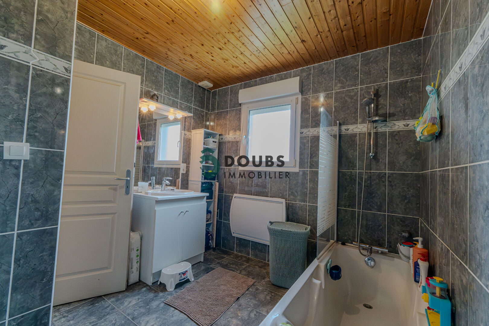 Située dans le village très paisible de Plaimbois-Vennes, cette maison de 107,31 m² en bout de lotissement vous séduira par sa luminosité, son cadre verdoyant et sa vue panoramique sur les villages voisins. Dès l'entrée, vous découvrez une belle pièce à vivre baignée de lumière, avec cuisine ouverte, idéale pour partager des moments conviviaux. L'espace profite d'un beau panorama qui apporte une vraie sensation de calme et d'évasion. Un coin salon TV complète l'ensemble, avec des rangements pratiques. En rez-de-jardin, la maison propose : - une chambre parentale - deux chambres supplémentaires - une salle de bain avec WC Côté extérieur, vous bénéficiez d'un terrain de 1000 m², agréable et offrant de nombreuses possibilités d'aménagement. Une petite cabane de rangement en bois est également présente, parfaite pour stocker outillage et matériel de jardin.