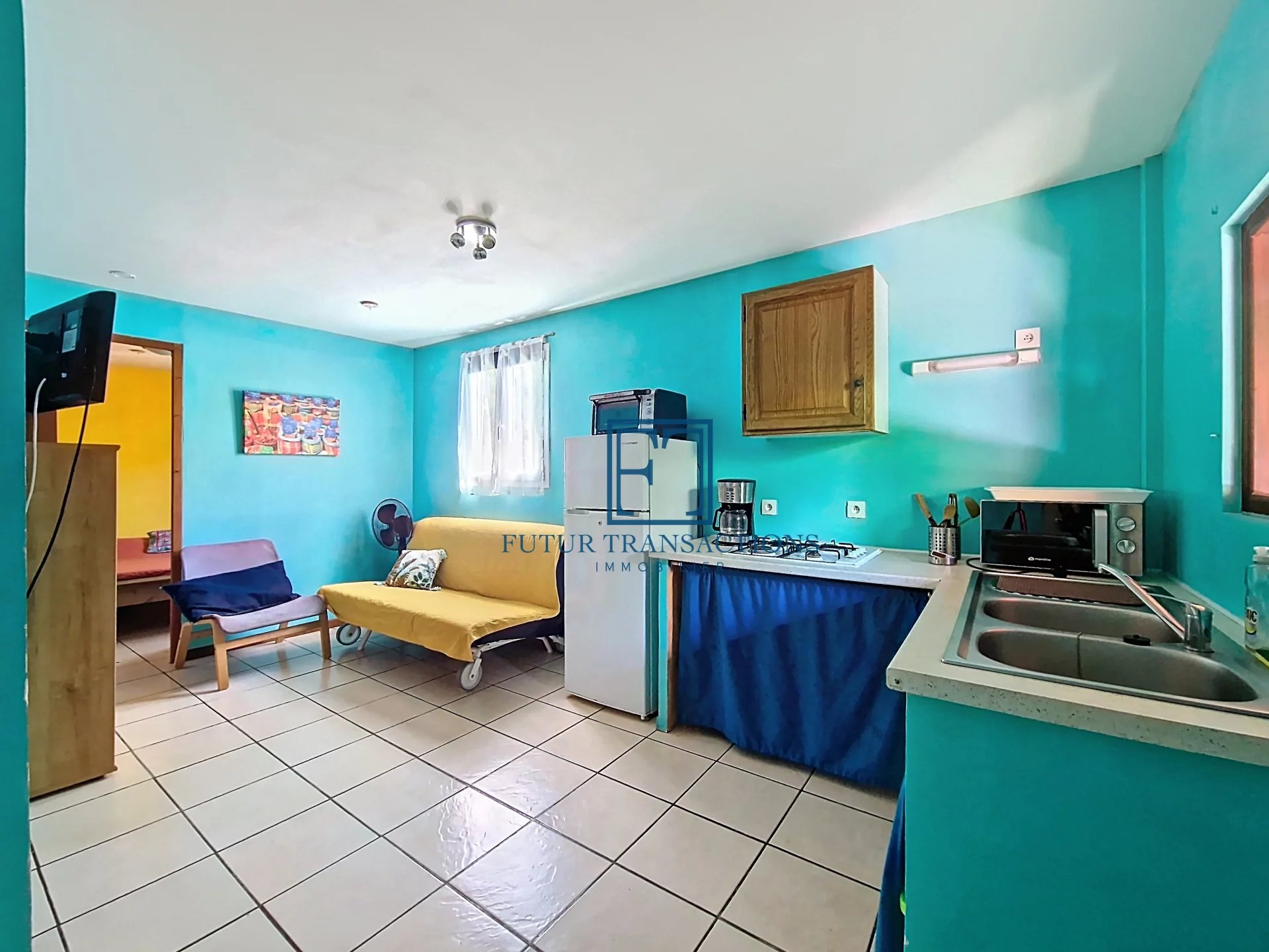 Nous vous proposons à la vente un gîte, comprenant 5 bungalows, situé à Sainte-Anne, offrant une capacité totale de 26 couchages. Ce domaine, édifié sur un terrain de 700 m², est idéal pour une activité touristique ou pour un projet de résidence principale avec revenus locatifs. La propriété se compose de 5 unités modulables : - 3 Bungalows de 2 chambres avec séjour/cuisine, salle d'eau (capacité 6 personnes). - 2 Bungalows de 1 chambre avec séjour/cuisine, salle d'eau (capacité 4 personnes). Chaque chambre est climatisée et chaque logement bénéficie d'une terrasse privative. Côté équipements, le domaine dispose d'une piscine au sel sécurisée au cœur d'un jardin arboré. L'ensemble est équipé de 5 chauffe-eau solaires installés en 2023 et d'une cuve tampon de 7 000 litres pour garantir l'autonomie en eau. L'agencement permet une gestion flexible et un potentiel de développement : exploitation totale en gîtes ou occupation d'une partie en habitation principale, tout en conservant des unités pour la location. N'attendez plus pour venir découvrir ce cadre de vie exceptionnel. Contactez-nous rapidement pour organiser une visite ! Le prix de vente comprend les honoraires charge Acquéreur : 3 % TTC du prix du bien hors honoraires. Prix de vente hors honoraires : 535 000 €. Etiquette énergétique: classe B Les informations sur les risques auxquels ce bien est exposé sont disponibles sur le site Géorisques : https://georisques.gouv.fr