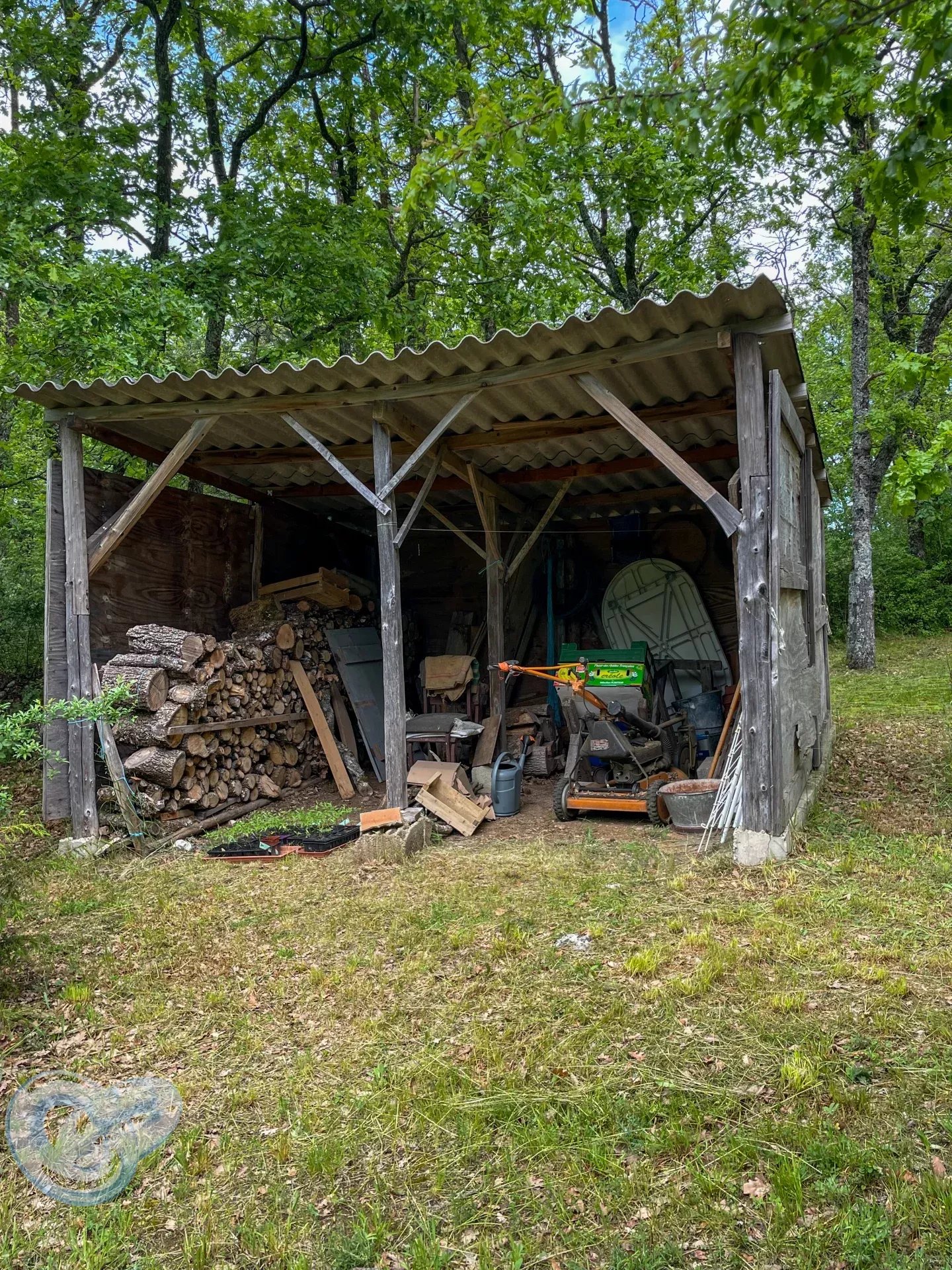 À l’extérieur, vous profiterez de deux terrasses (l’une couverte, l’autre ouverte), d’un abri bois, ainsi que d’un superbe terrain de 14 000 m² mêlant parc et forêt, idéal pour les amoureux de la nature.