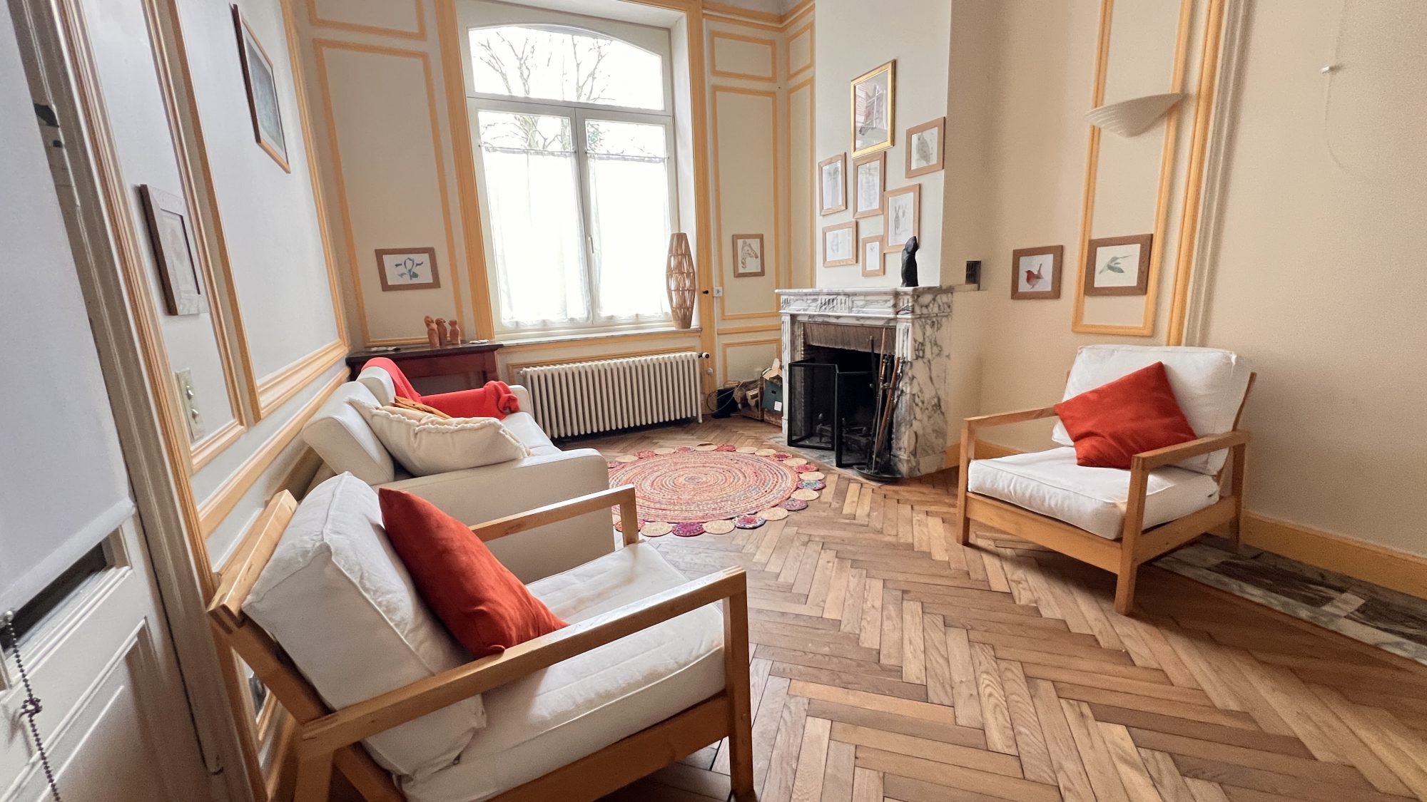 Actuellement : 7 chambres, 2 salles de bain, 2 salons, bureau et cuisine.