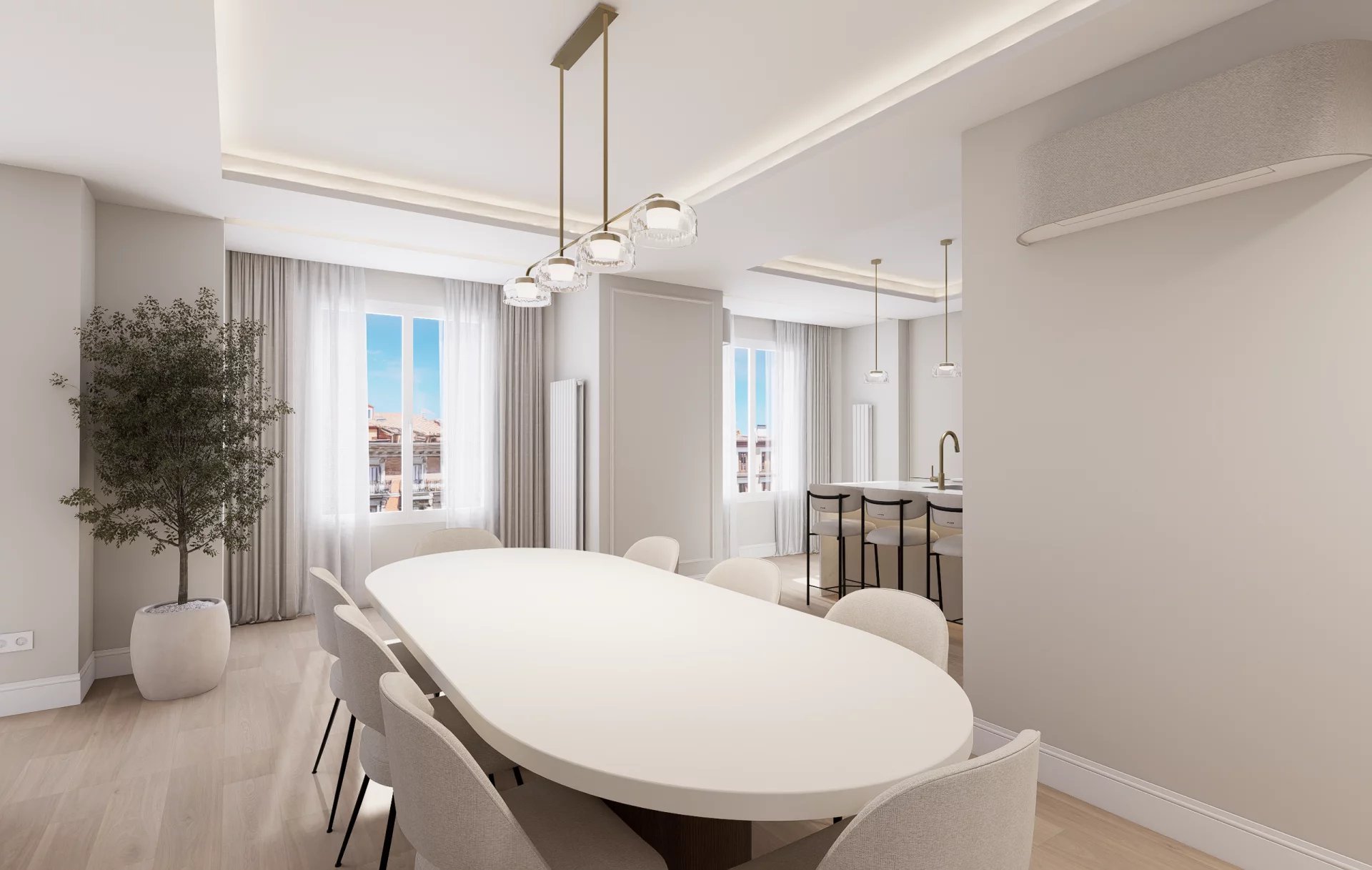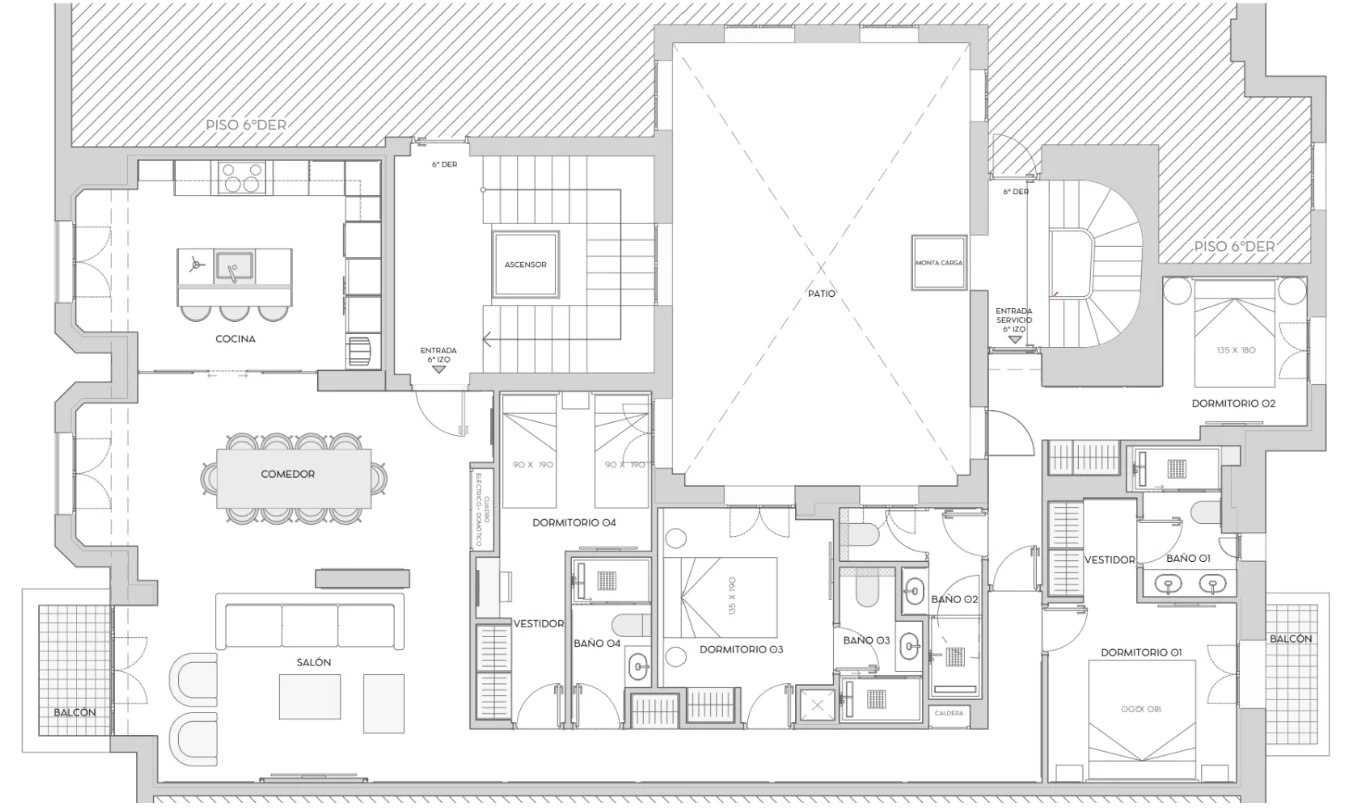 Veraltia presents this refurbished exterior apartment on the first floor in the Goya area of Madrid’s Salamanca district. With a cadastral area of 198 m², the property offers 4 bedrooms and 4 bathrooms in a comfortable and functional layout.