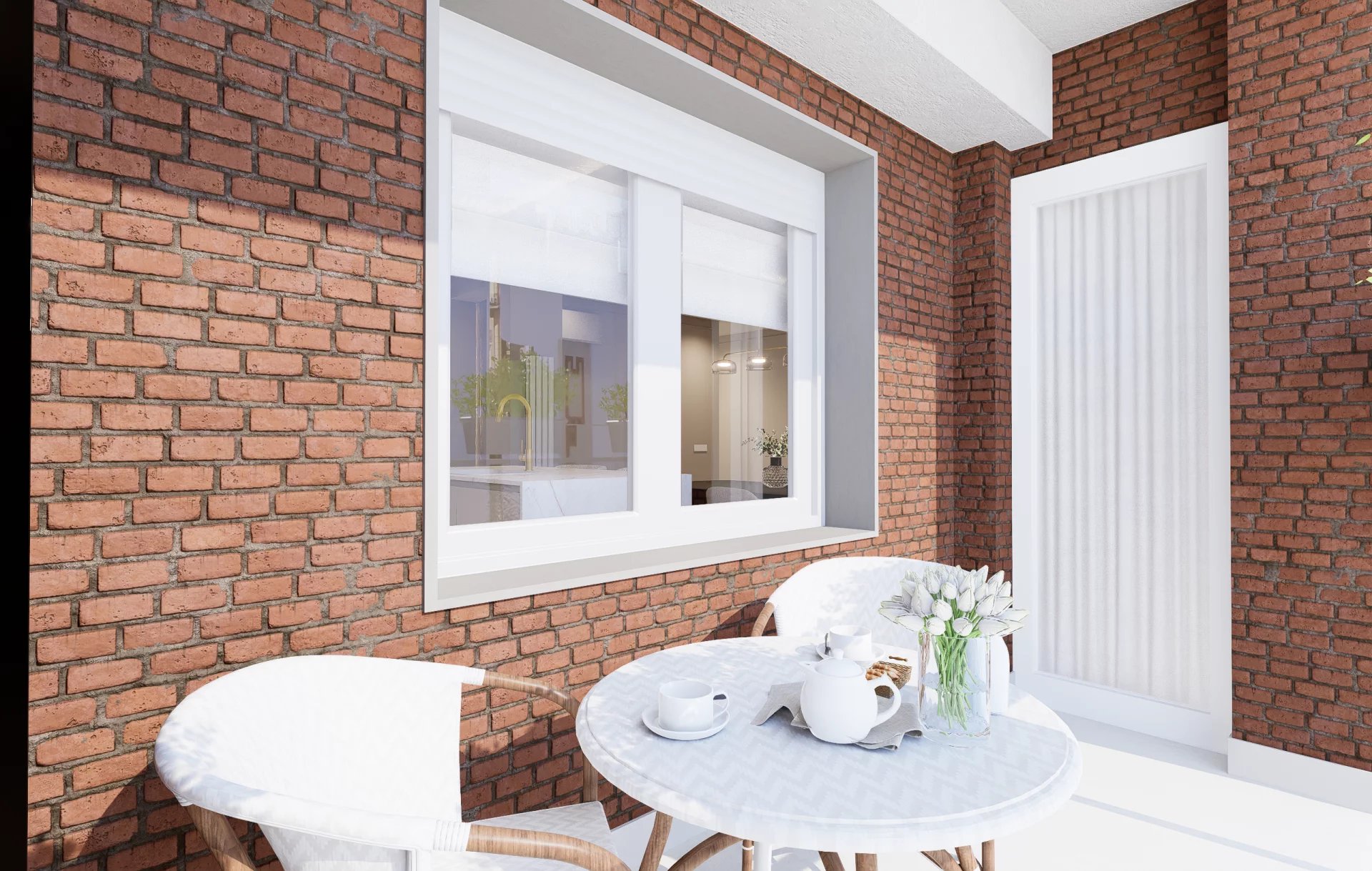 The south-facing orientation ensures abundant natural light throughout the day, complemented by a fully equipped kitchen, community heating, and air conditioning. Delivered furnished with a generous terrace, the building features an elevator and concierge service.