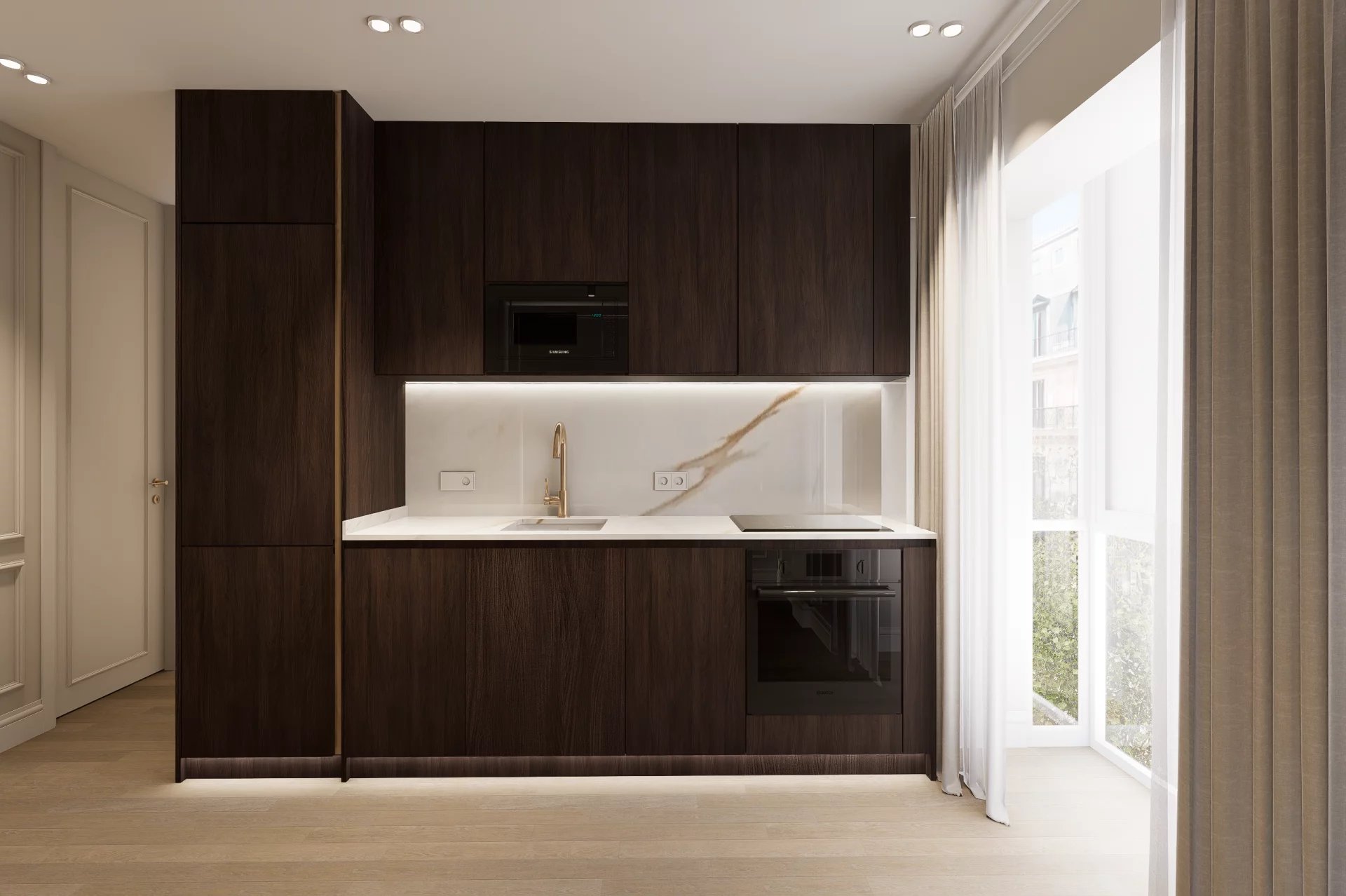 Newly built and recently refurbished, the south-facing orientation ensures excellent natural light throughout the day, complemented by a fully equipped kitchen, modern heating, and air conditioning. Delivered fully furnished, the contemporary building includes elevator and concierge service.