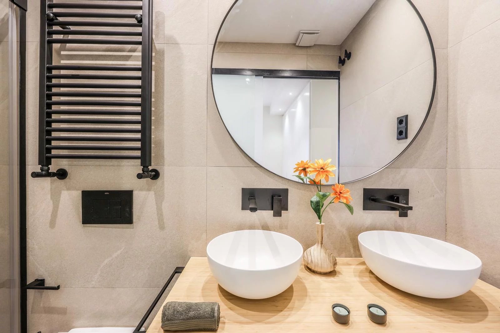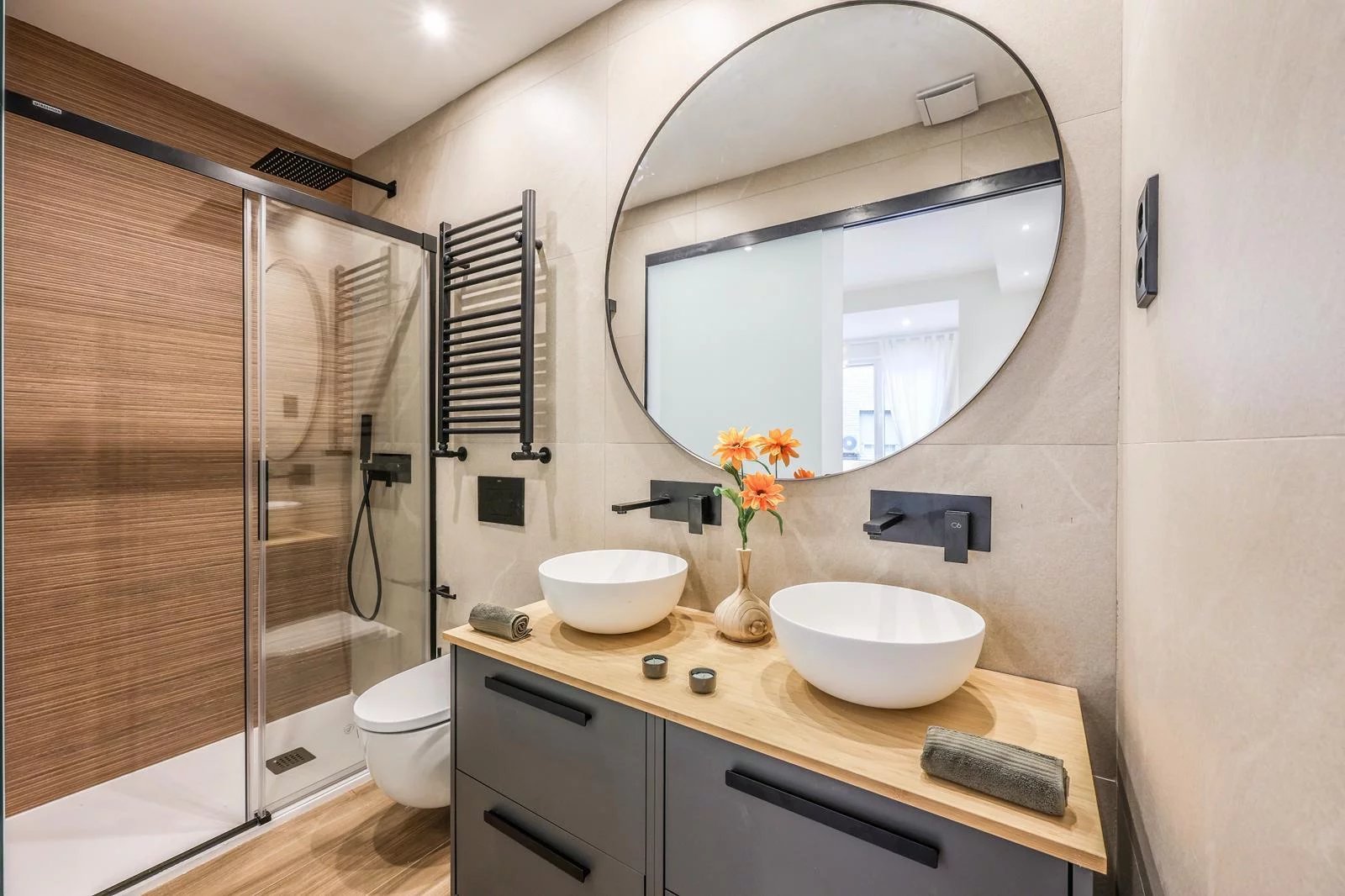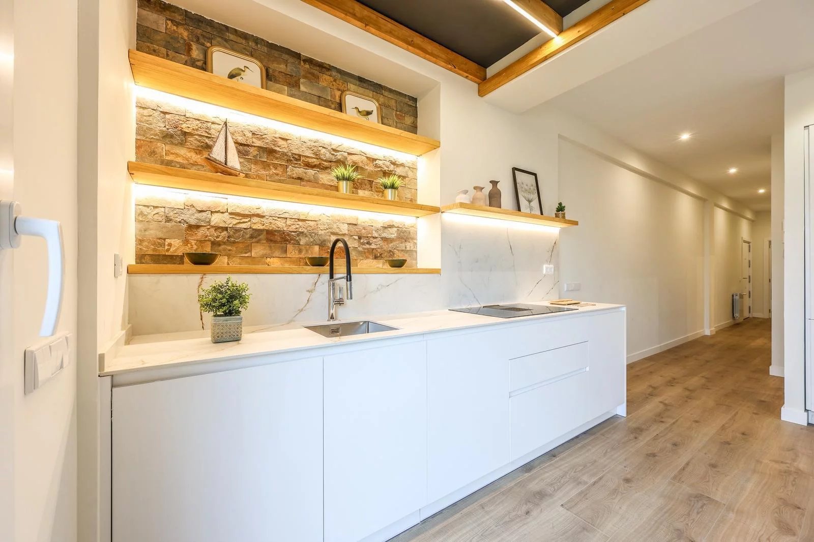 The spacious living room with American kitchen opens directly onto the generous terrace, perfect for outdoor living. Built-in wardrobes in all bedrooms, a comprehensive refurbishment with premium materials, ducted air conditioning throughout, PVC tilt-and-turn windows with motorized blinds, and delivered fully furnished. The building features a grand entrance hall and physical concierge service.
