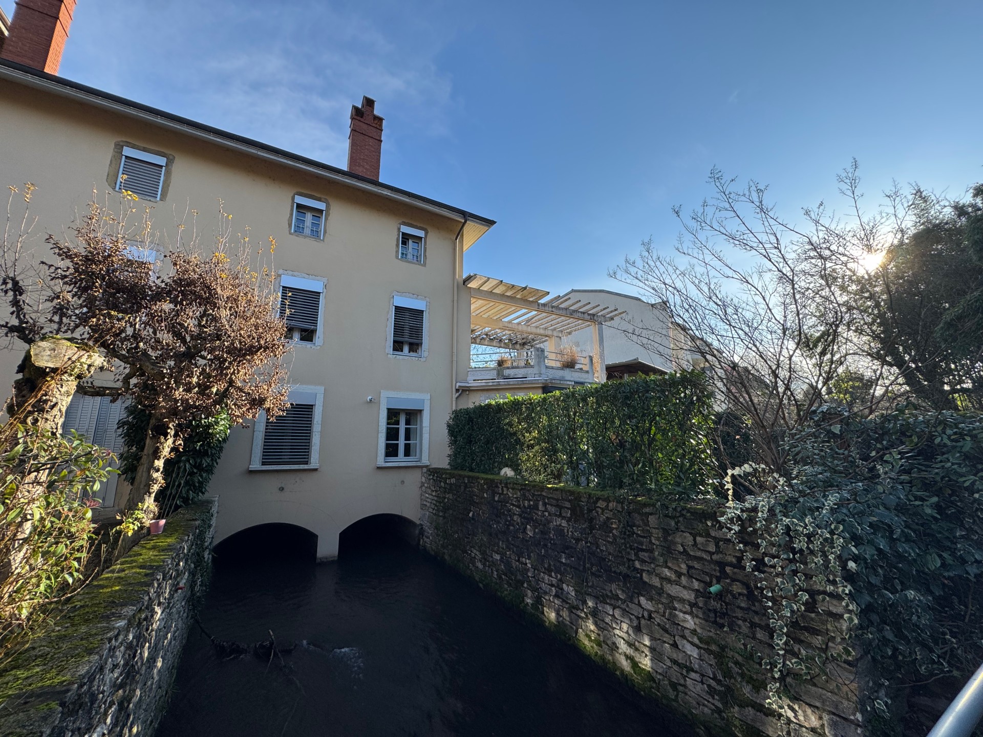 Découvrez ce magnifique appartement de type 3 dans un écrin de verdure en plein centre ville.Nous somme au CLOS CONVERTRésidence sécurisé avec portail motorisé, vous pénétrez dans cet îlot préservé comprenant 4 bâtiments.Notre appartement se situe au 1er étage avec sa propre montée d?escalier.Vous serez surpris par cette immense terrasse en rotonde orientée plein Sud.L?appartement état neuf se compose d?une entrée, d?un beau séjour de 27 m2 et une cuisine équipée separée.Un coin nuit avec 2 chambres enjambants le canal de la Reyssouze.Une salle de bains et un wc séparé suspendu.Parking dans la copro libre d?accès.Visite sur rdv Honoraires charge vendeur