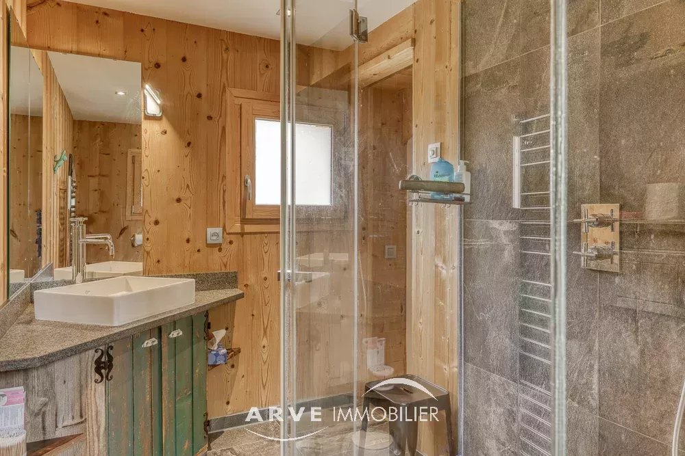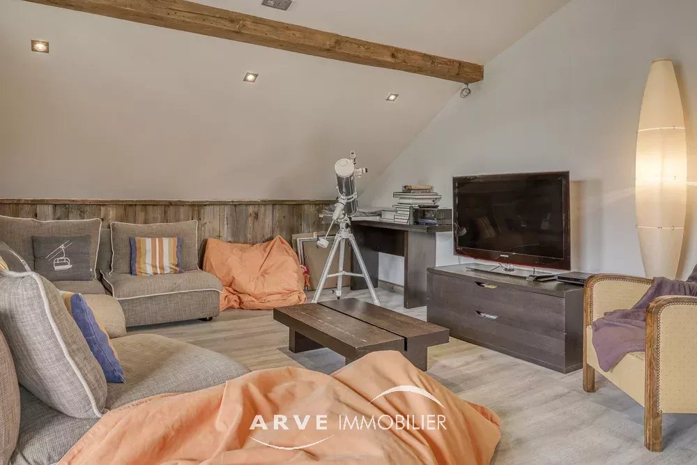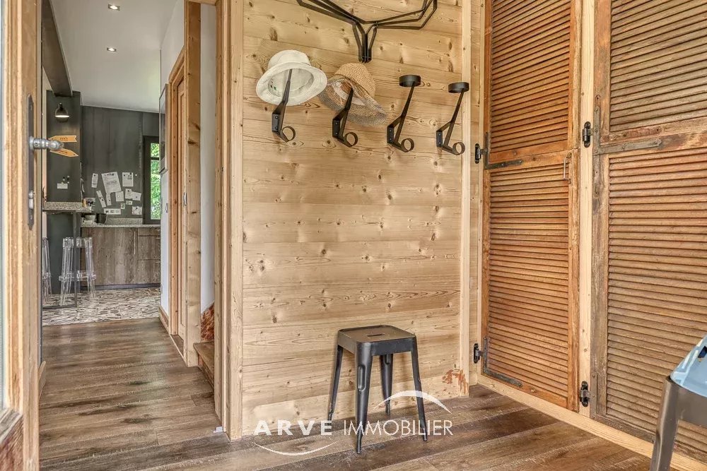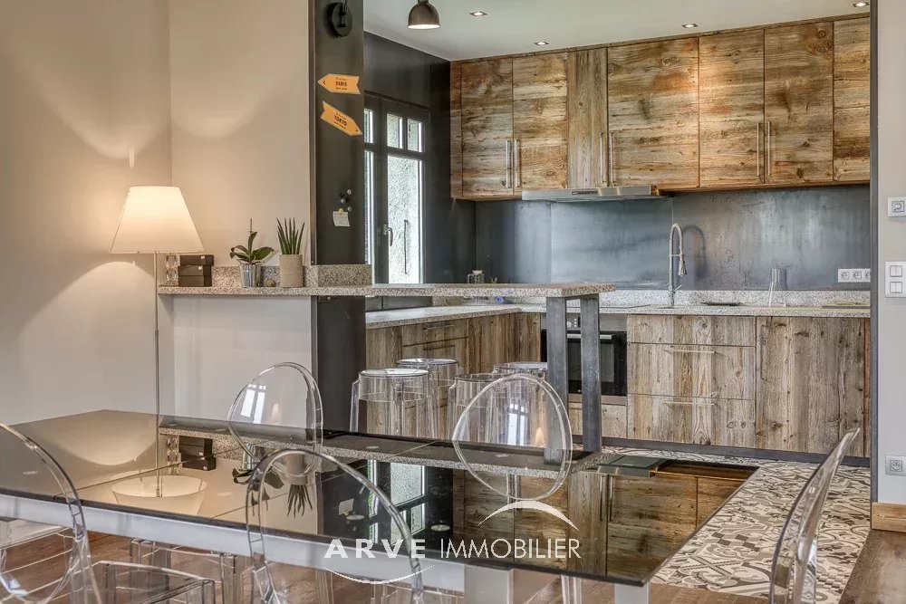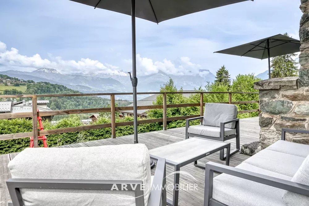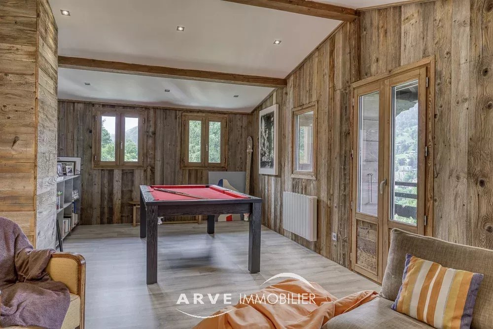 A proximité du centre du village, une maison des années 1930 dont l'espace intérieur a été rénové. Elle est composée en rez-de-jardin : une entrée, un séjour, un cuisine ouverte, à l'étage, trois chambres, une buanderie, sous les combles, une salle de jeux, une chambre, un coin nuit, deux salles d'eau avec WC, une grande cave. Le séjour donne sur une grande terrasse en bois d'une surface de 80 m² orientée sud-ouest. En annexes : un mazot, une remise, un garage et plusieurs places de parking extérieur.