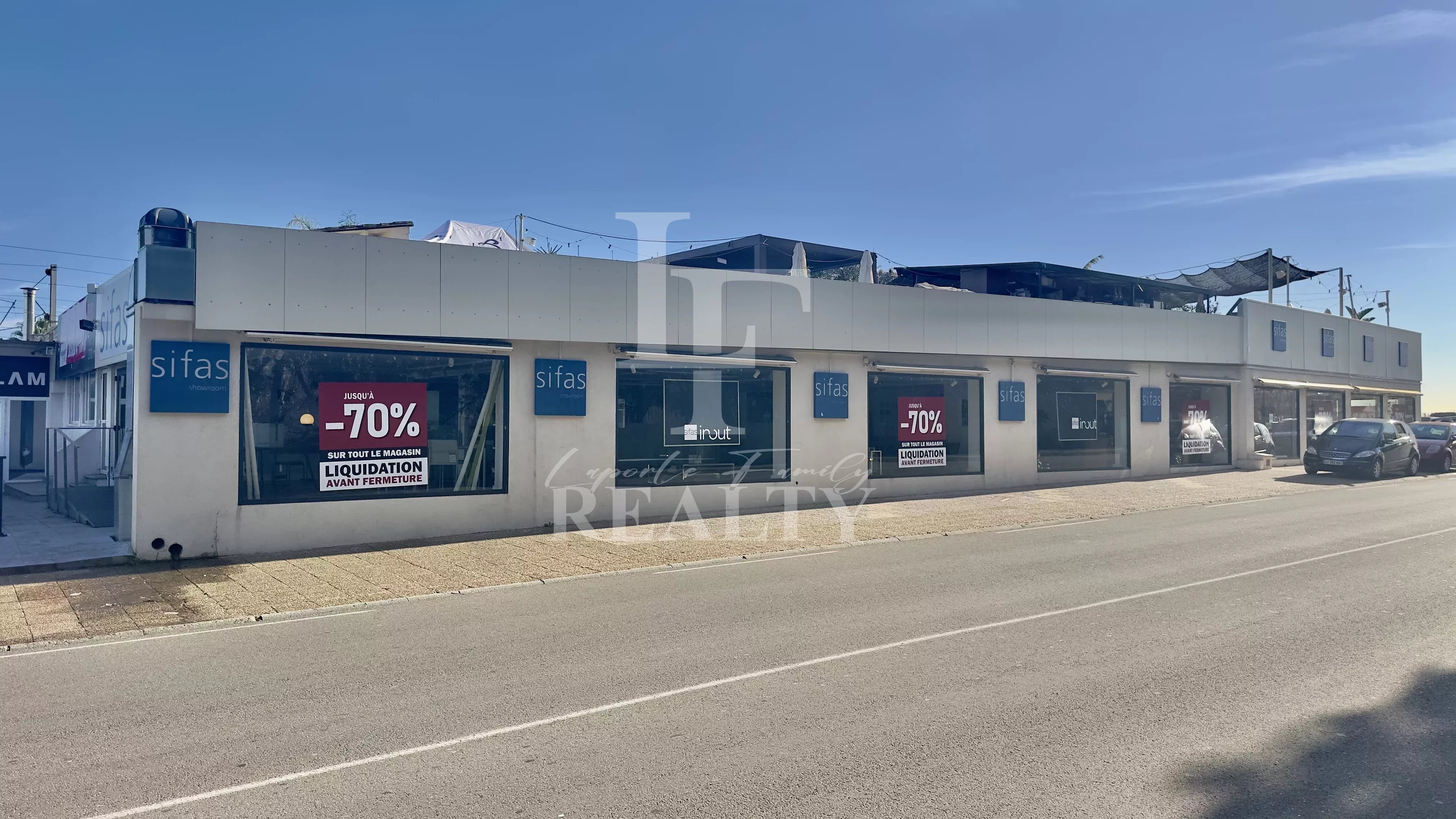 Situé sur l’axe ultra fréquenté de la RN7 à Antibes, dans un environnement commercial dynamique (restauration, équipement de la maison, sport, mode, services…), ce local de 670 m² en rez-de-chaussée offre une visibilité rare, face à la voie ferrée, au bord de mer et à proximité immédiate de Marineland, de la gare de Biot et des grands axes (route de Nice, autoroute).