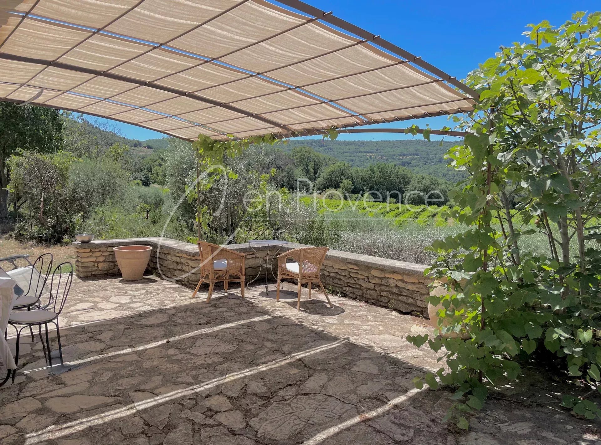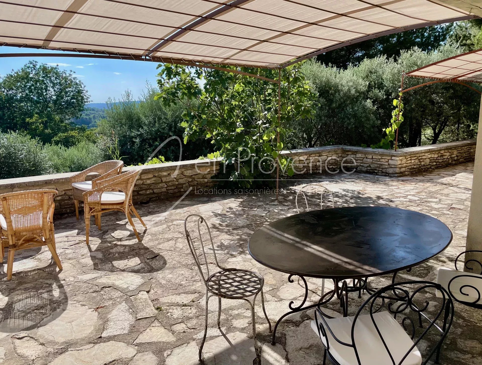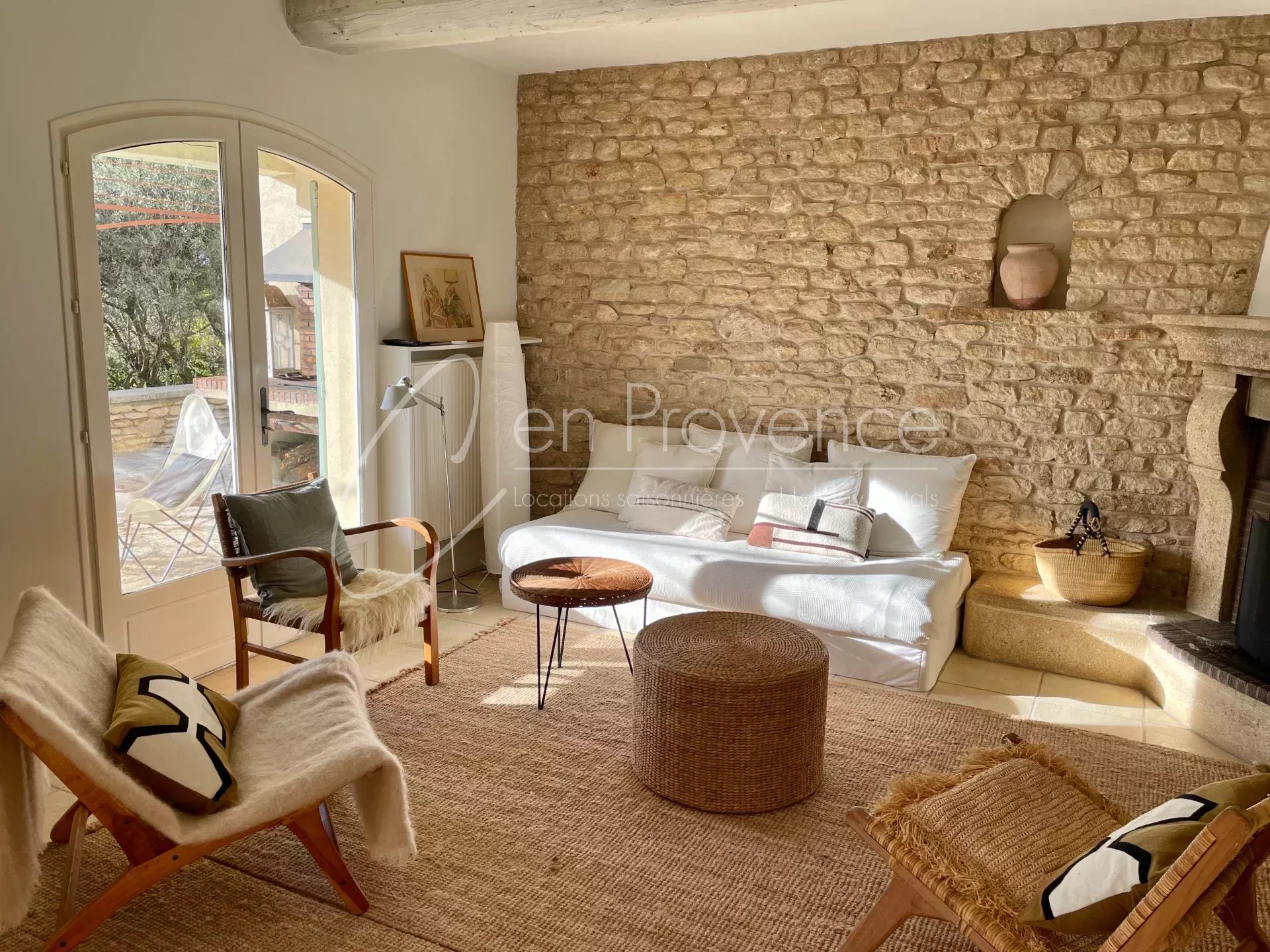 Située proche du centre d'Apt, cette villa de charme à louer dans le Luberon offre un cadre champêtre, calme et préservé, avec une vue dégagée sur la vallée du Luberon et les vignes environnantes.