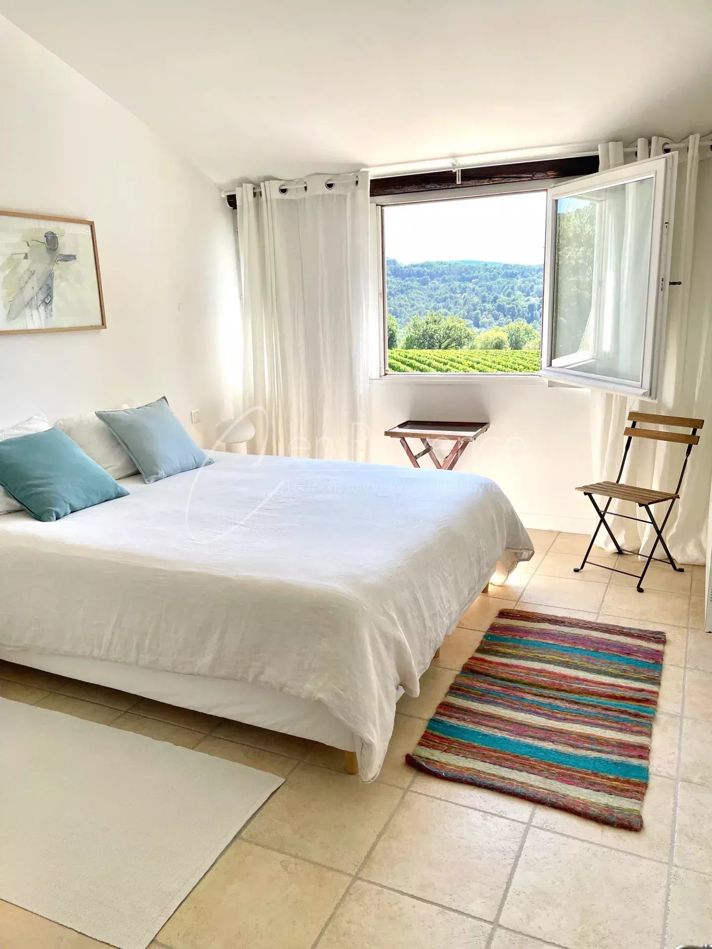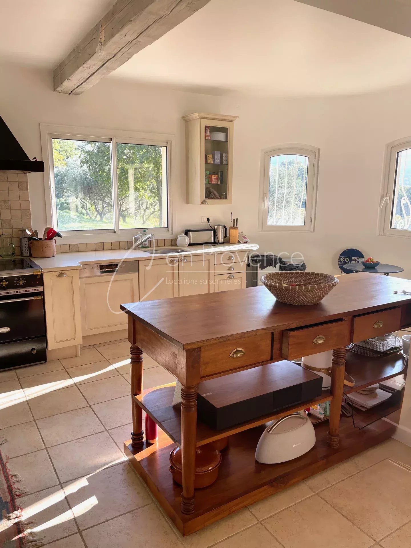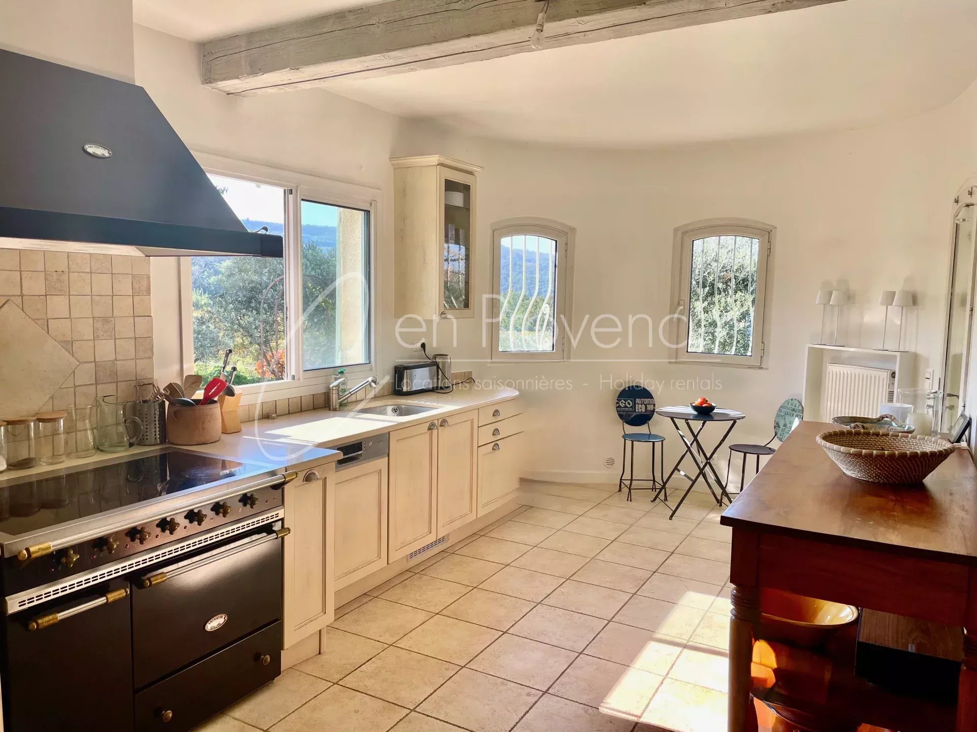 Située proche du centre d'Apt, cette villa de charme à louer dans le Luberon offre un cadre champêtre, calme et préservé, avec une vue dégagée sur la vallée du Luberon et les vignes environnantes.