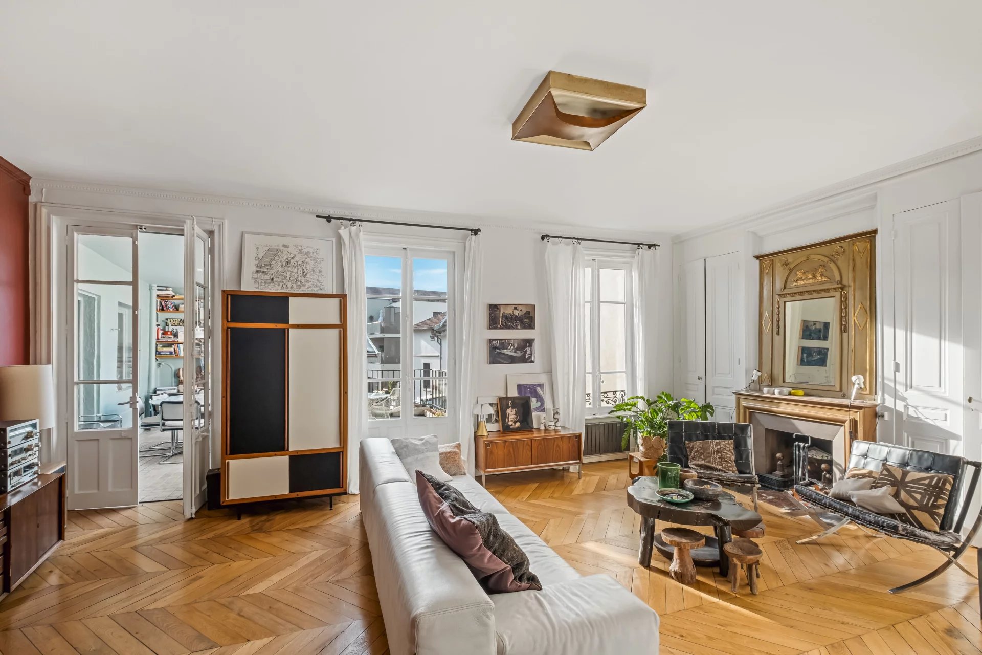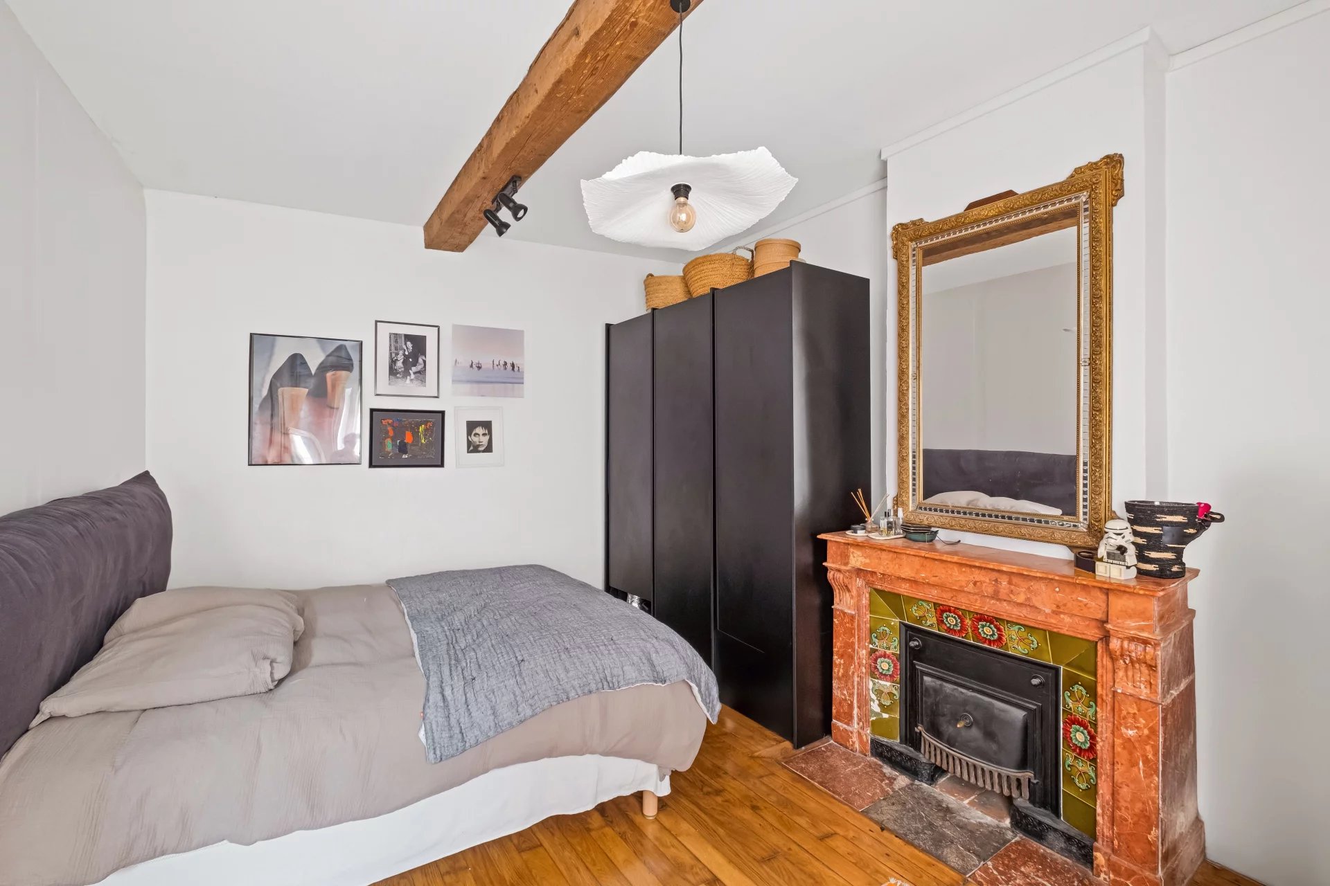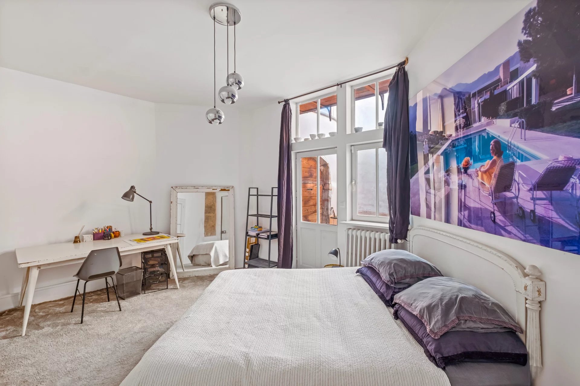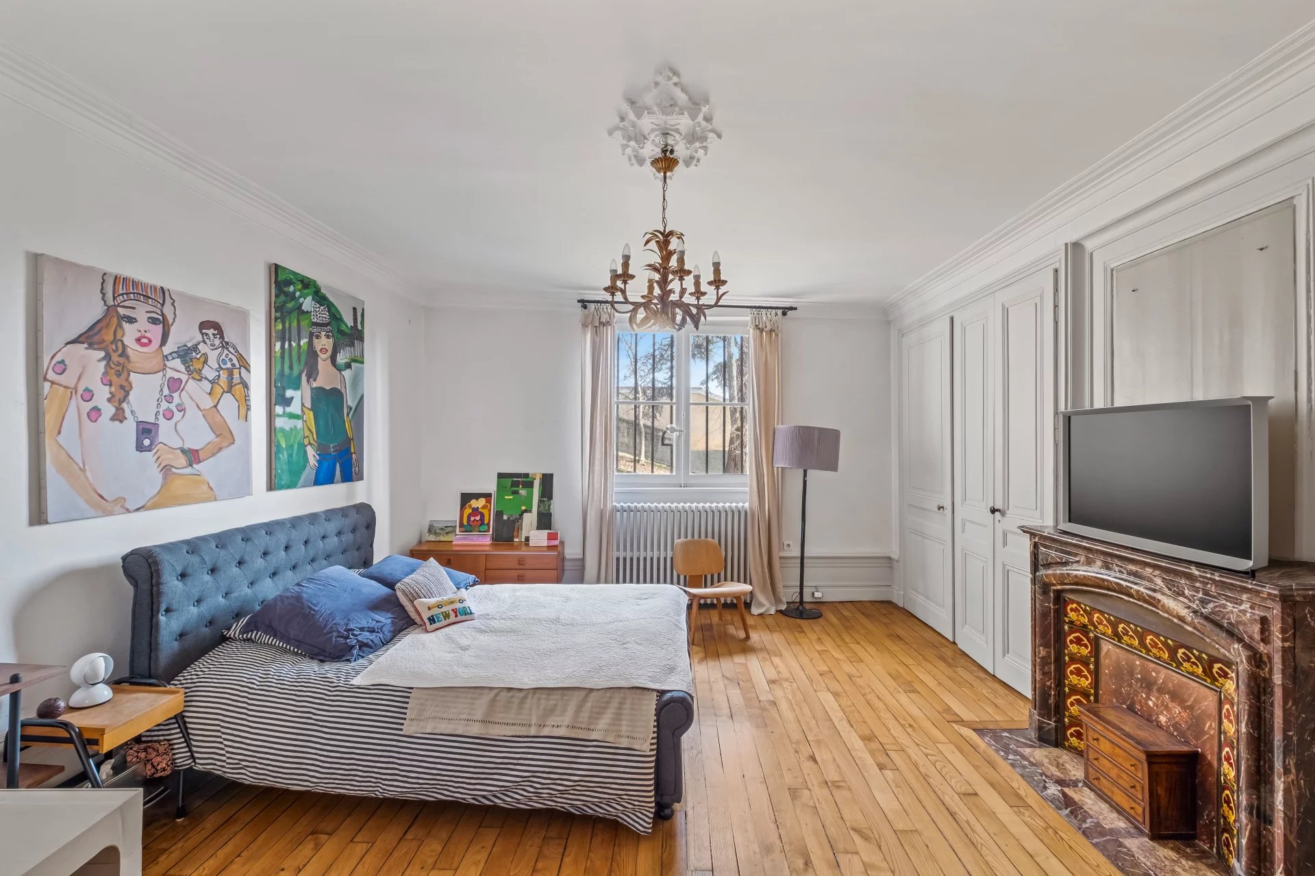 Ce niveau comprend également un bureau fonctionnel, ainsi que deux grandes chambres au charme authentique, ornées de magnifiques parquets en chevrons et de superbes cheminées en marbre. Parmi elles, une somptueuse suite parentale de 28 m² offre un espace privé et confortable. Une salle de bains équipée d'une baignoire et d'une douche, complète cet étage, ainsi qu’un WC indépendant et un accès à une cave spacieuse.