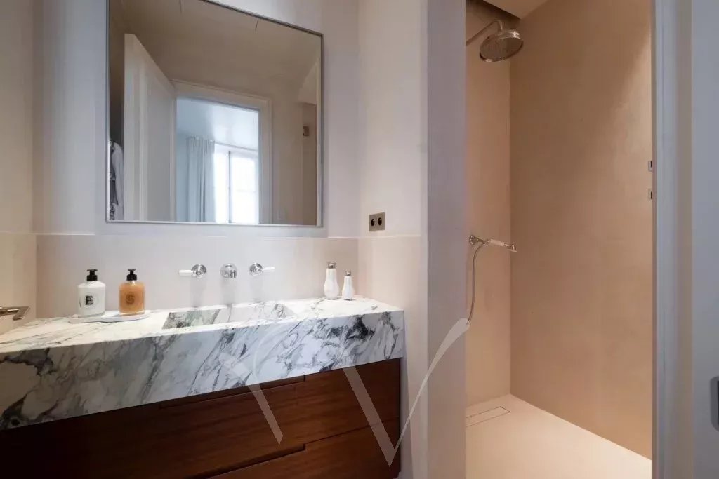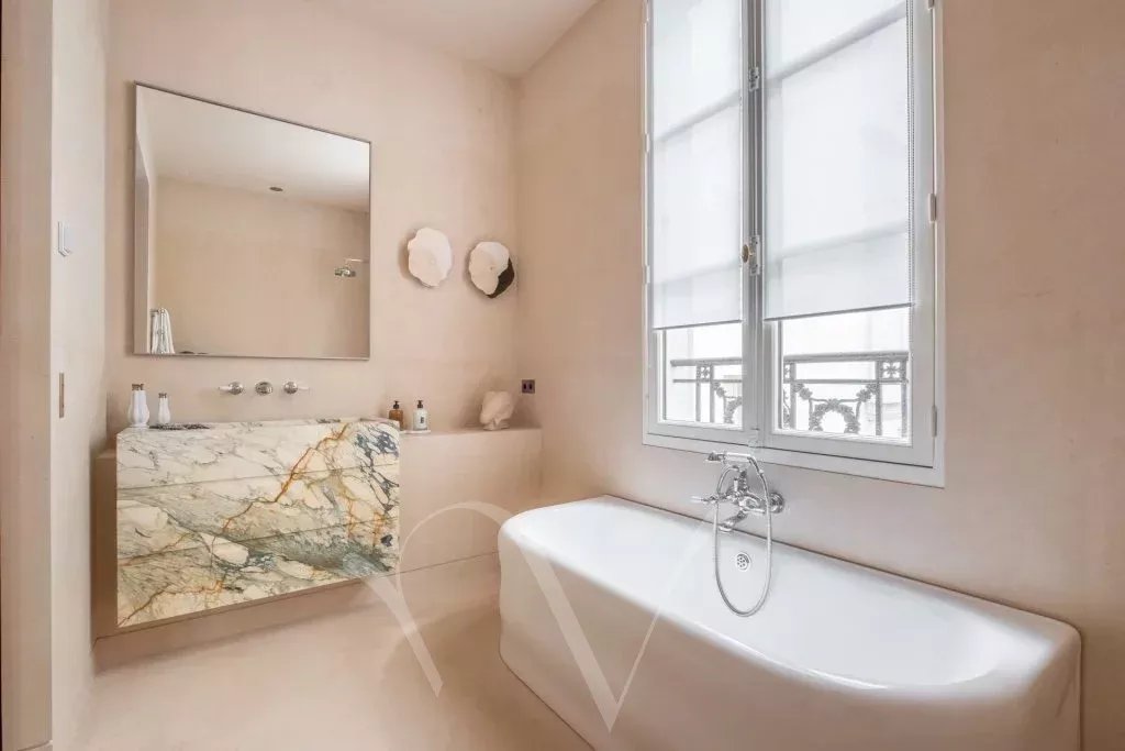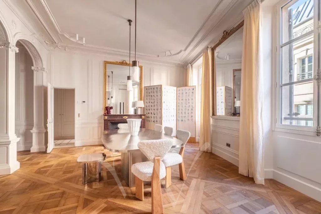Dans un bel immeuble en pierre de taille, au deuxième étage noble avec ascenseur, cet appartement de 148 m² est traversant entre la rue et la cour, et exposé est et ouest. Ayant bénéficié d'une rénovation très luxueuse signée Pierre Lacroix, l'appartement offre un plan optimisé, avec une entrée desservant un salon et une salle à manger avec cheminée et parquet Versailles, une cuisine aménagée et trois chambres en suite, chacune avec sa salle de bains complète. Superbe appartement clé en main, climatisé, au cœur de Saint-Germain-des-Prés, à proximité de nombreux commerces, restaurants et de sa vie culturelle.