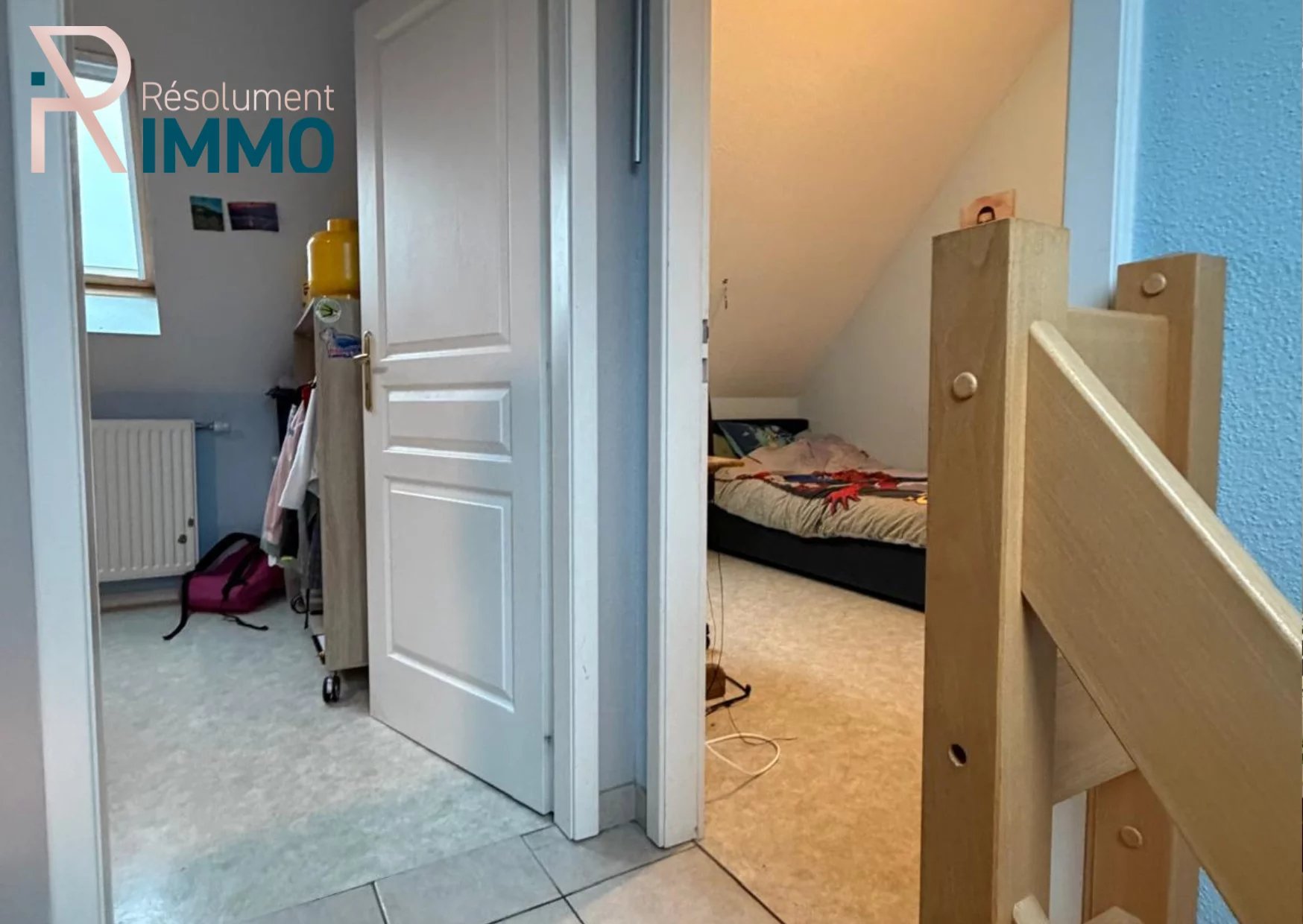 A l'étage, l'appartement dispose de deux chambres supplémentaires, parfaites pour une famille ou un espace bureau.