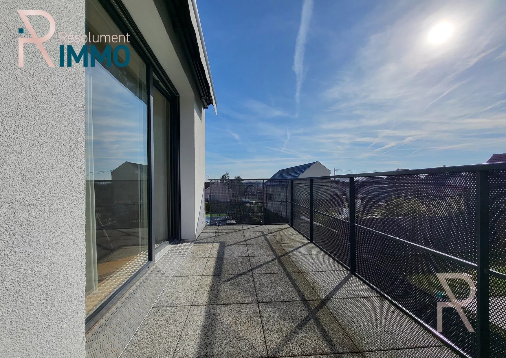 -Un salon séjour avec accès balcon orienté sud et équipé d'un store motorisé.