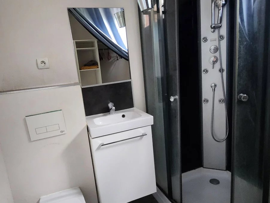 -salle d'eau avec douche , wc suspendu -serviettes de toilettes, draps et torchon disponibles
