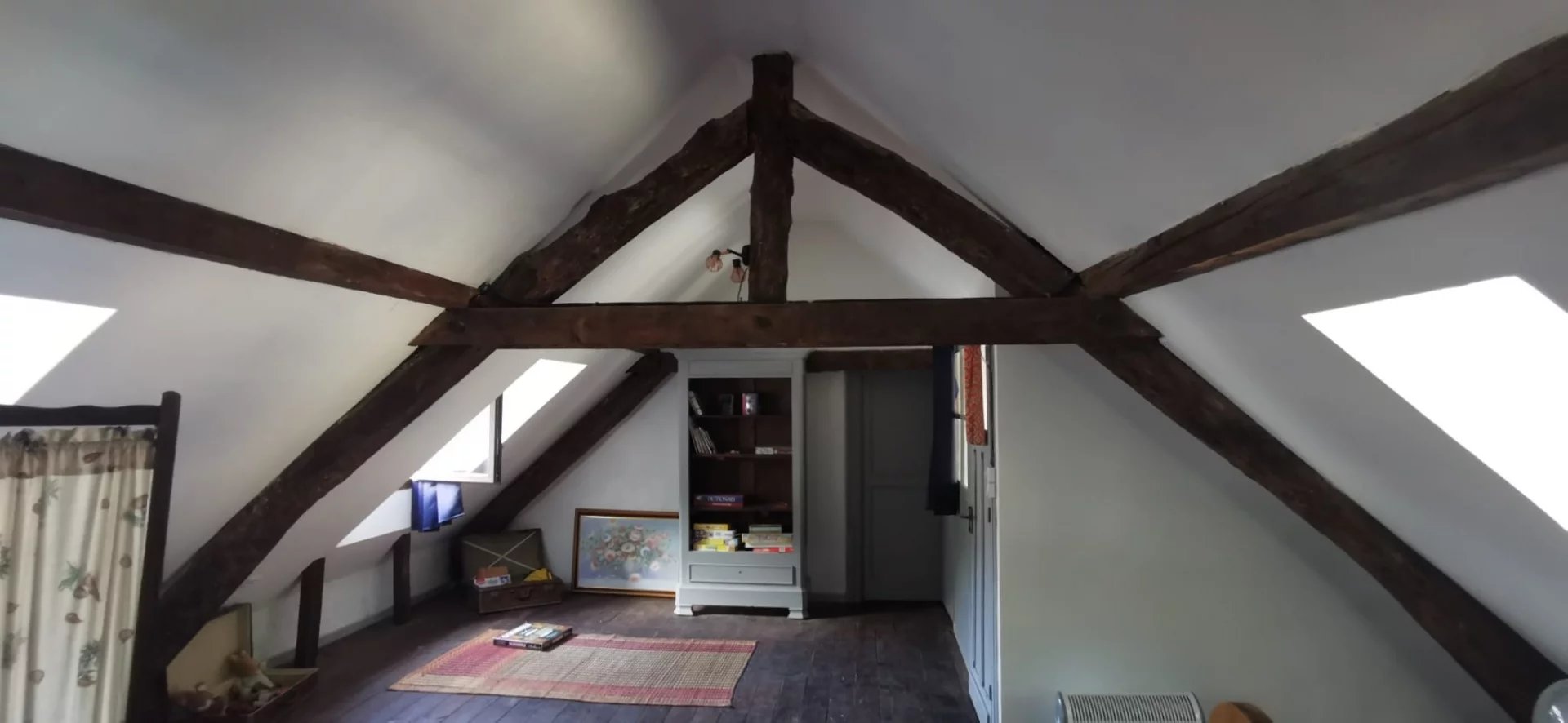 Espace entièrement isolé avec poutres apparentes : un grand dortoir, espace jeux, et une chambre traversante. Belle luminosité assurée par 5 capucines.