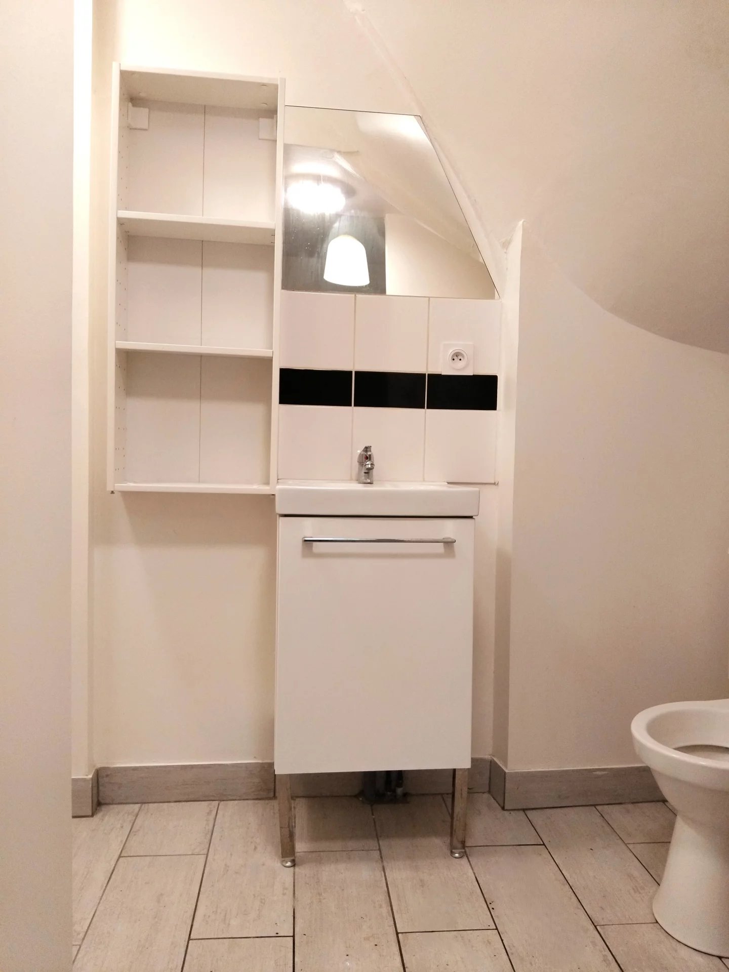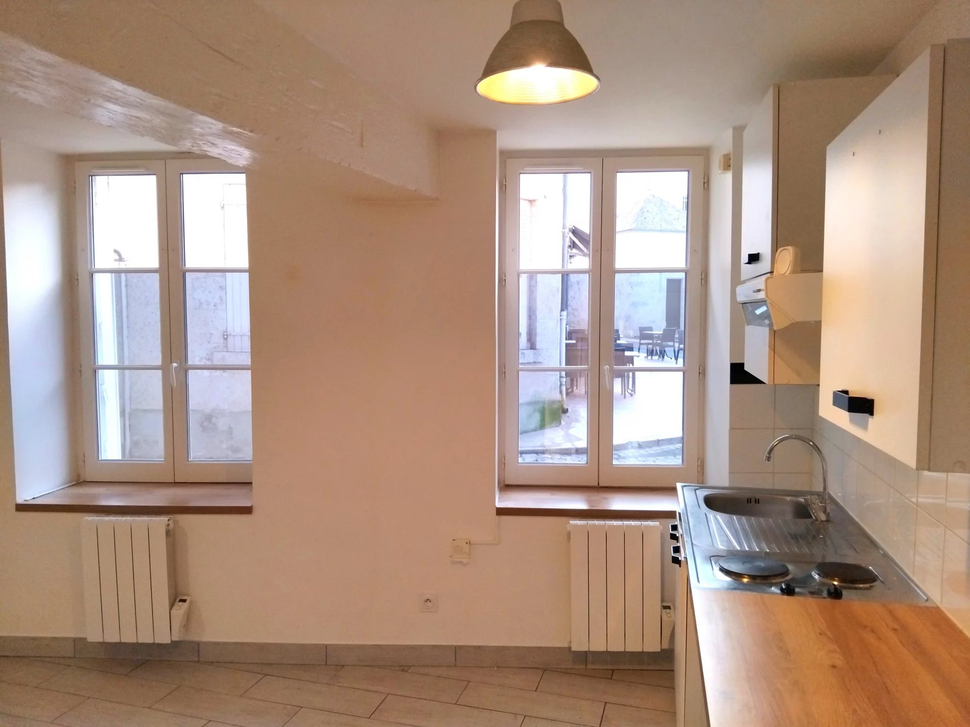 A louer : un appartement en plein centre de Meung sur Loire, 25 m², au rez-de-chaussée d'un immeuble de 2 étages. Pièce de vie avec cuisine aménagée, équipée de deux plaques électriques et un hotte. Une chambre qui donne sur une cour commune aux trois appartements, ouverte sur la salle d'eau : douche, toilettes et meuble vasque. Un box privatif dans la cour commune. Chauffage électrique, ballon d'eau chaude électrique, tout à l'égout. Nombreuses places de parking à proximité. Loyer : 372 euros Charges : 23 euros (eau et taxe d'ordures ménagères) Libre de suite.