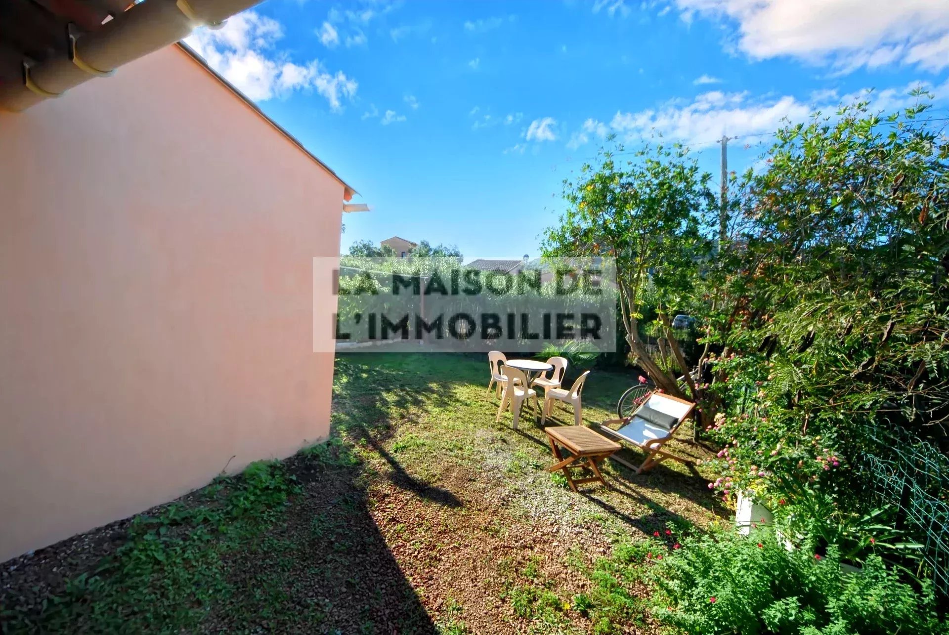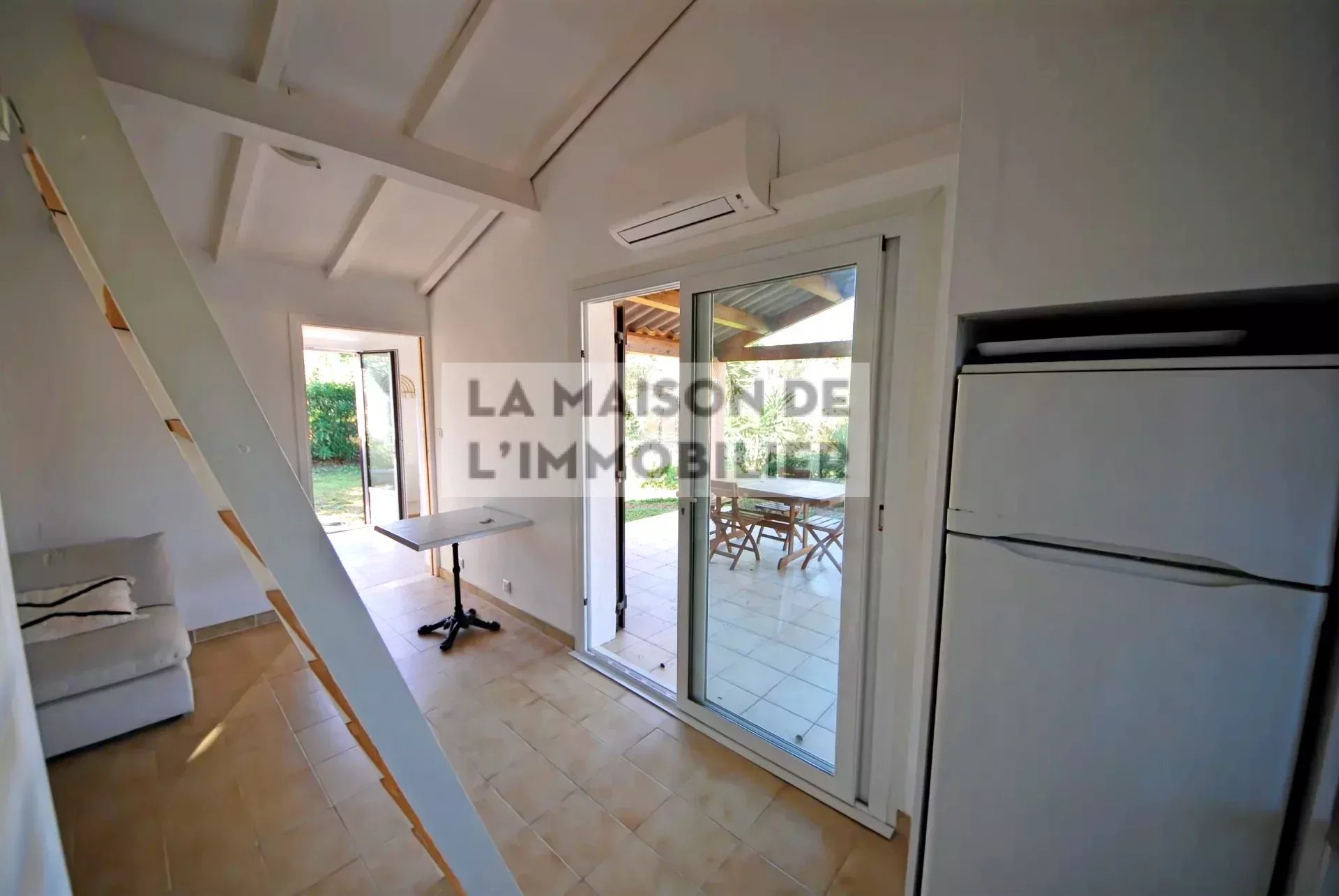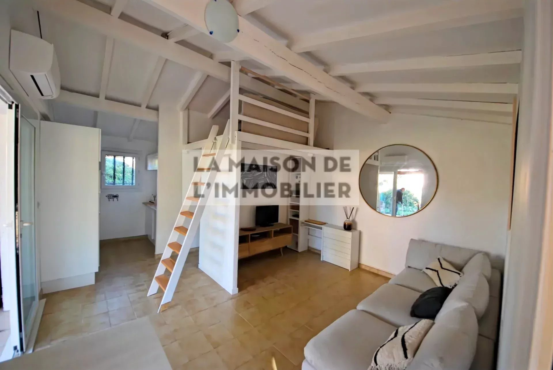 À 500 m à pied de la plage de Pinarello, dans une résidence paisible, venez découvrir cette mini villa de type 2 de 34,69 m² avec terrasse et jardin privatif pour une surface totale de 115 m². Ce bien est composé d'un salon-séjour, d'une cuisine, d'une chambre, d'une salle d'eau, d'un cabinet de toilettes, d'une terrasse couverte et d'un espace vert entièrement clos. Des menuiseries avec double vitrage et une climatisation assurent un bon confort thermique. Ce logement est vendu entièrement meublé. Il dispose également d'une place de stationnement.