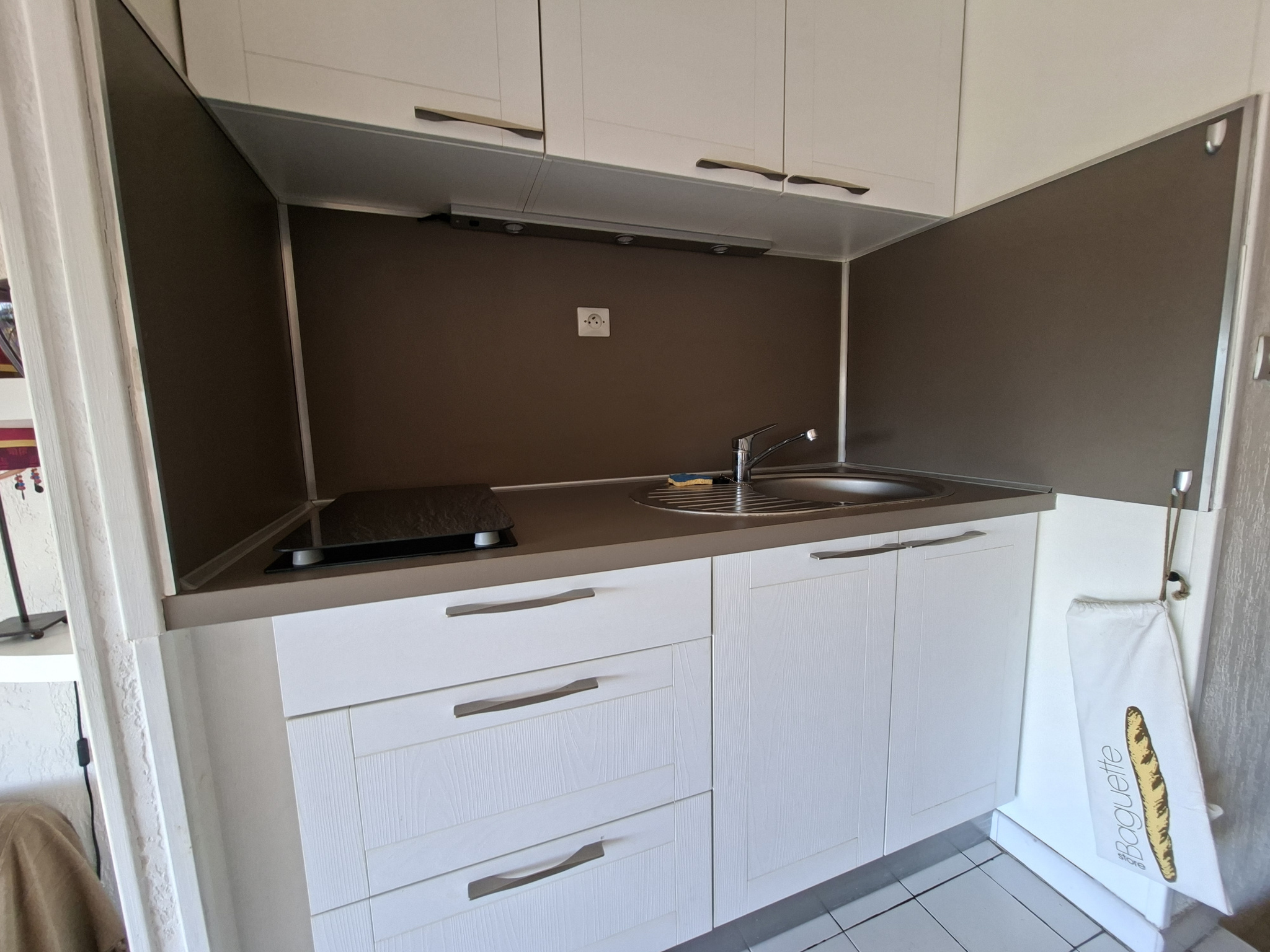L'Appartement est composé d'une petite chambre avec fenêtre, wc séparés et salle d'eau moderne. La pièce de vie dispose d'un coin cuisine / salle à manger et d'un espace salon détente donnant sur terrasse ensoleillée face aux espaces verts et la piscine de la résidence