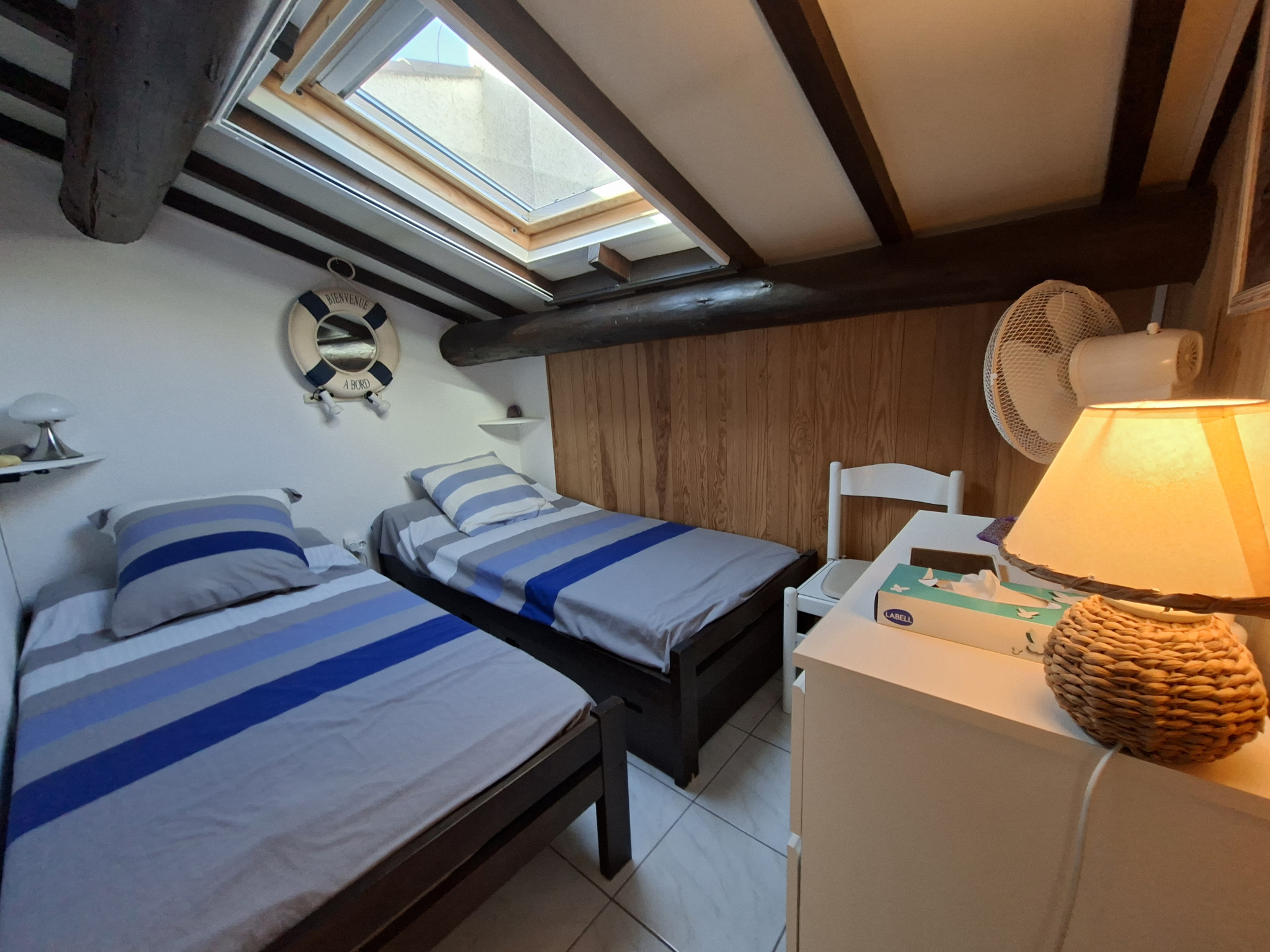 À l'étage, ce bien dispose de deux belles chambres avec couchage double chacune, un emplacement parking se trouve en face de la villa.