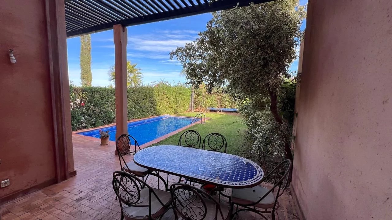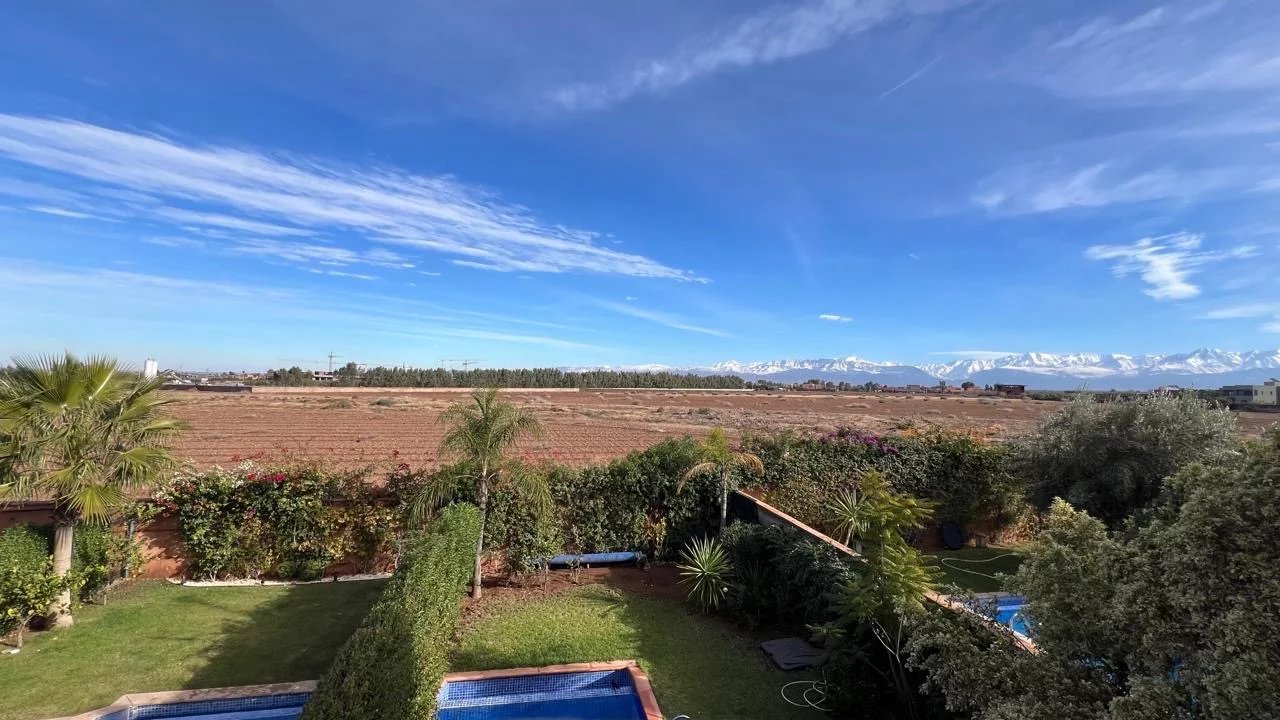 Très jolie villa d’environ 300 m2 , en copropriété dans une des plus belles Residences du secteur et située sur la route ourika. Cette villa est sur 2 niveaux Au Rdc , 1 salon/ salle à manger avec cheminée , 1 cuisine équipée , 1 arrière cuisine , 1 chambre et 1 bureau Au 1 er étage : 3 chambres dont 1 suite avec dressing et salle de bain et sa terrasse, 1 salle d’eau et 1 wc indépendant. VLA 1173 La résidence offre des prestations communes : club house, restaurant; terrain de basket, golf …
