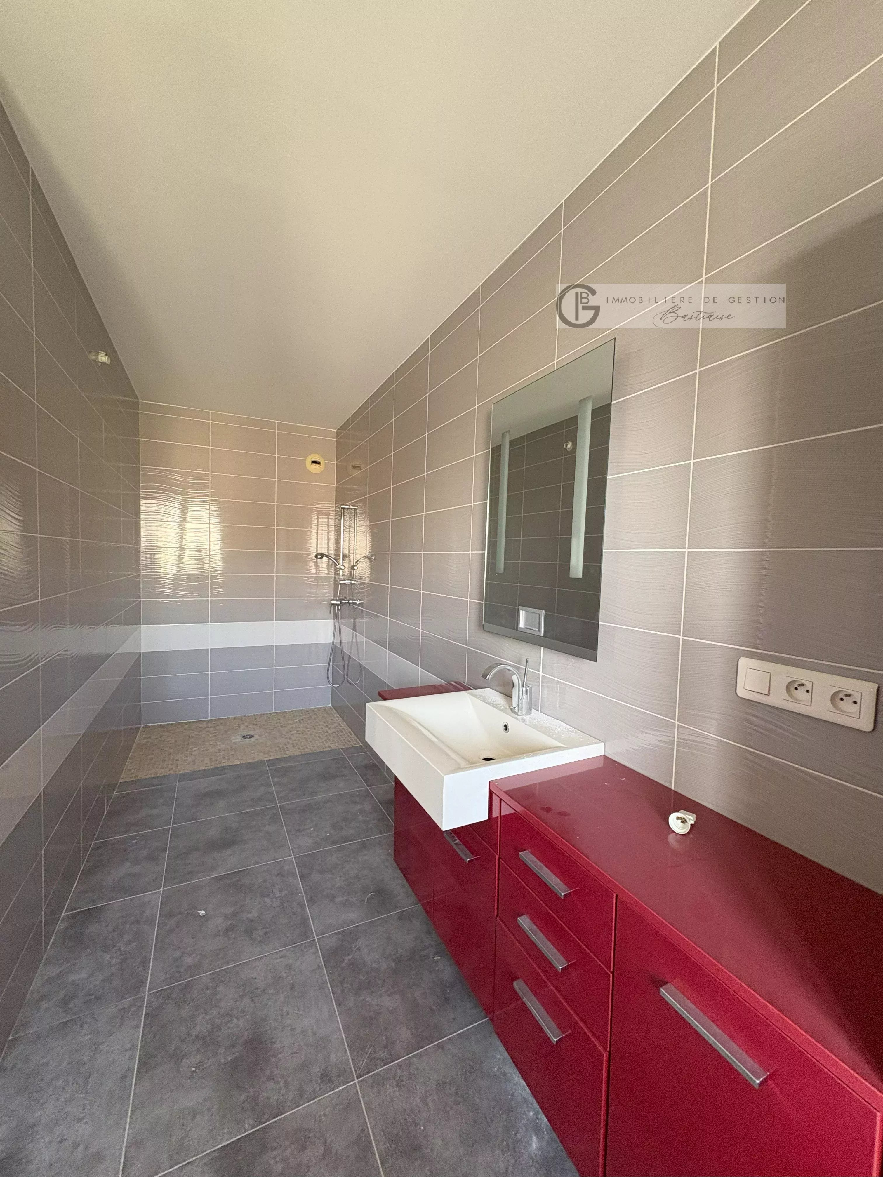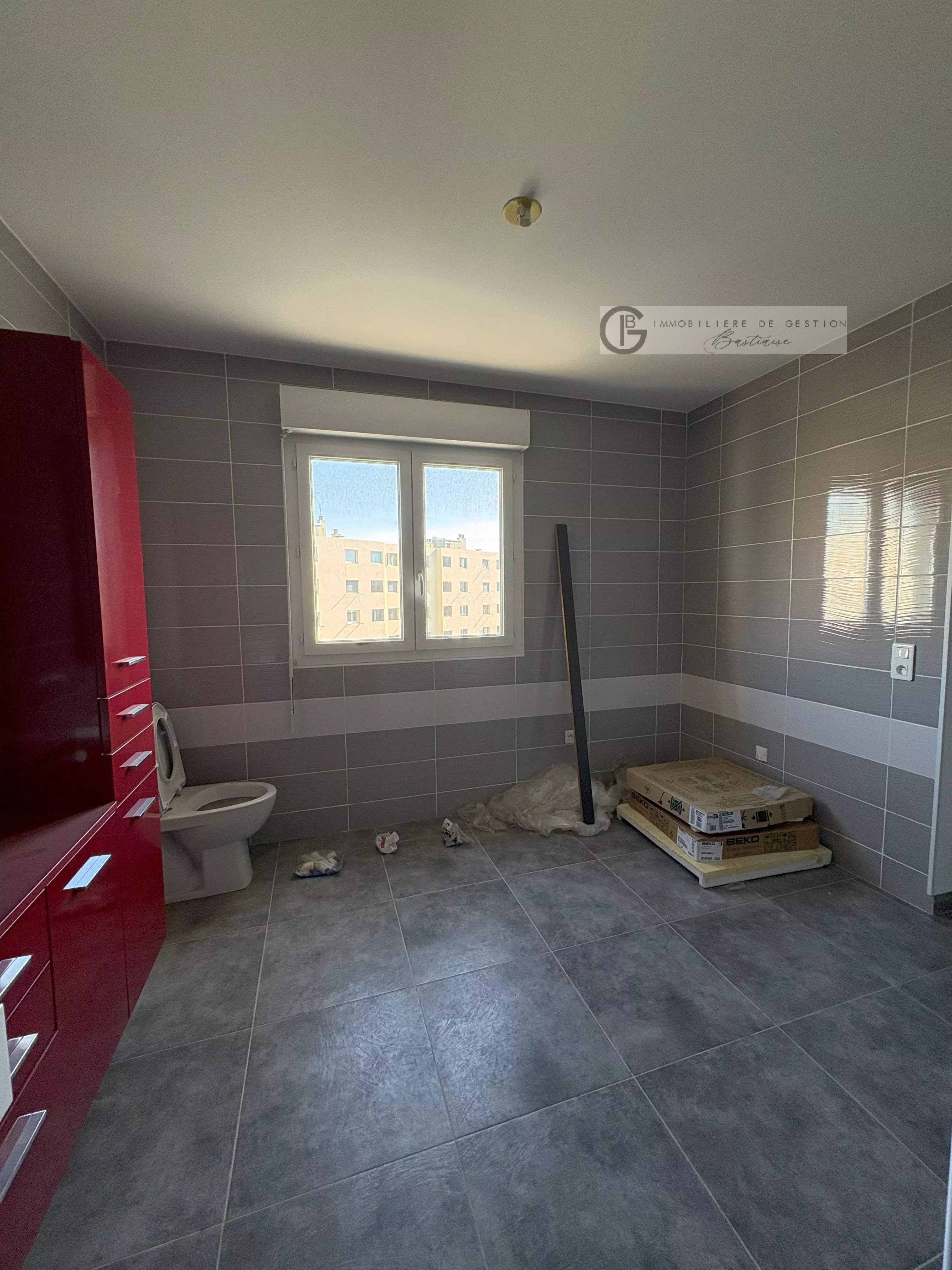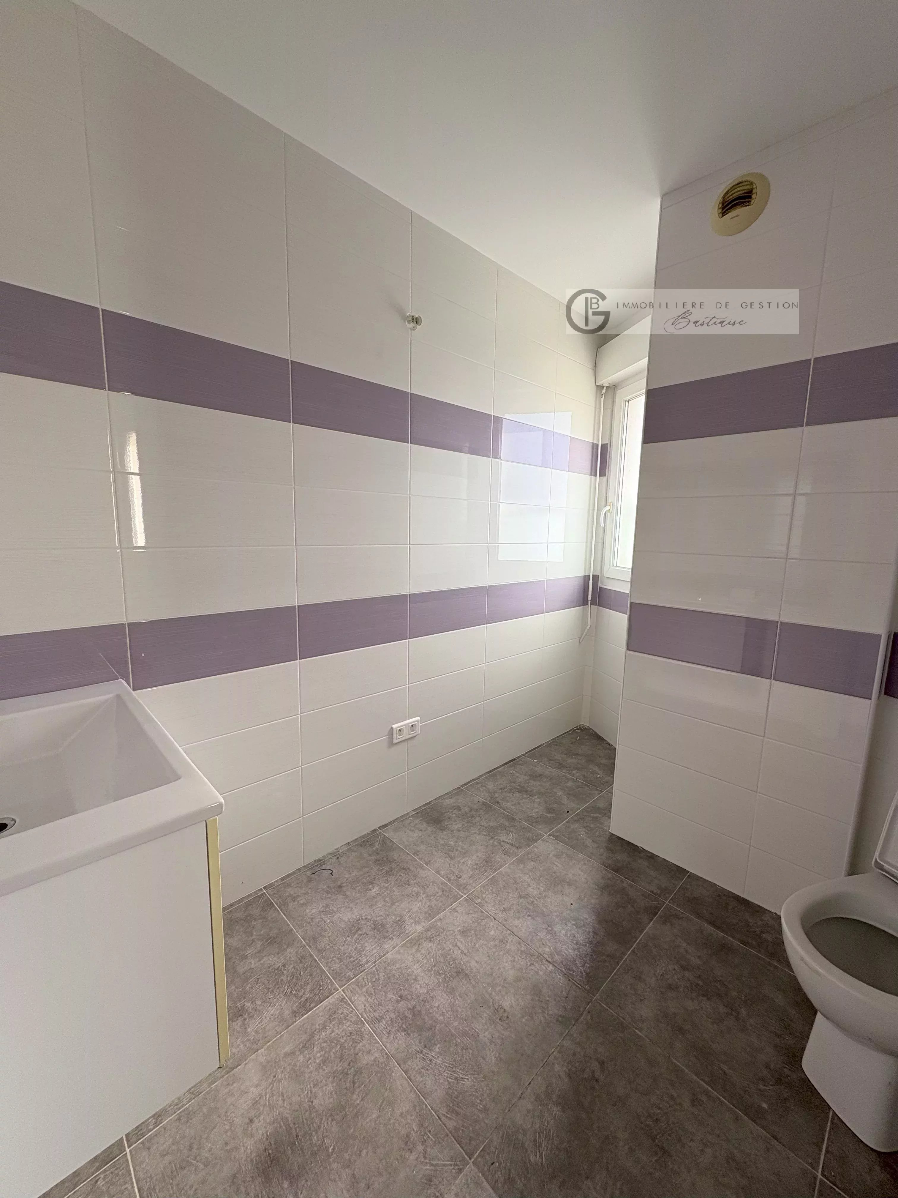 BASTIA SUD: Grand T3 de 142 m2 avec grande terrasse dans une résidence récente et sécurisée proche de l'Alb'oru et hôpital. Il se compose d'une entrée, un grand salon- séjour, une cuisine équipée (four, plaque, hotte) deux salle d'eau, 3 wc, cellier, 2 chambres, placards L'appartement possède deux entrées indépendantes. Idéal pour bail mixte. climatisation, parking, terrasses. A VISITER ABOLUEMENT!