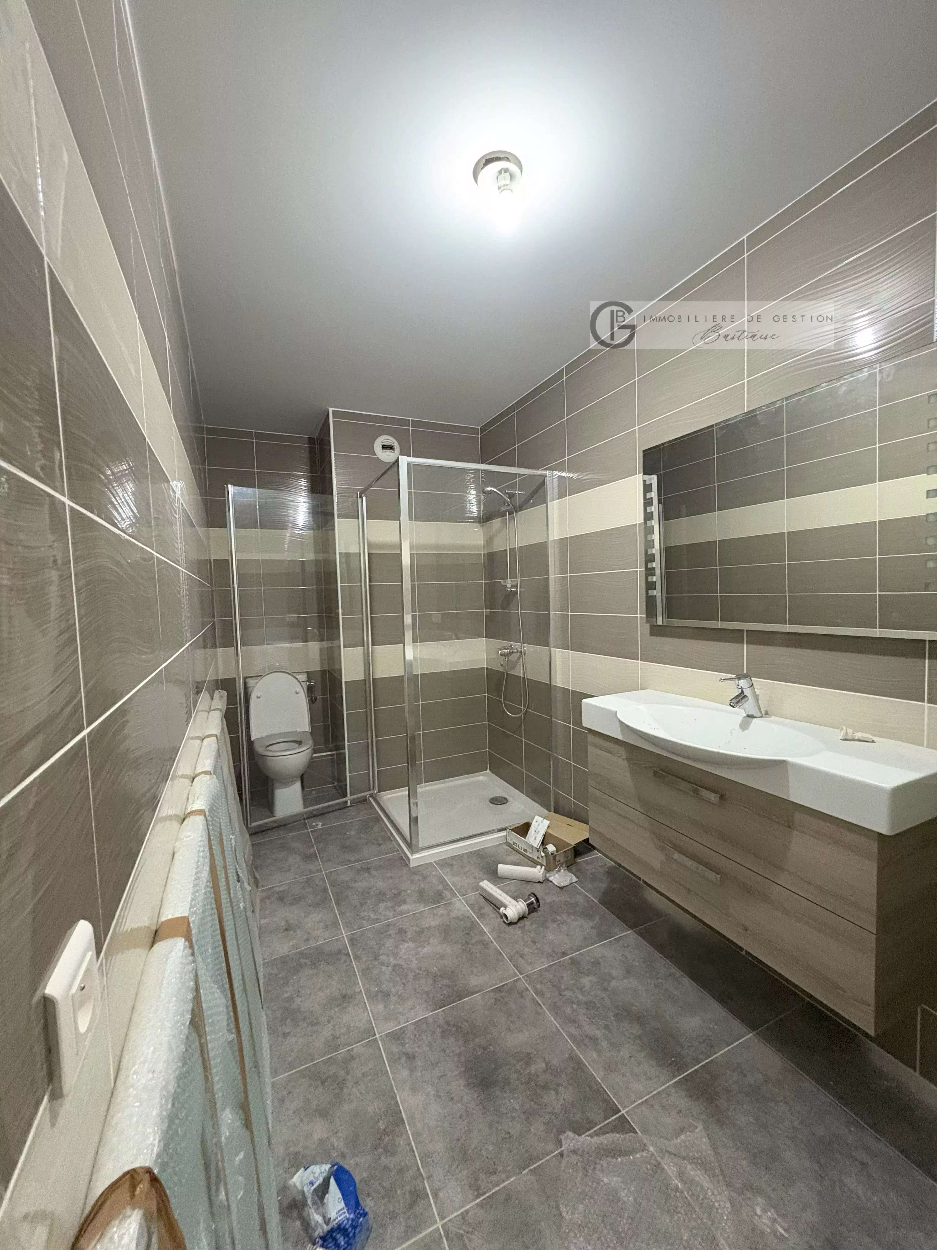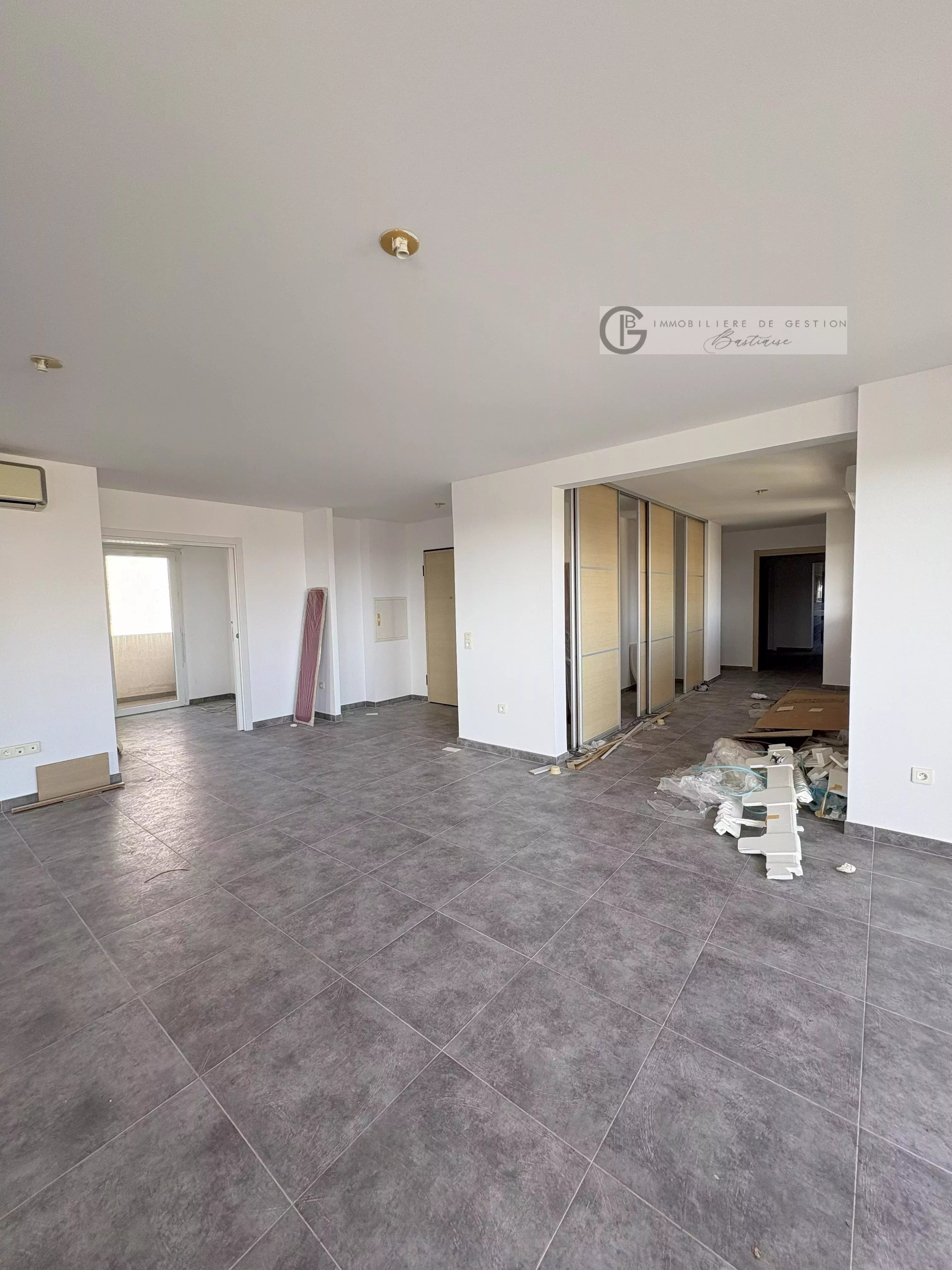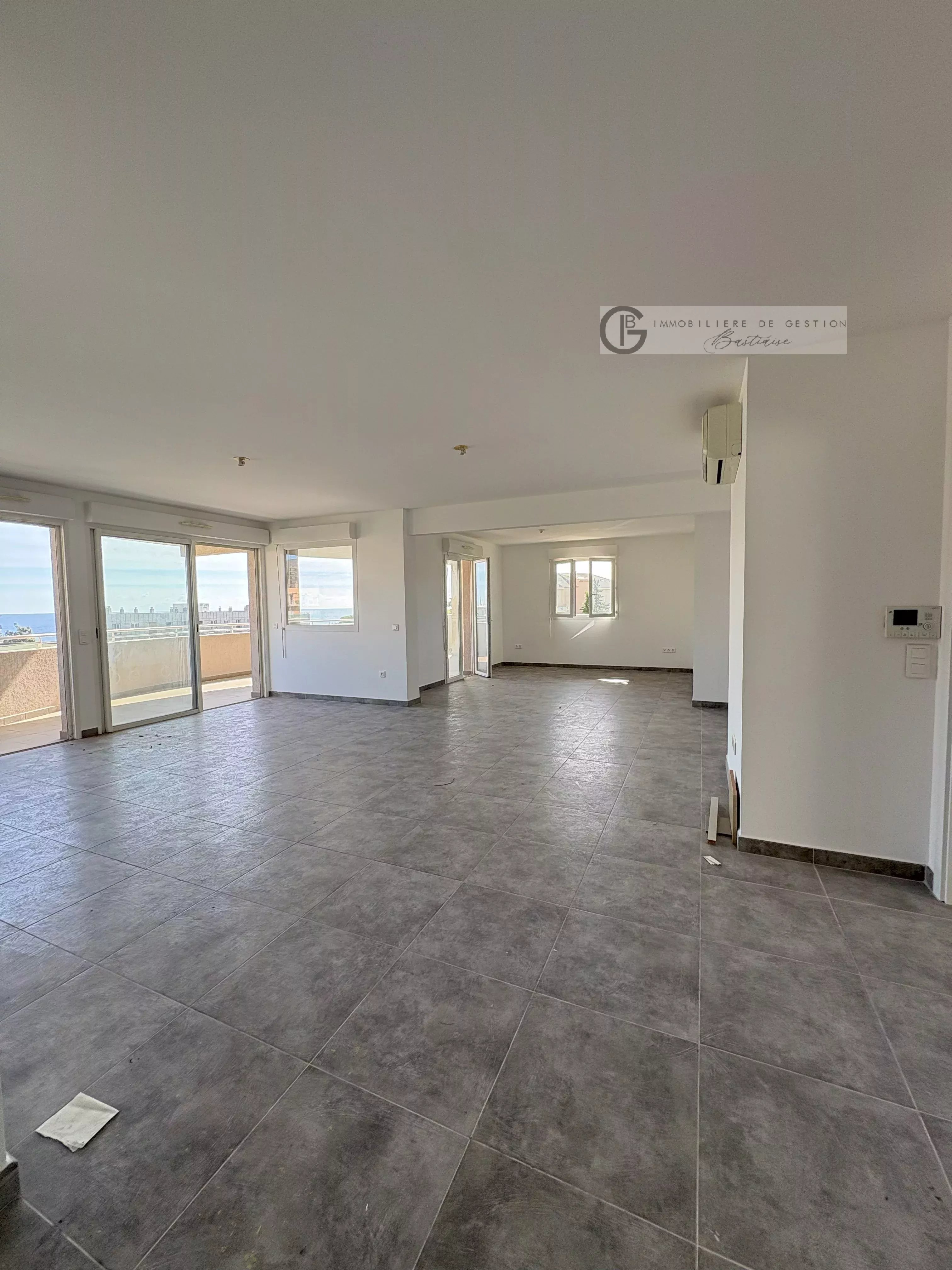 BASTIA SUD: Grand T3 de 142 m2 avec grande terrasse dans une résidence récente et sécurisée proche de l'Alb'oru et hôpital. Il se compose d'une entrée, un grand salon- séjour, une cuisine équipée (four, plaque, hotte) deux salle d'eau, 3 wc, cellier, 2 chambres, placards L'appartement possède deux entrées indépendantes. Idéal pour bail mixte. climatisation, parking, terrasses. A VISITER ABOLUEMENT!